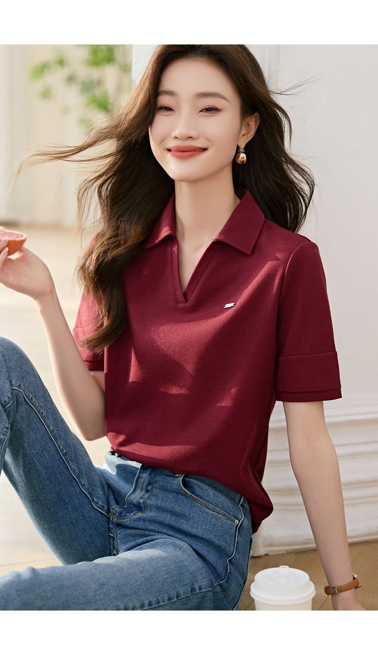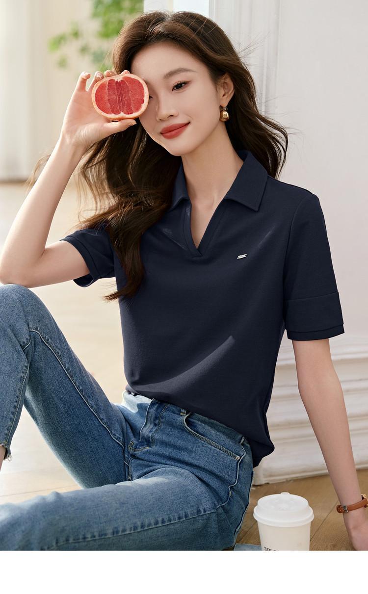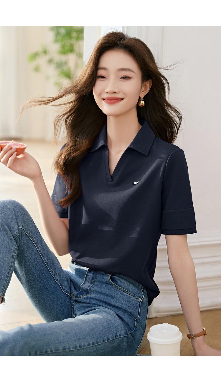 Playera Casual Elegante con Cuello POLO de Manga Corta 2024 Verano Nuevo Hombro Manga Corta Playera Interior