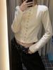 Otoño estilo coreano hebilla metálica estilo francés nicho manga larga para mujer otoño e invierno corte ajustado moderno de alta gama corto camisa top