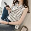 Verano 2023 Nuevo estilo coreano Camisa a rayas con cuello en V de talla grande para mujer Top sin mangas Camisa de gasa holgada y ajustada a la moda