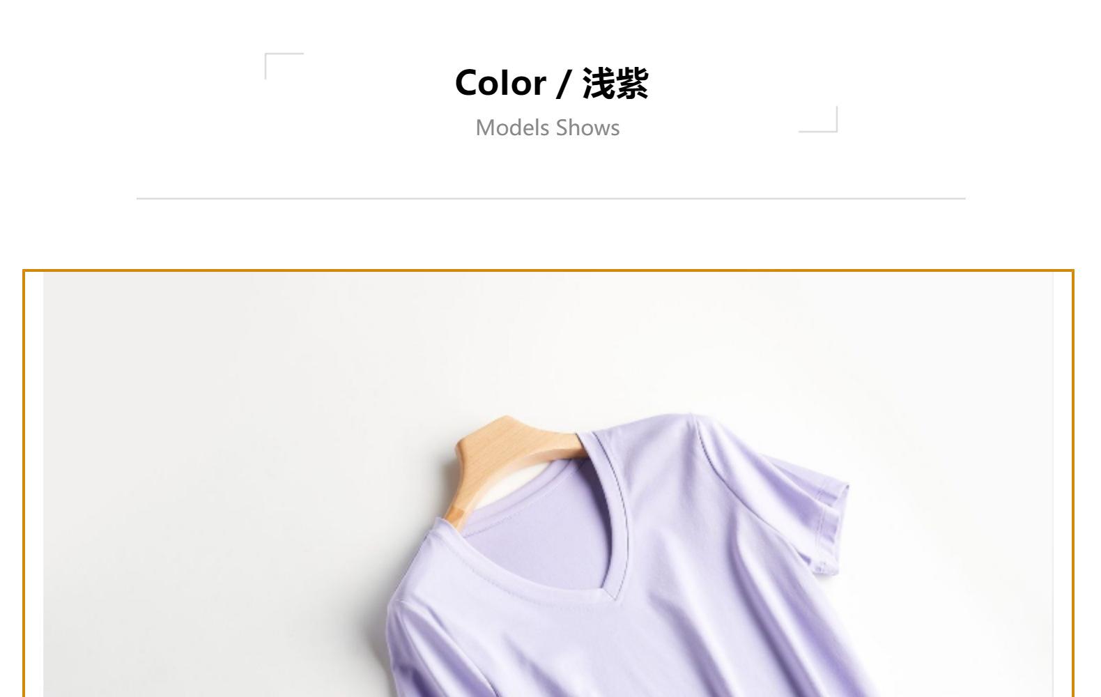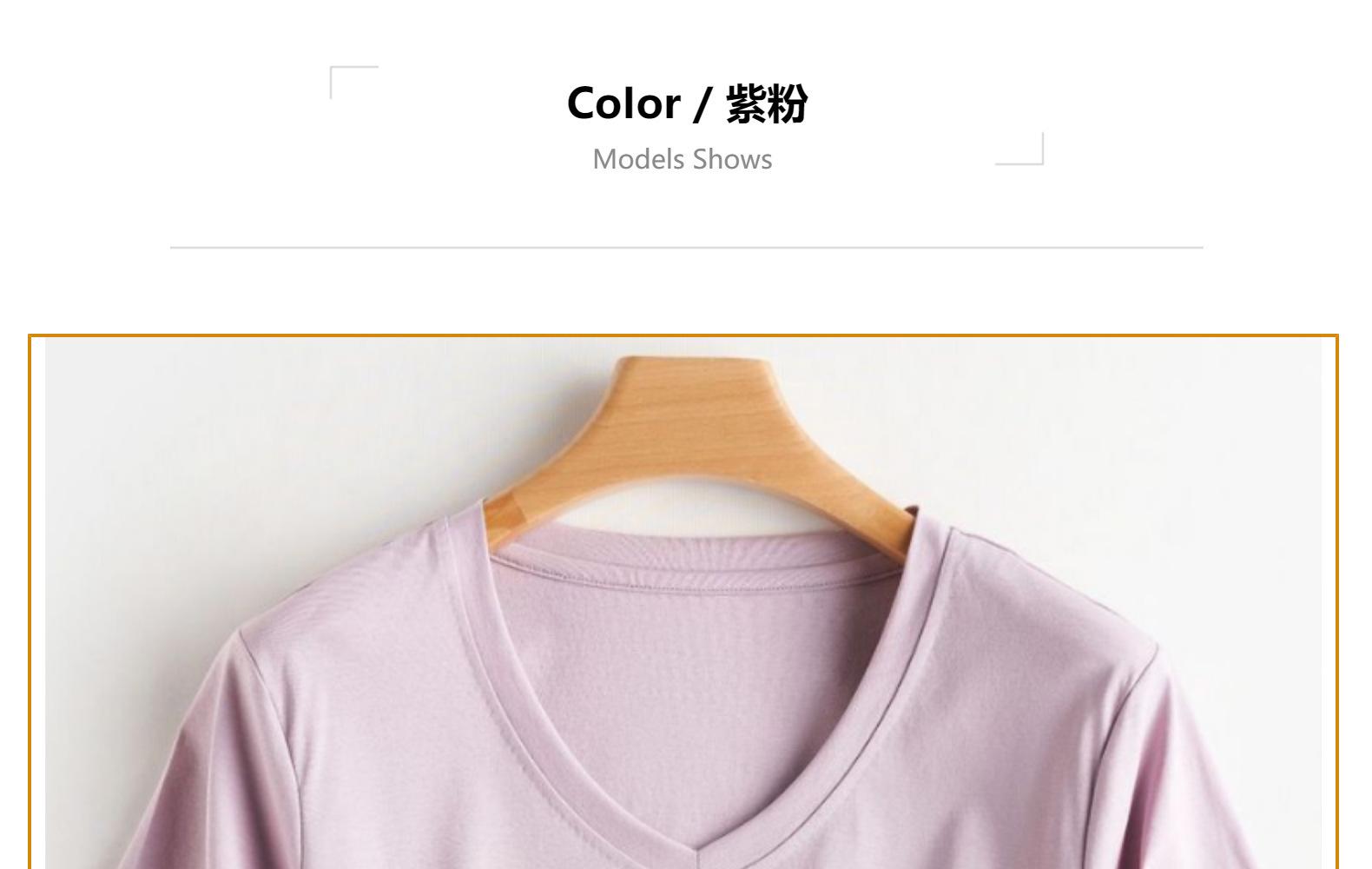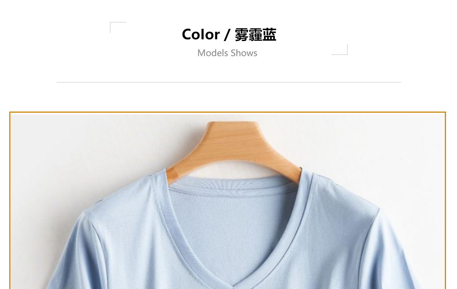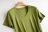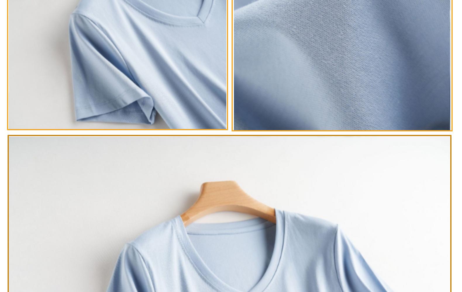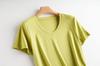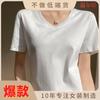 Nueva camiseta blanca de manga corta de algodón mercerizado de doble cara para mujer en verano con cuello en V holgado y camiseta de media manga de color liso que combina con todo.\