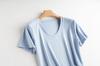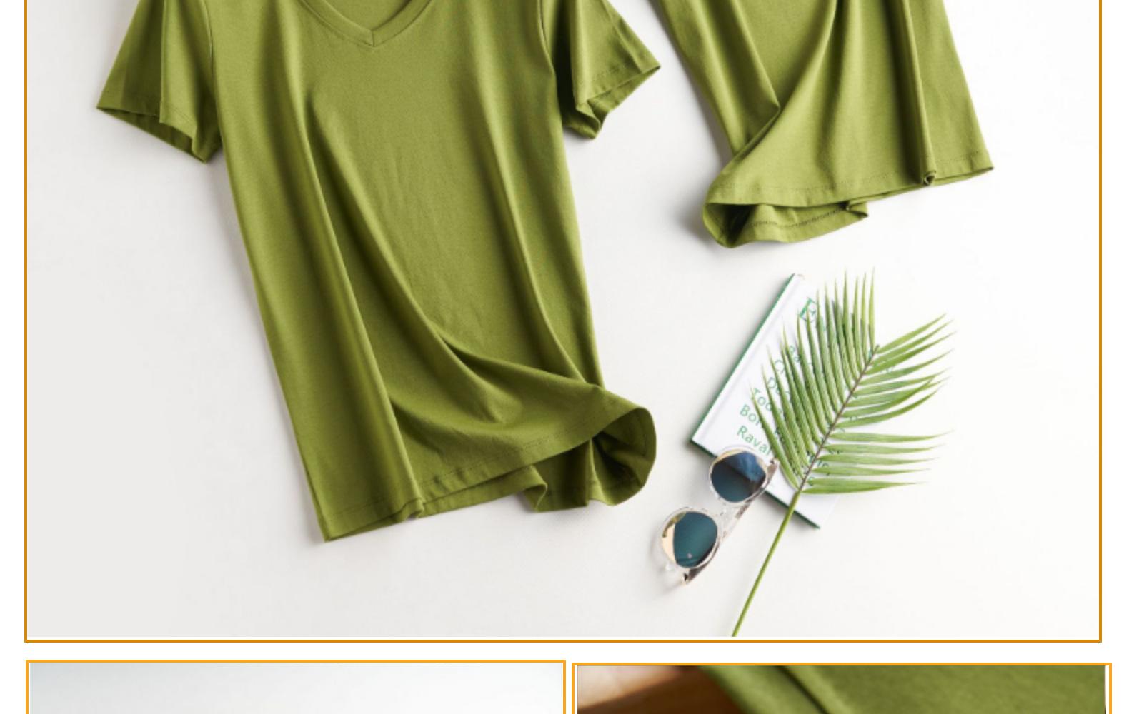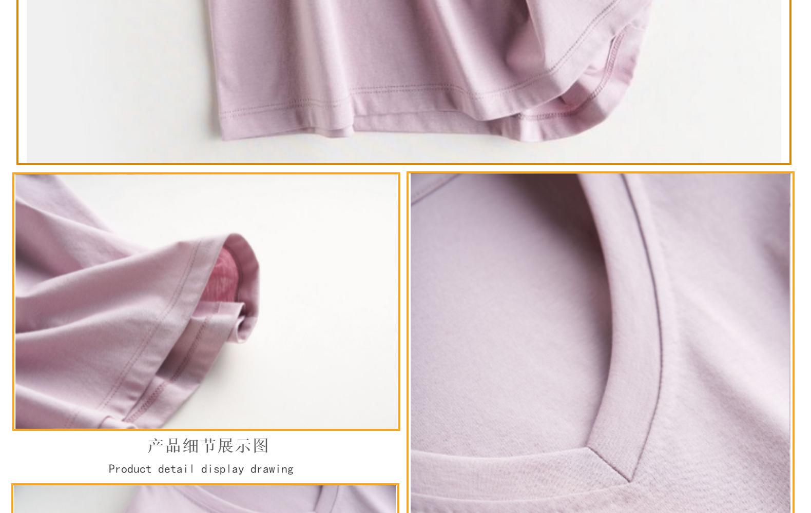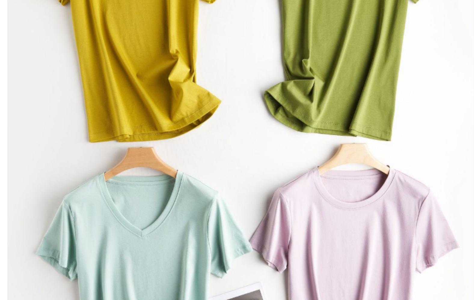 Nueva camiseta blanca de manga corta de algodón mercerizado de doble cara para mujer en verano con cuello en V holgado y camiseta de media manga de color liso que combina con todo.\