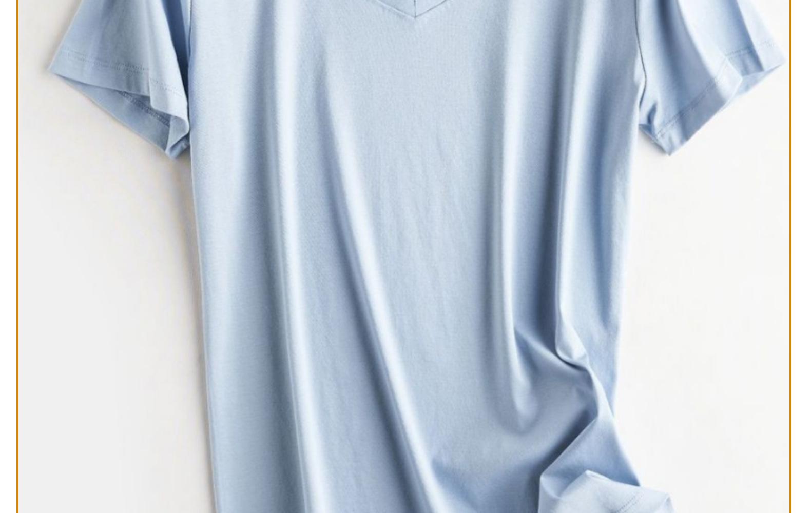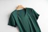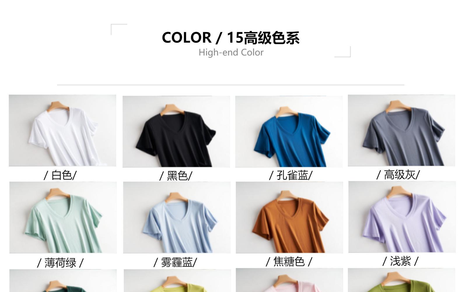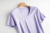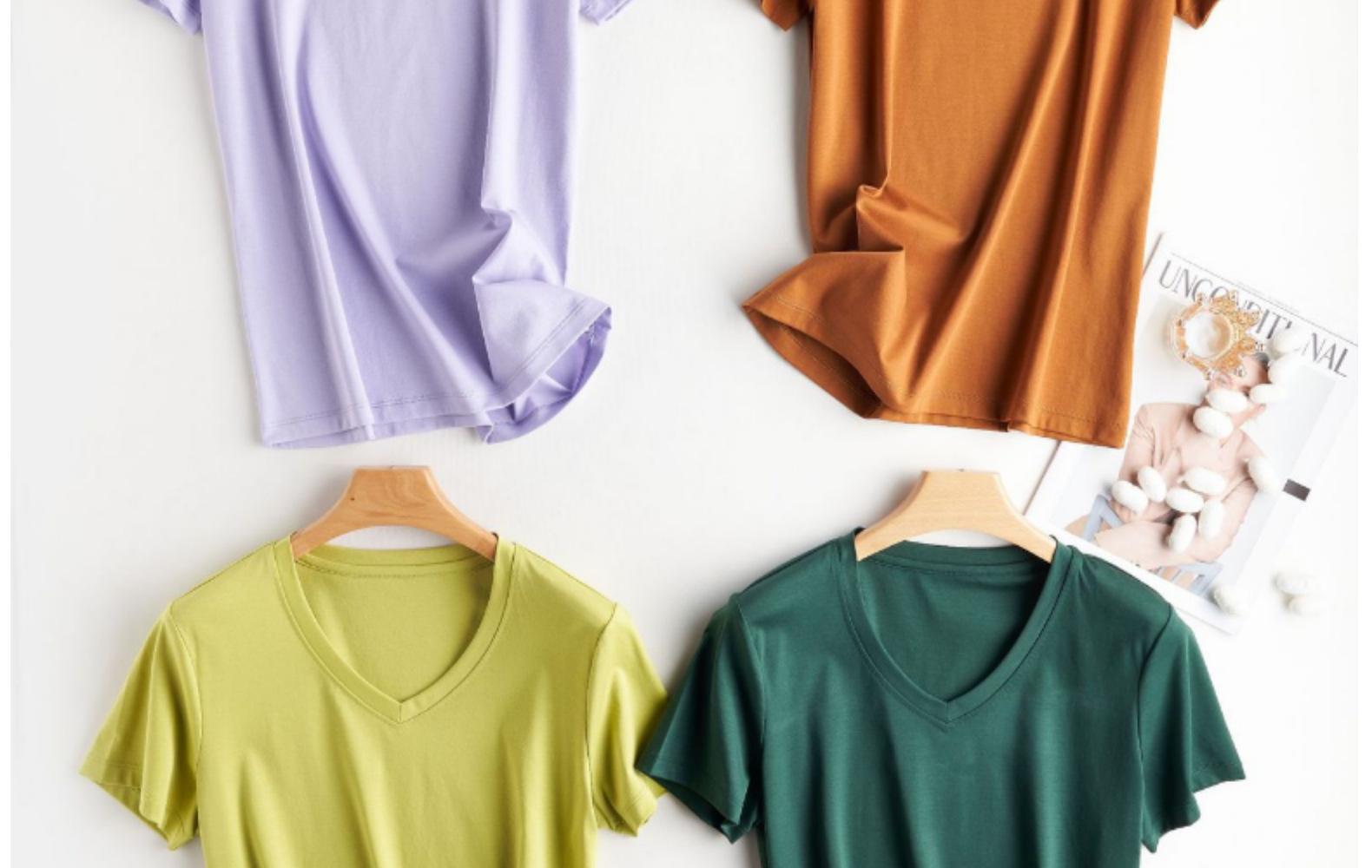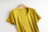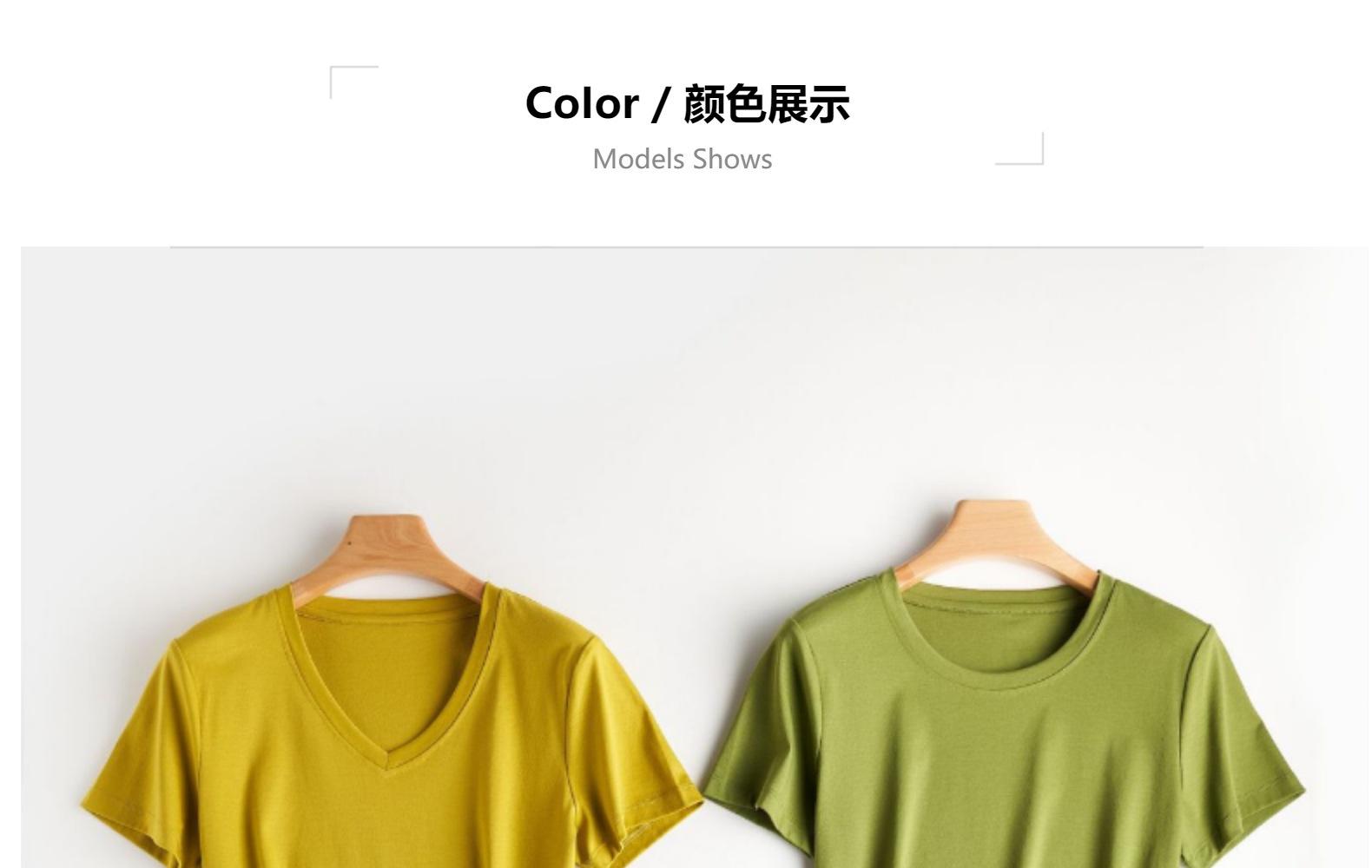Nueva camiseta blanca de manga corta de algodón mercerizado de doble cara para mujer en verano con cuello en V holgado y camiseta de media manga de color liso que combina con todo.\