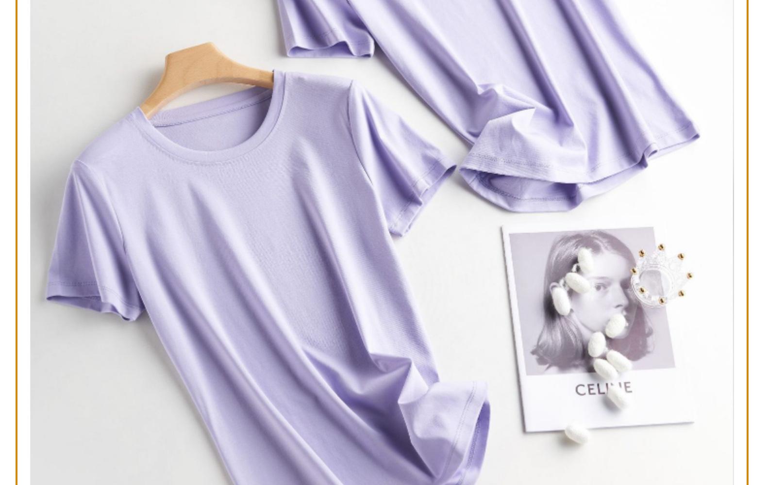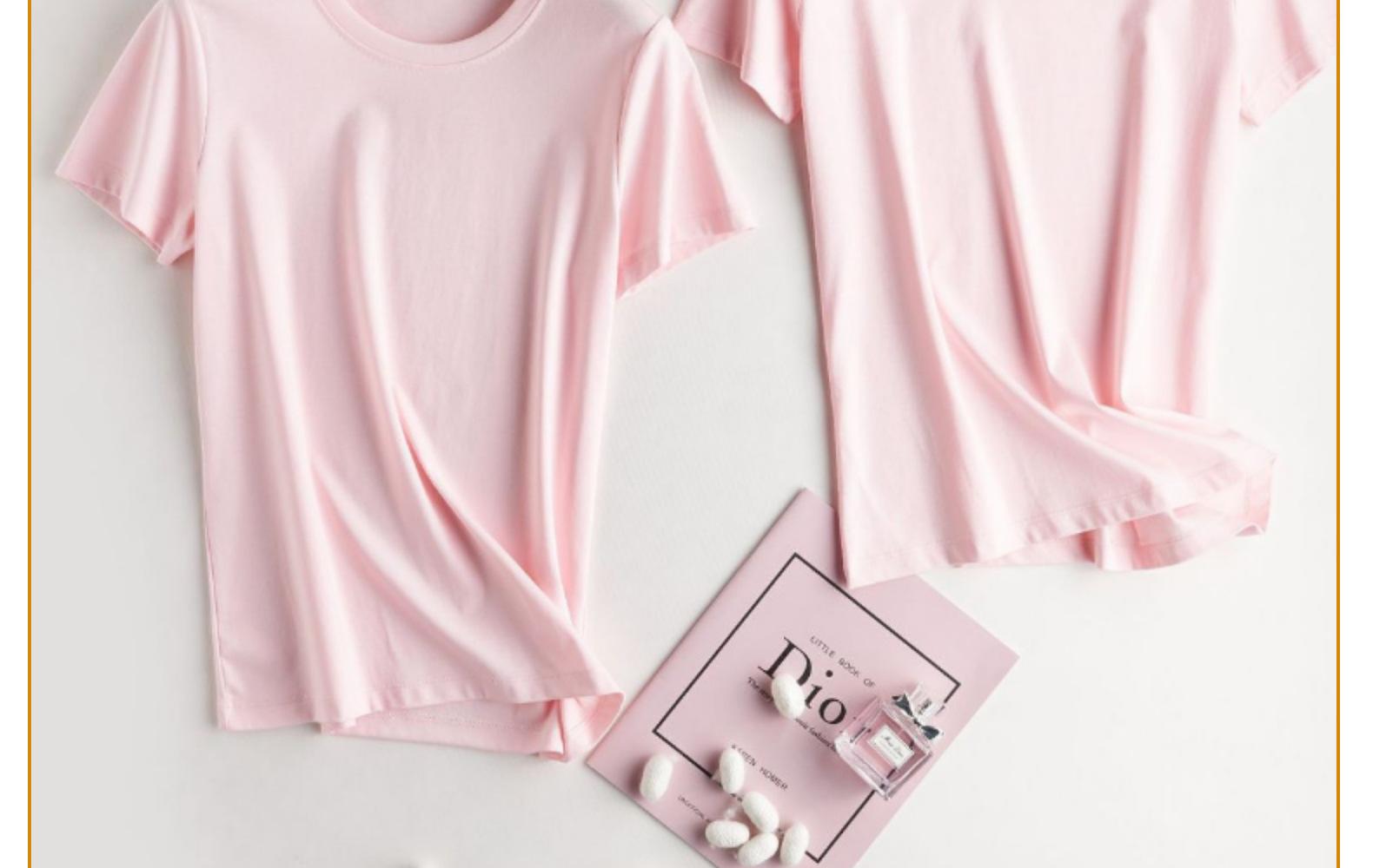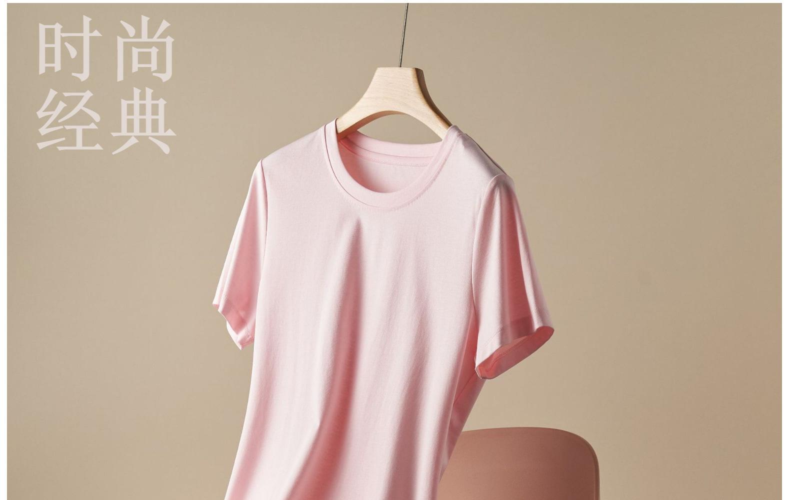 Fabricantes de camisetas de algodón mercerizado de seda morera para mujer, versión holgada de verano, camisa de manga corta con cuello redondo grande, relación de seda morera\