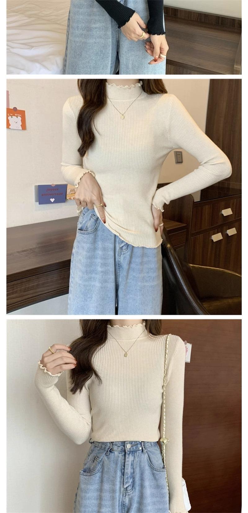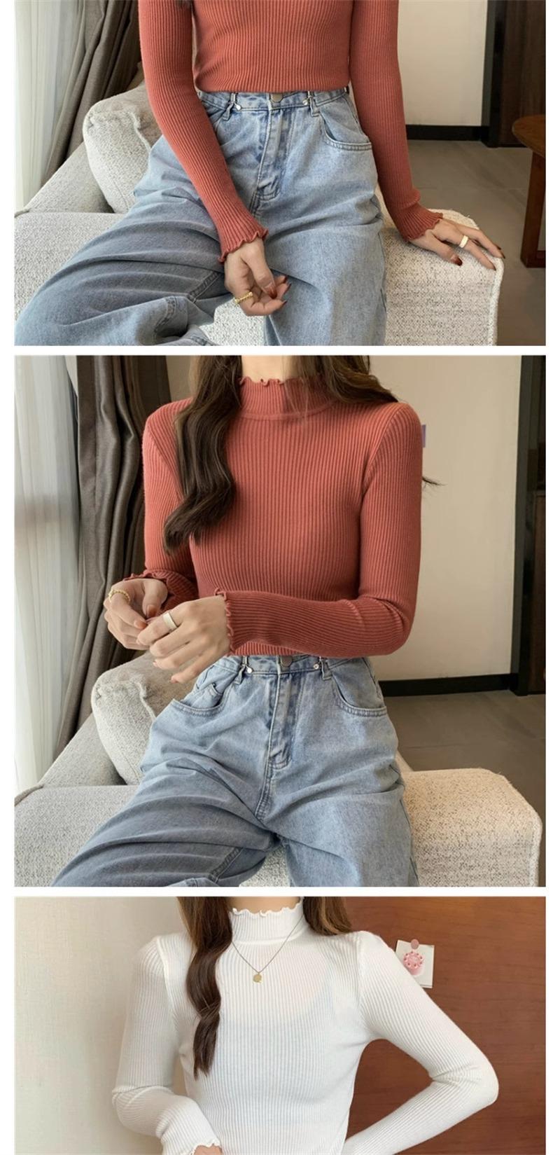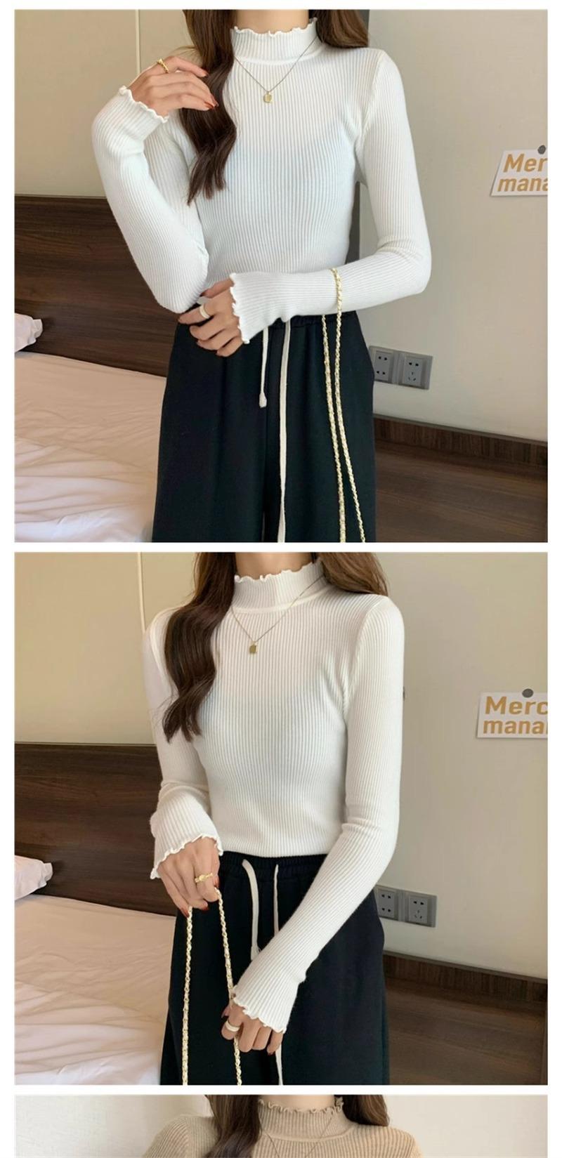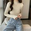 2023 Nuevo Otoño e Invierno Camiseta Básica de Cuello Alto Medio Suéter de Mujer Delgado Jersey Ajustado Interior de Manga Larga Top de Punto