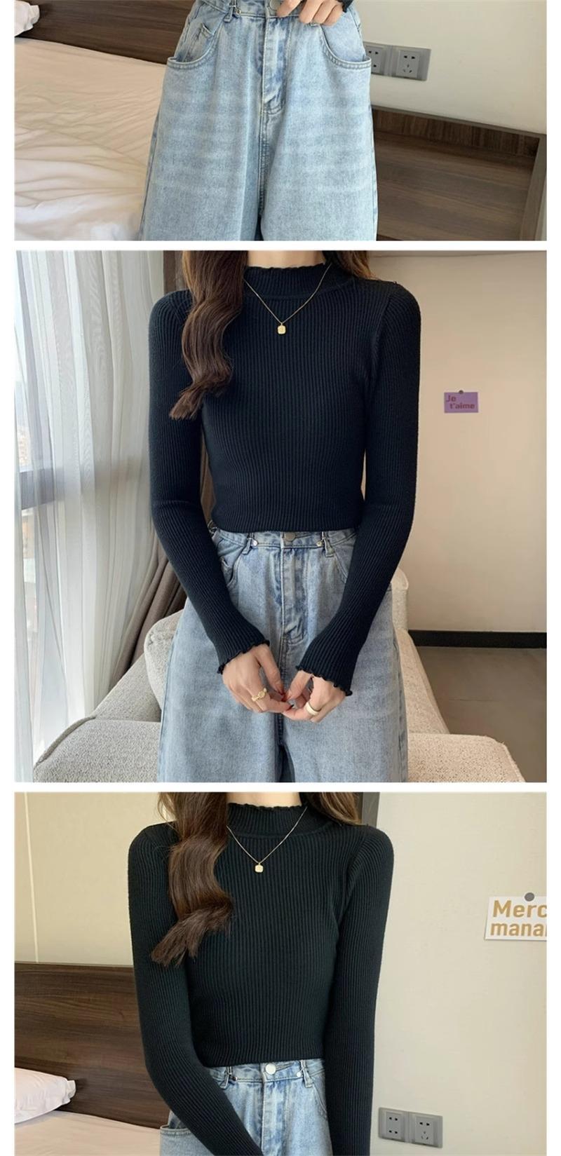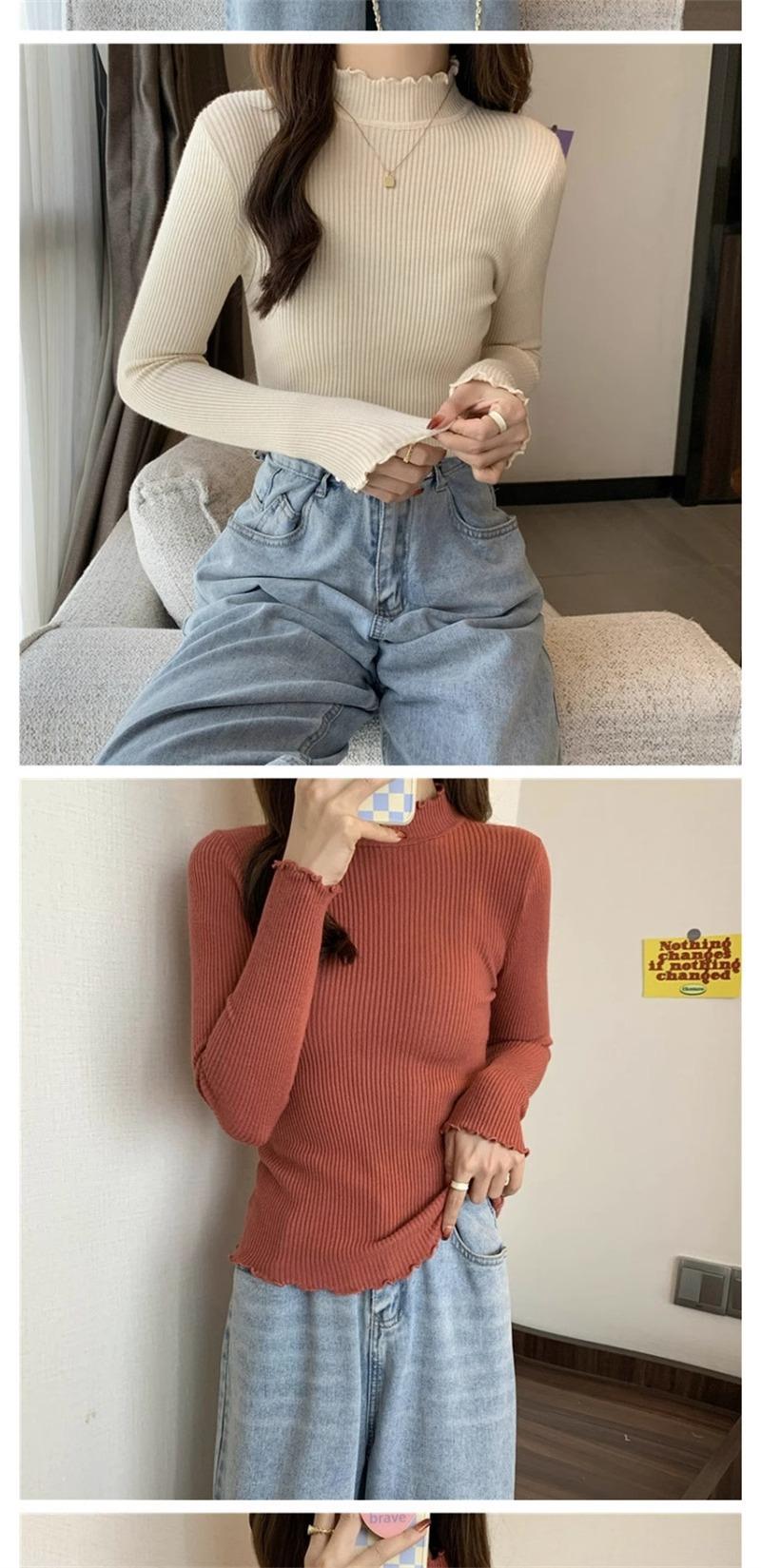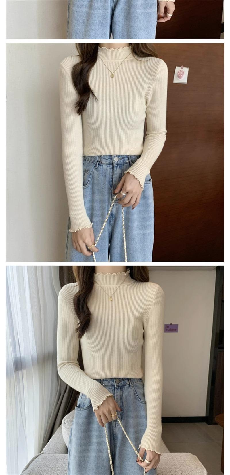 2023 Nuevo Otoño e Invierno Camiseta Básica de Cuello Alto Medio Suéter de Mujer Delgado Jersey Ajustado Interior de Manga Larga Top de Punto