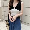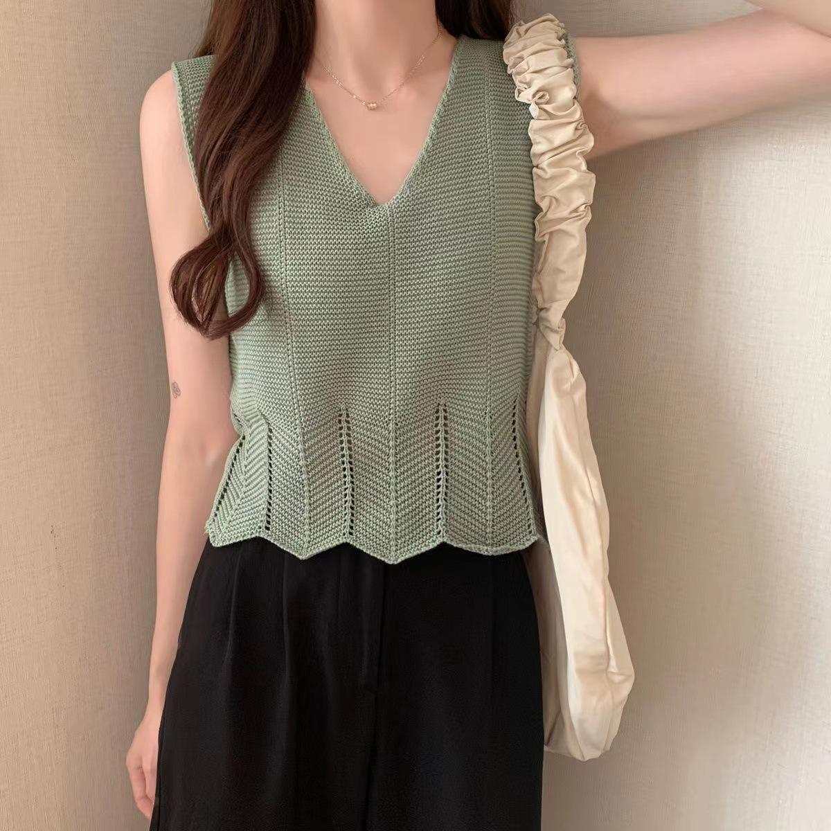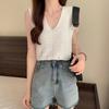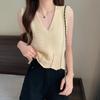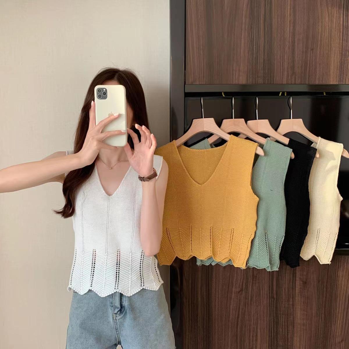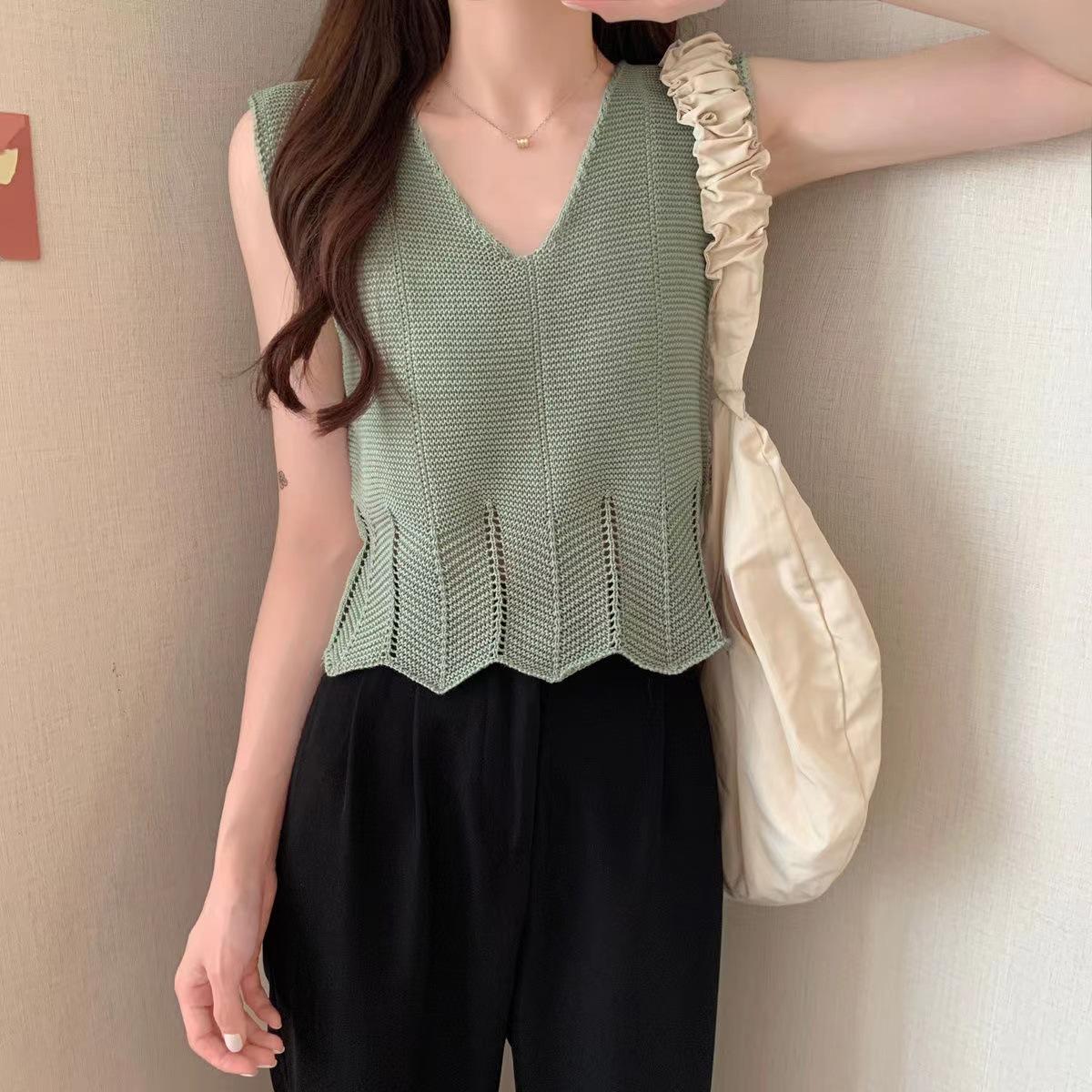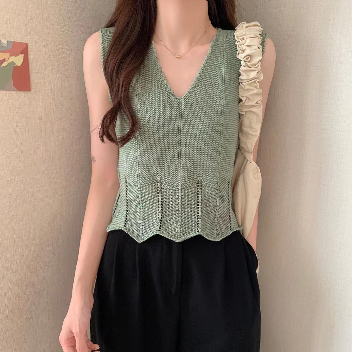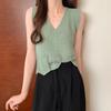 Design Sense Niche Chaleco de punto sin mangas con cuello en V pequeño y fresco para mujer Top sin mangas ajustado con agujeros de verano para mujer