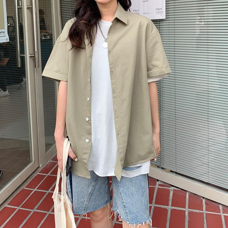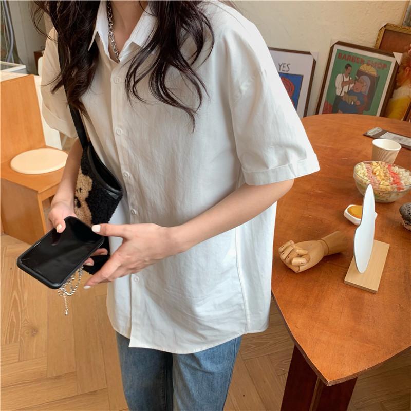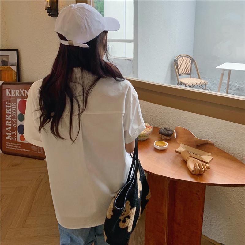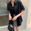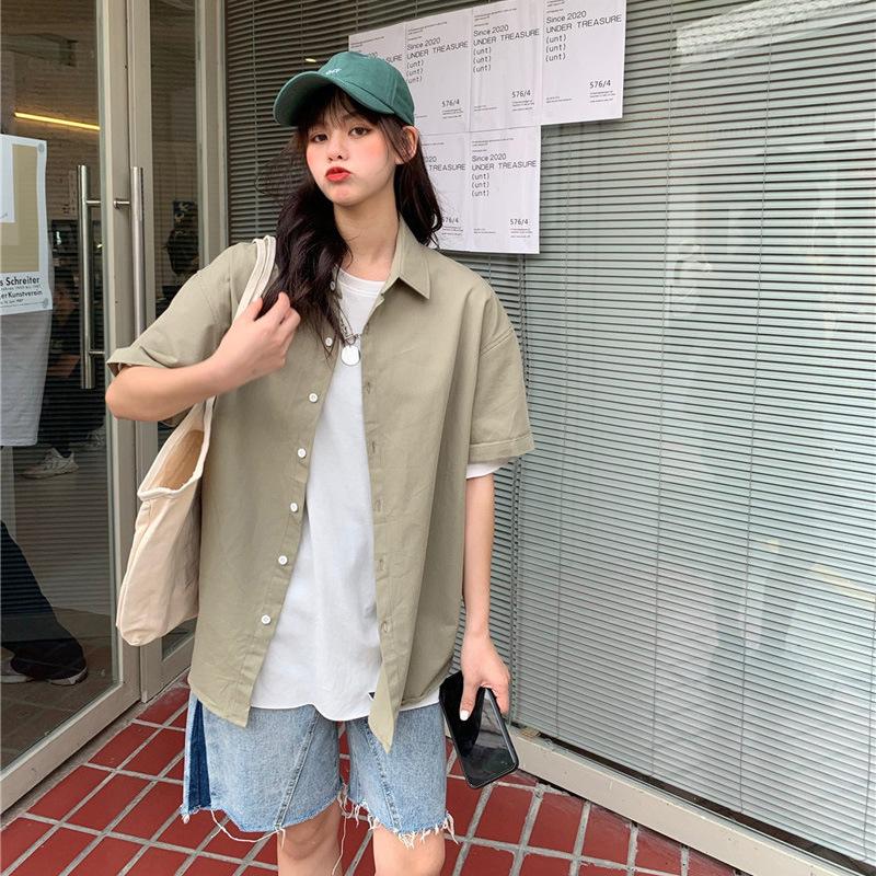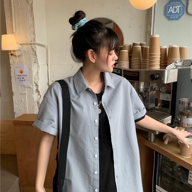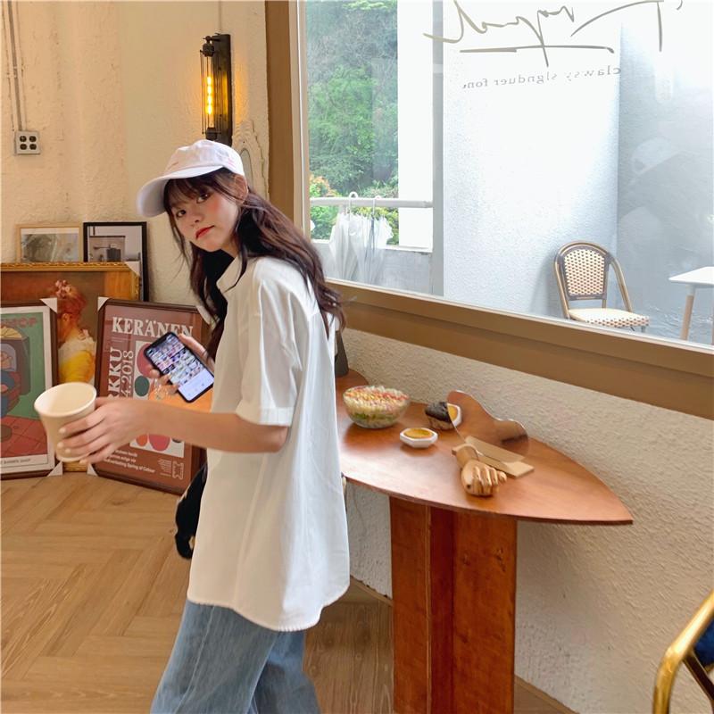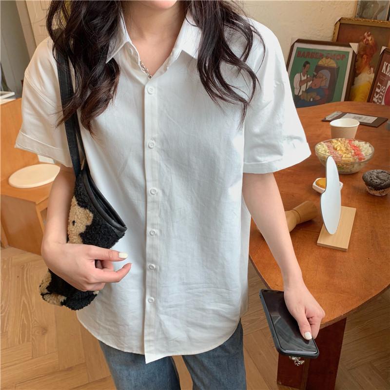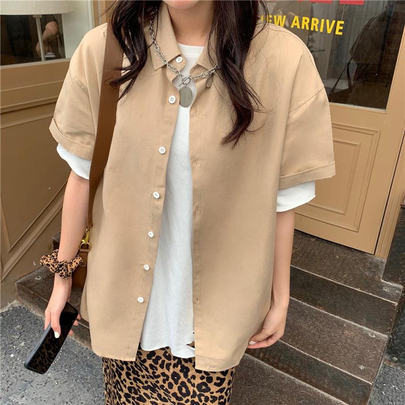 Camisa de nicho con diseño de sentido del diseño, nueva camisa holgada de manga corta de estilo coreano de verano 2021, top de color liso para mujer, entrega ins