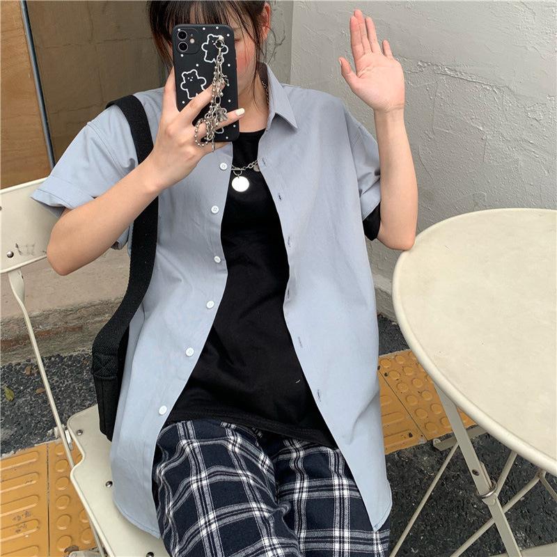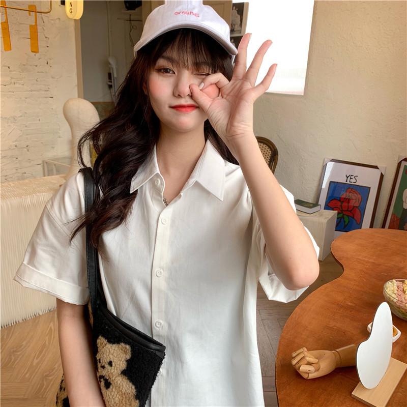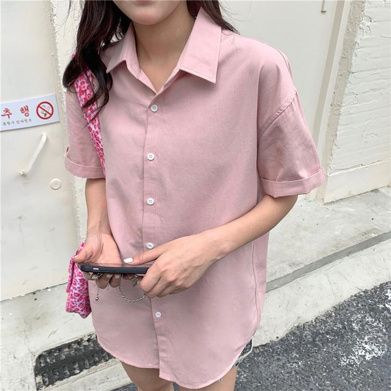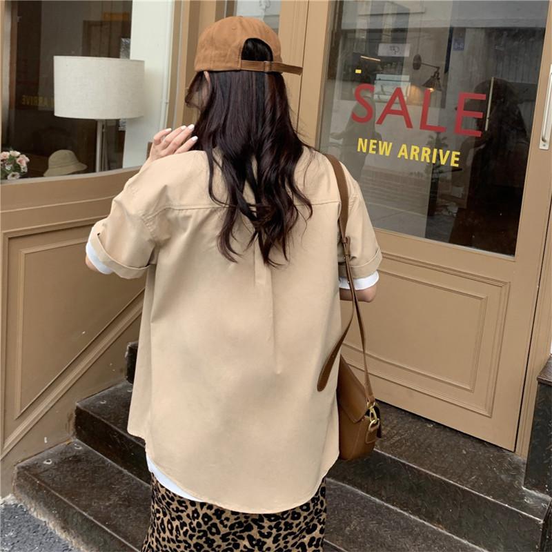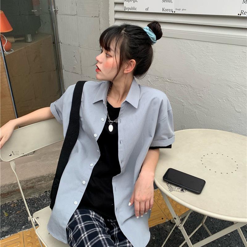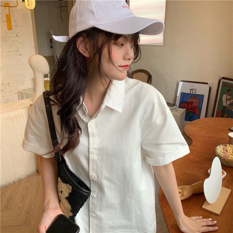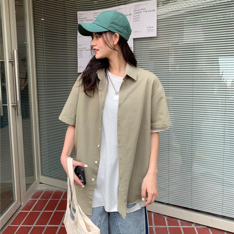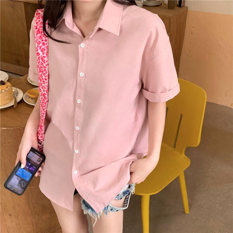 Camisa de nicho con diseño de sentido del diseño, nueva camisa holgada de manga corta de estilo coreano de verano 2021, top de color liso para mujer, entrega ins