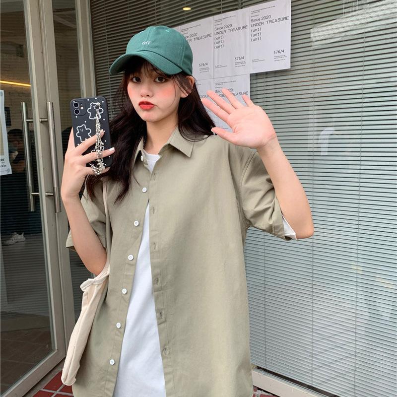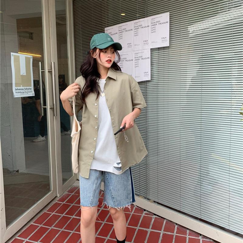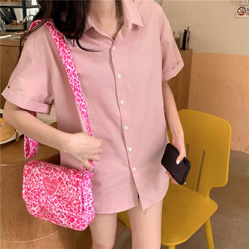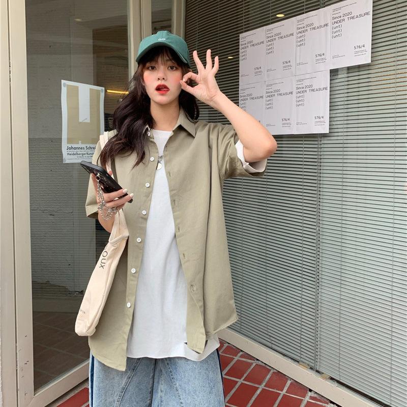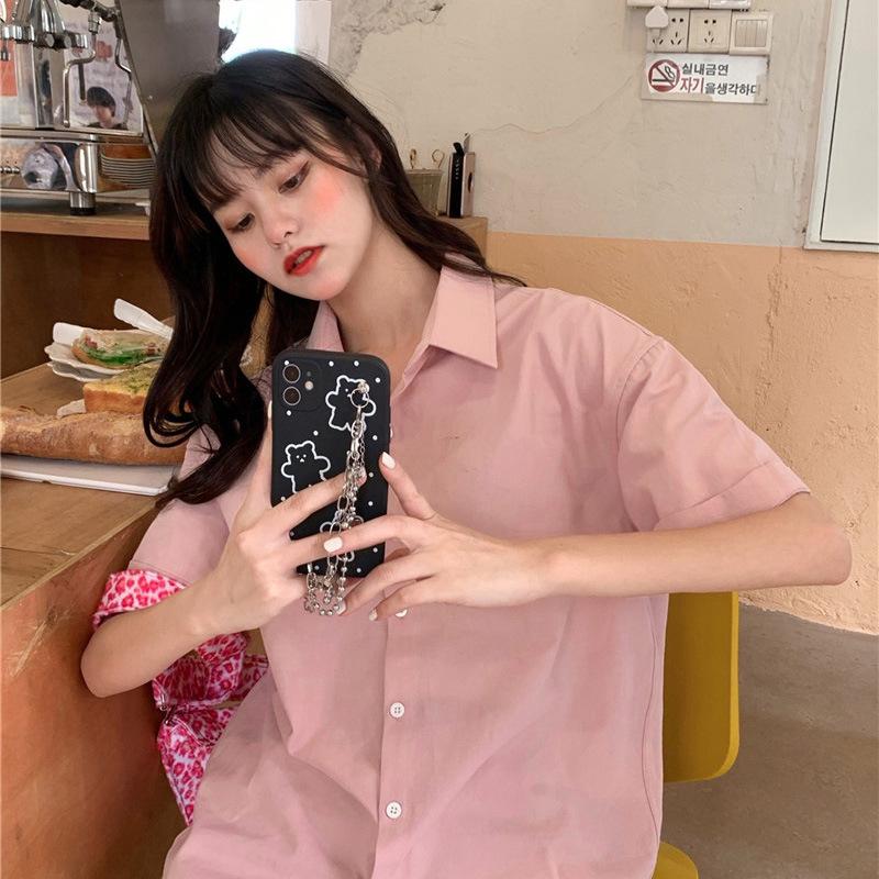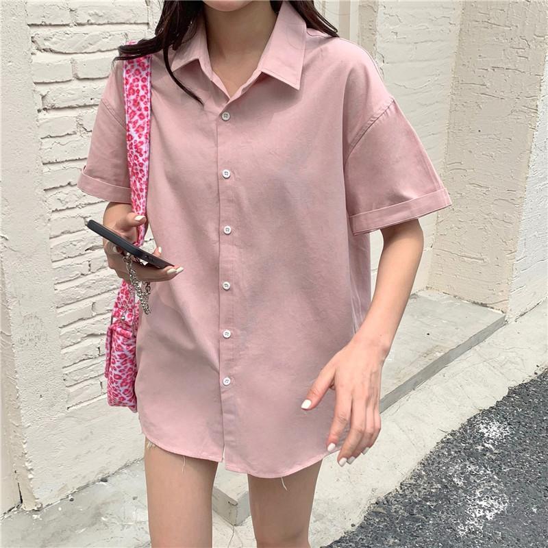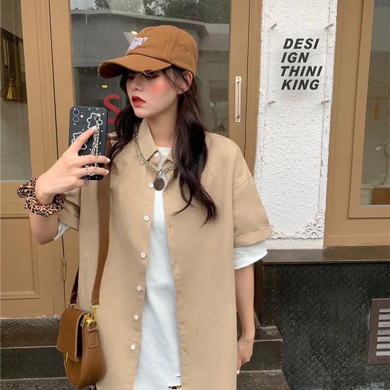 Camisa de nicho con diseño de sentido del diseño, nueva camisa holgada de manga corta de estilo coreano de verano 2021, top de color liso para mujer, entrega ins