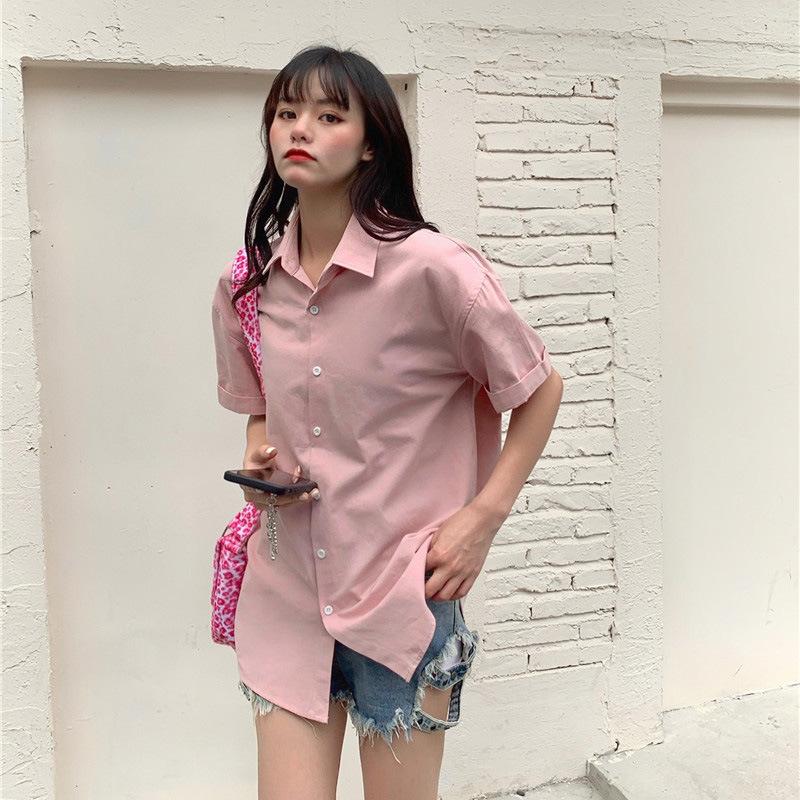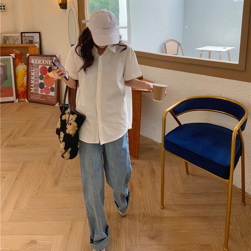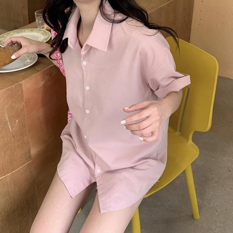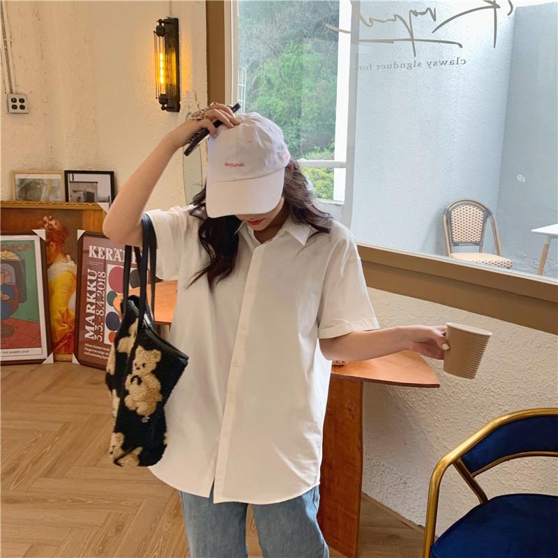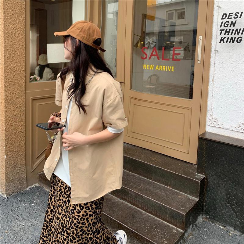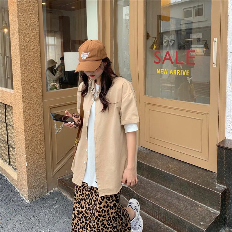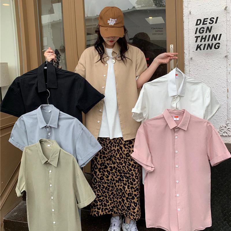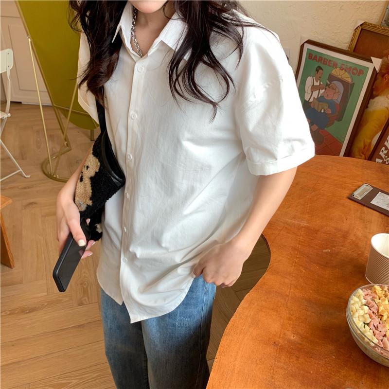 Camisa de nicho con diseño de sentido del diseño, nueva camisa holgada de manga corta de estilo coreano de verano 2021, top de color liso para mujer, entrega ins