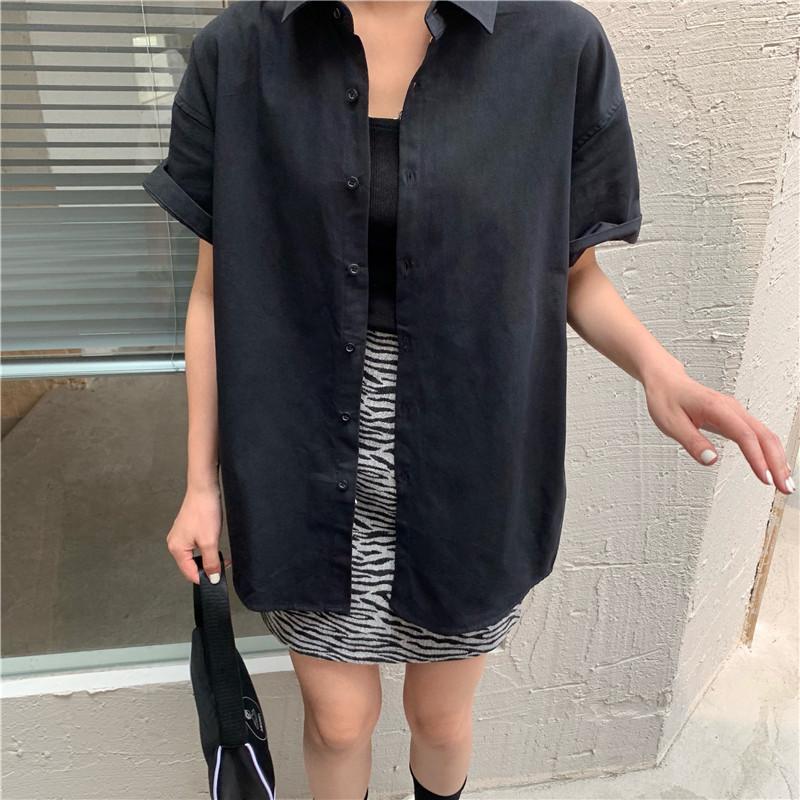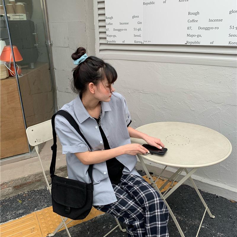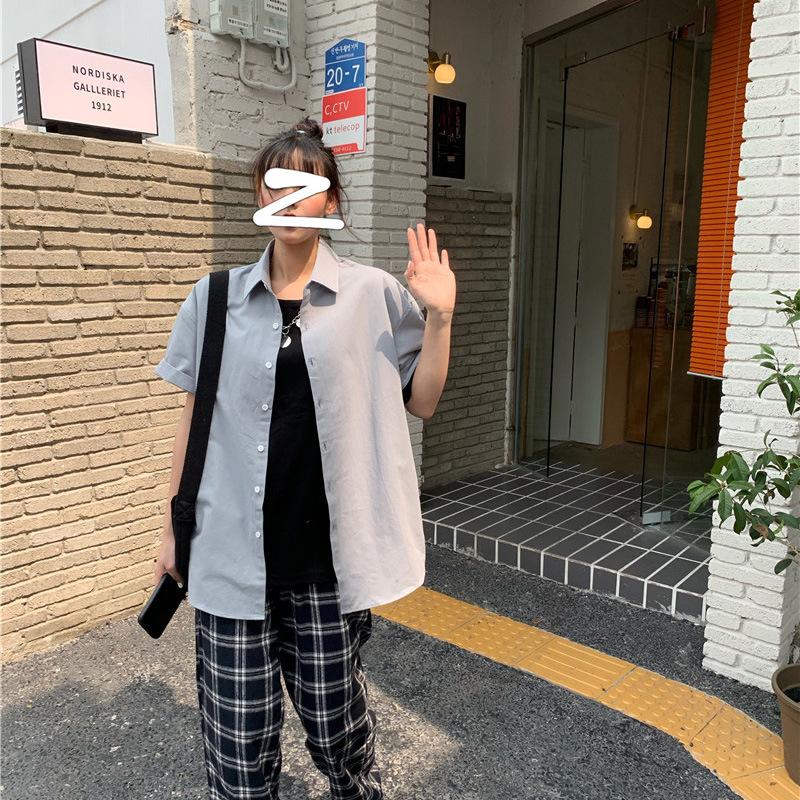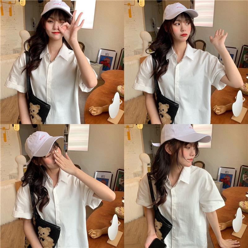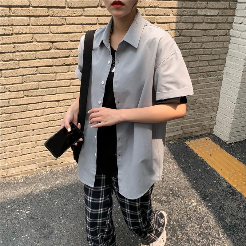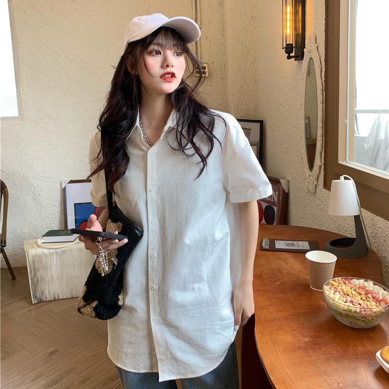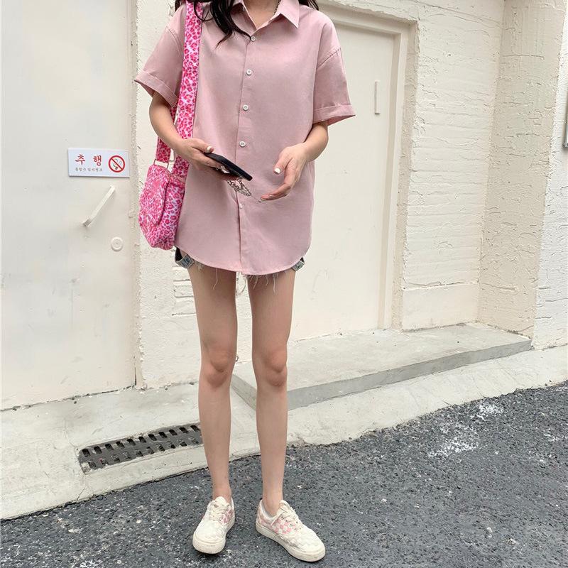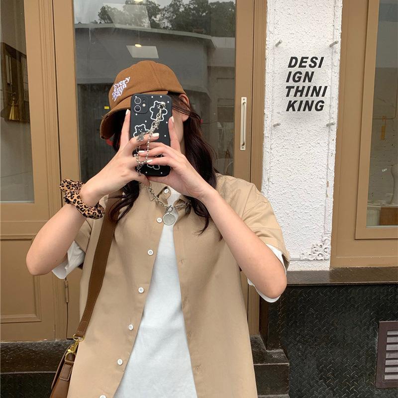 Camisa de nicho con diseño de sentido del diseño, nueva camisa holgada de manga corta de estilo coreano de verano 2021, top de color liso para mujer, entrega ins