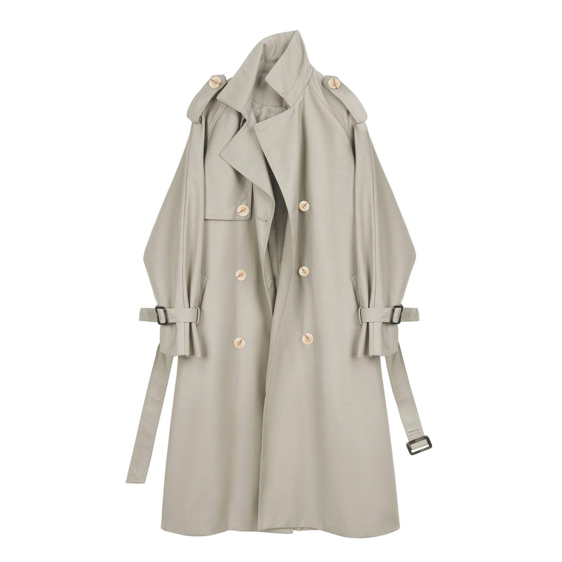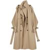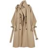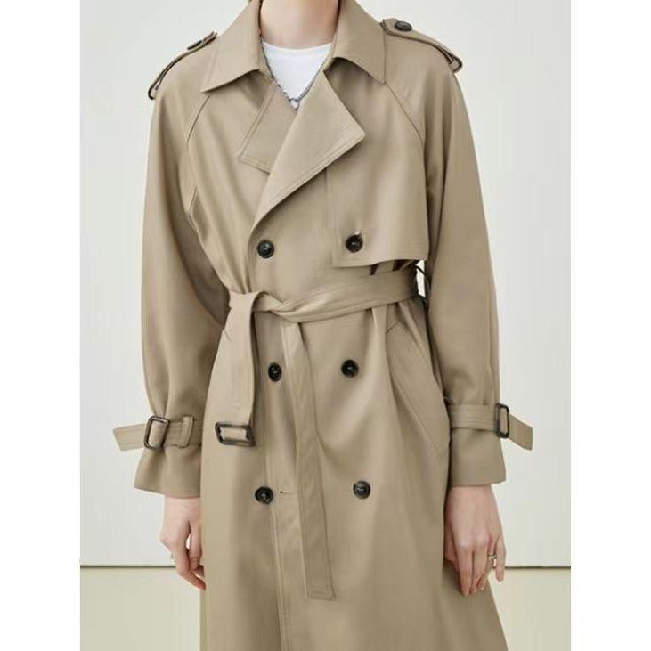 Cortavientos Caqui de Moda Estilo Coreano para Mujer Otoño e Invierno Nuevo Abrigo de Largo Medio Cruzado Drapeado Casual Trendy