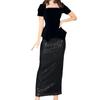 Otoño 2023 nuevo europeo y americano Amazon transfronterizo cuello cuadrado francés top ajustado traje de falda con lentejuelas mujer
