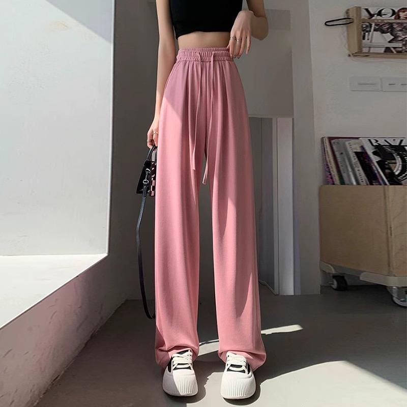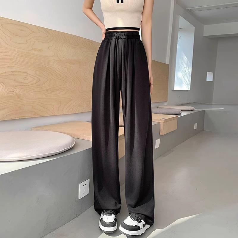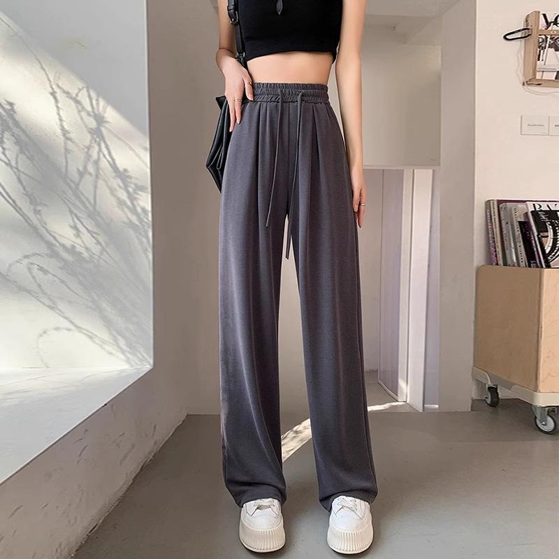 Pantalones Anchos de Cupro Seda para Mujer Primavera y Otoño 2024 Nuevo Gris Alto Recto Verano Pantalones de Seda Helada