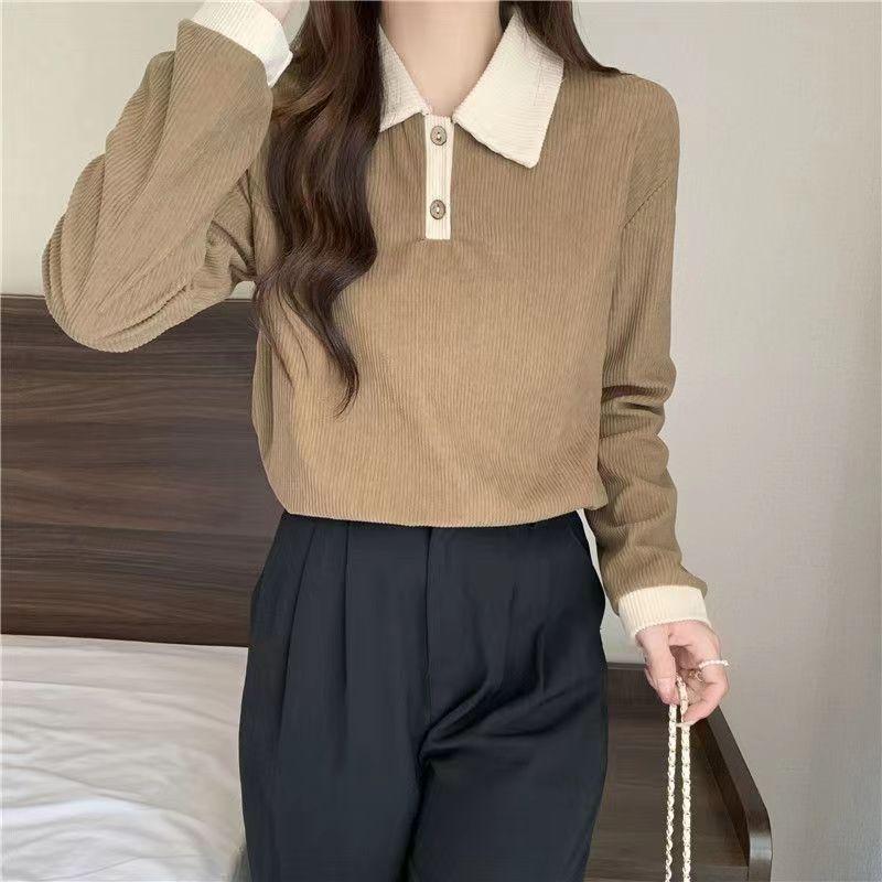 461# Camisa POLO de otoño delgada con solapa de manga larga para mujer que combina con todo, delgada, nicho, ins, top interior, tendencia