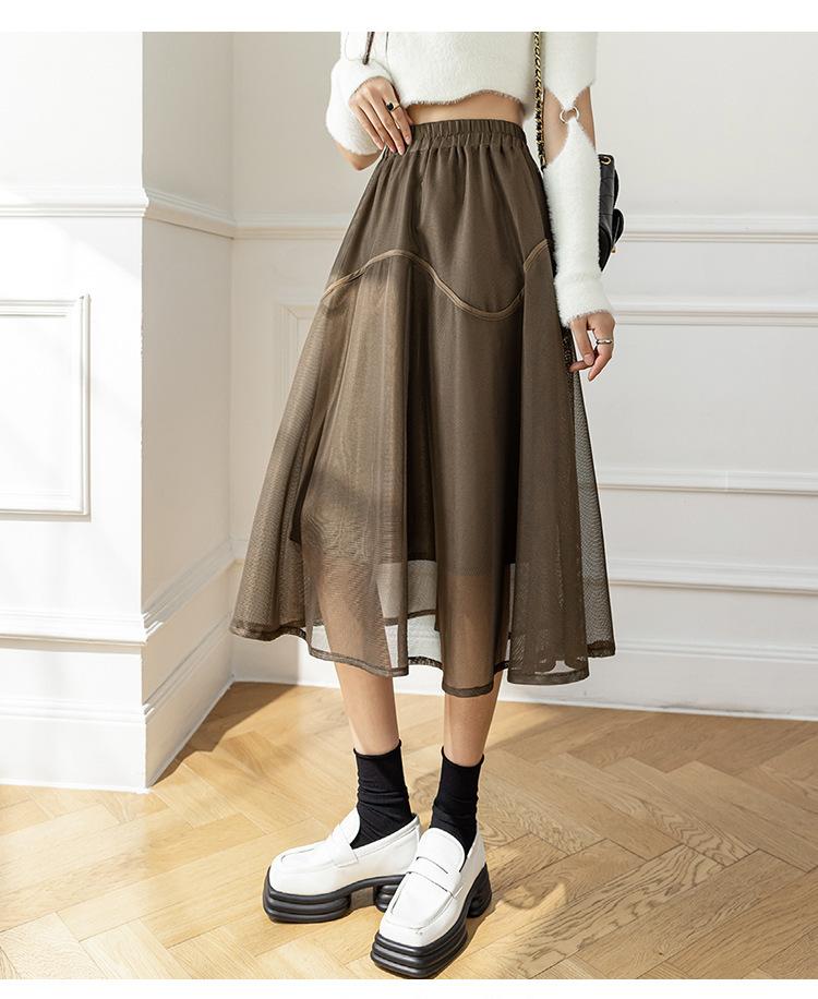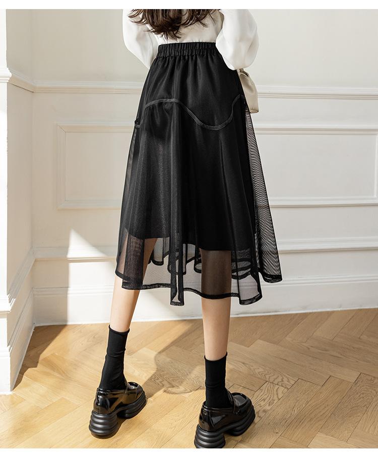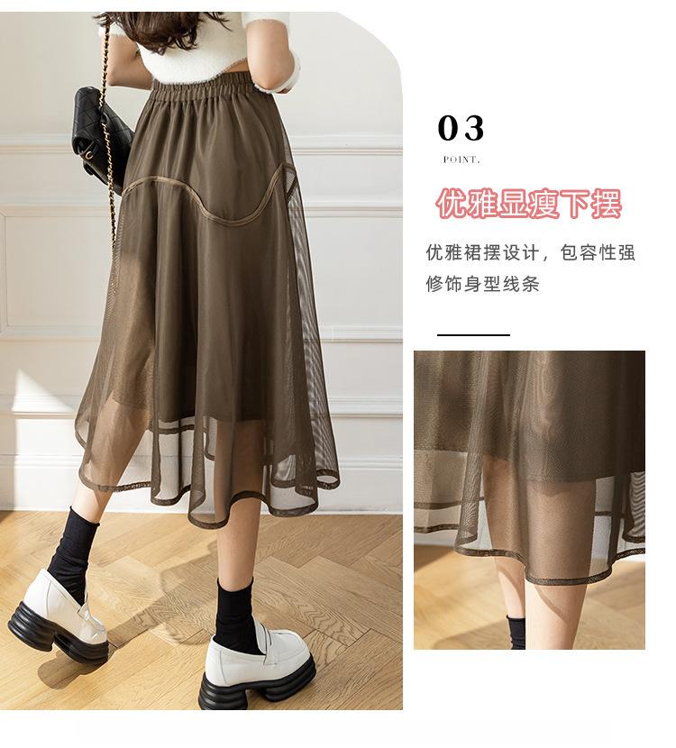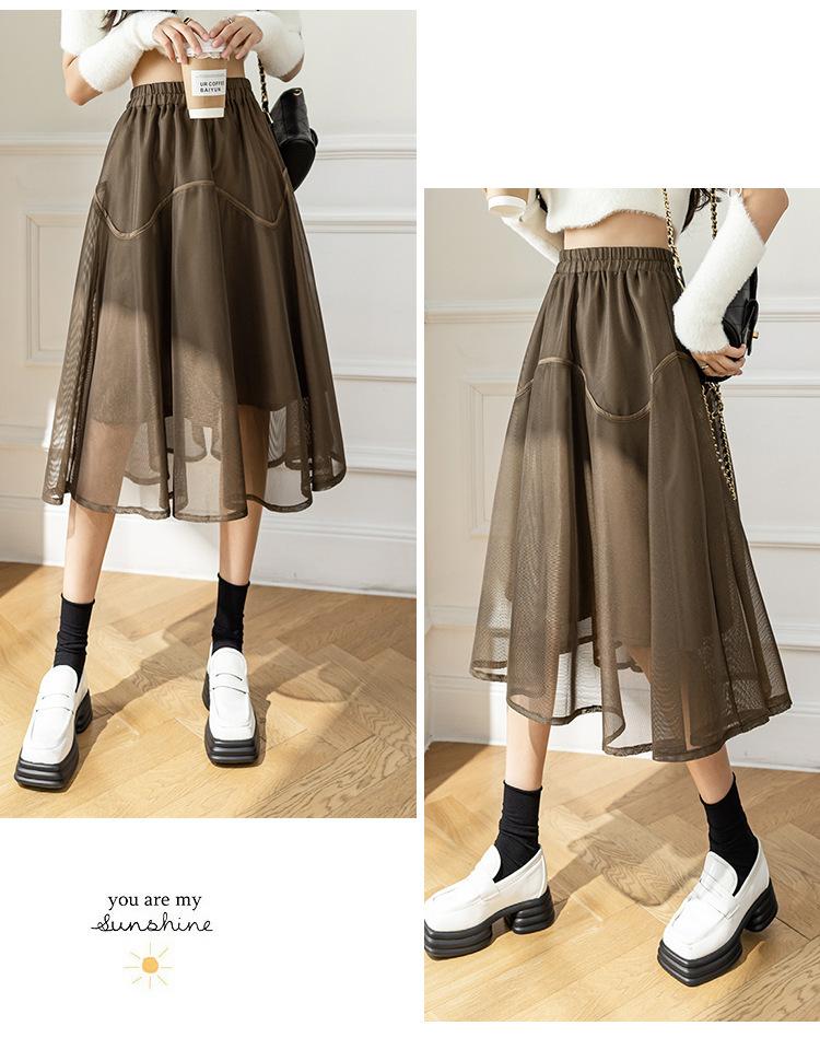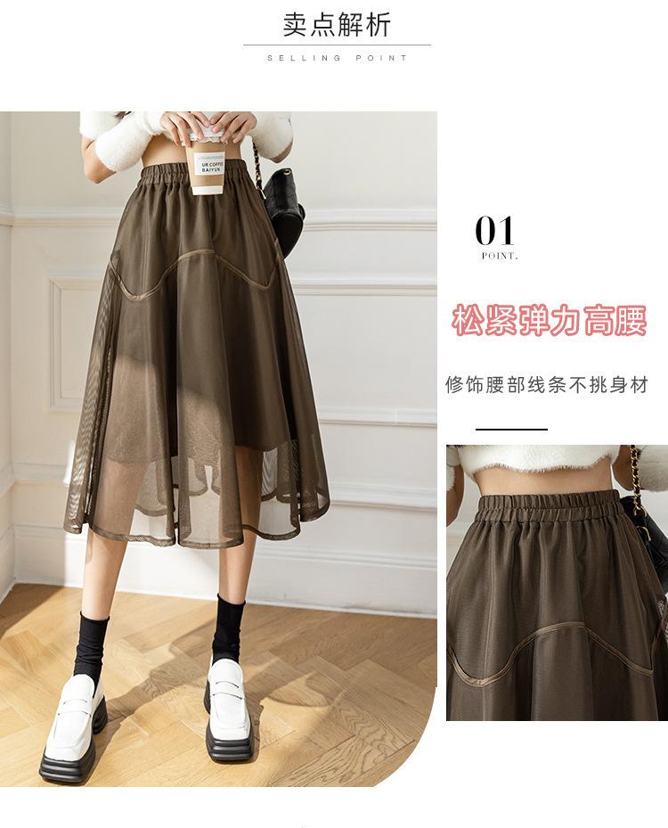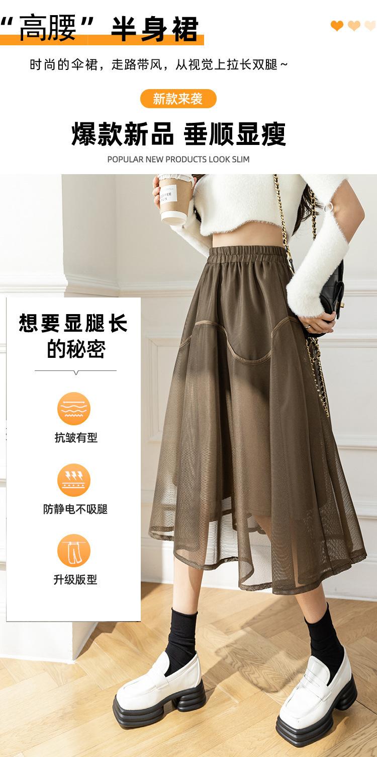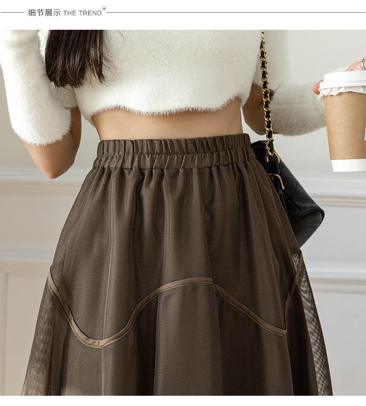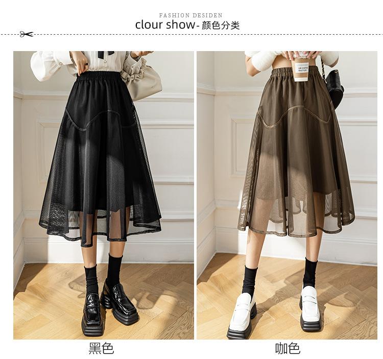 Falda de malla 2023 Verano y Otoño Nueva Falda de cintura alta con costuras adelgazantes Falda drapeada de línea A Falda de longitud media con vuelo grande
