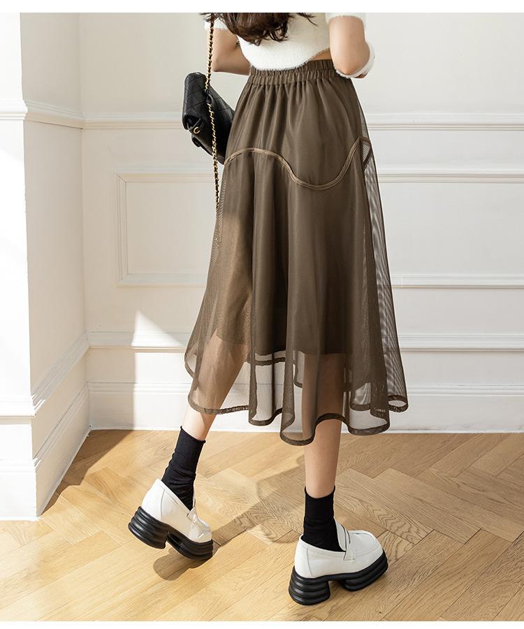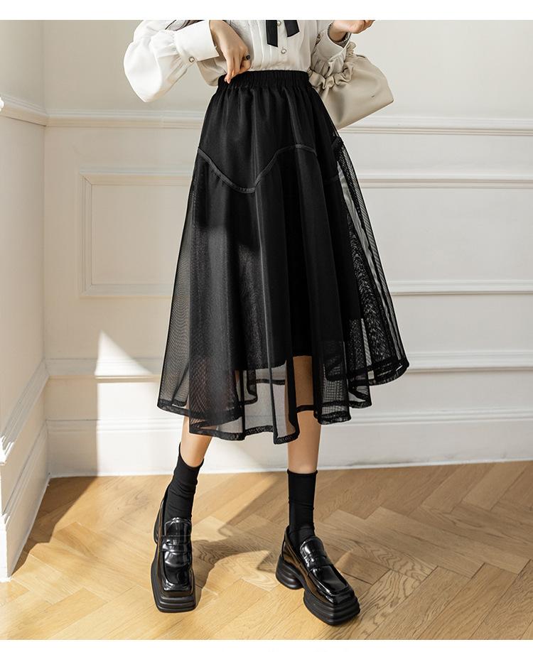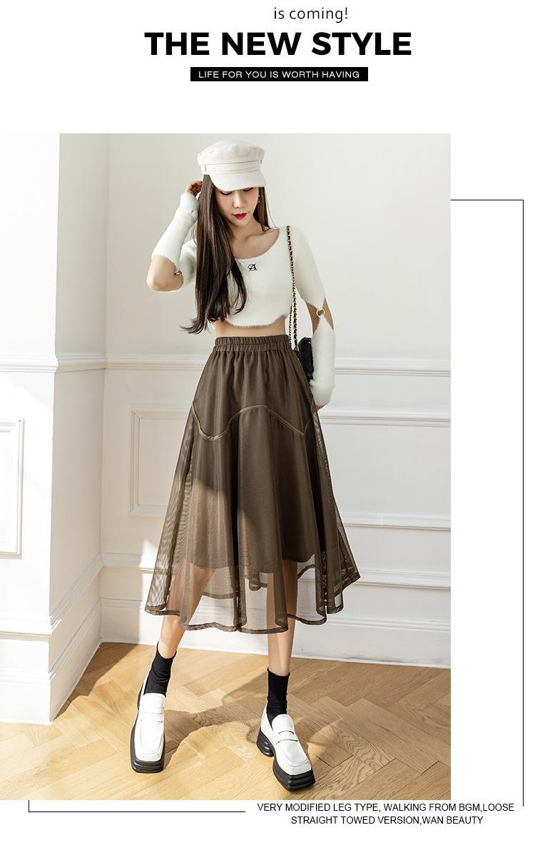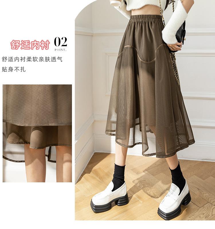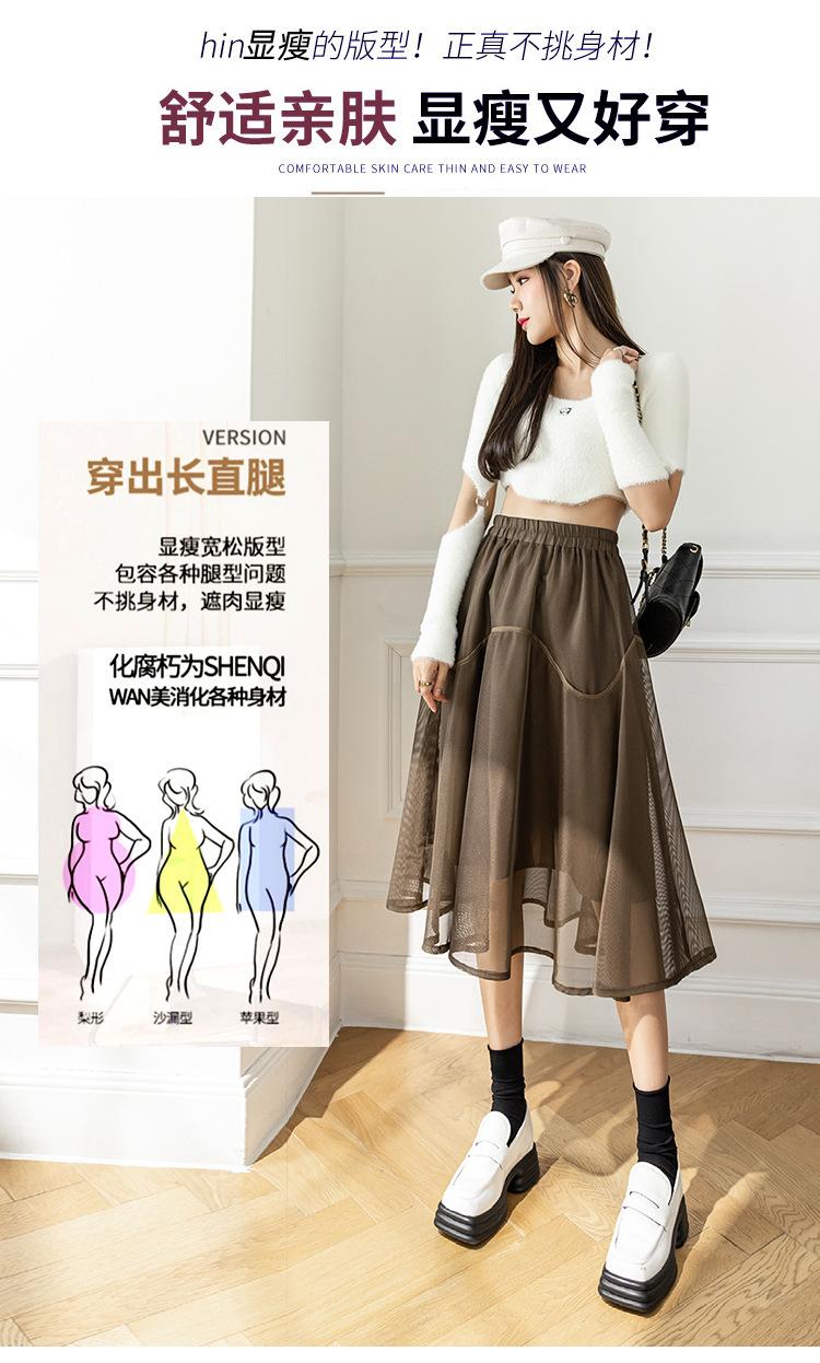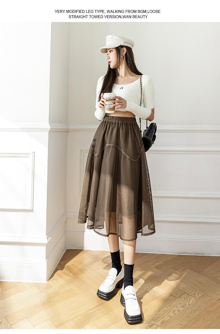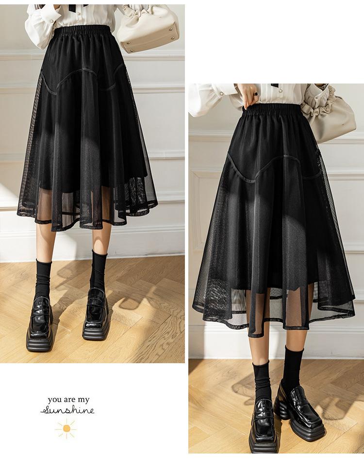 Falda de malla 2023 Verano y Otoño Nueva Falda de cintura alta con costuras adelgazantes Falda drapeada de línea A Falda de longitud media con vuelo grande