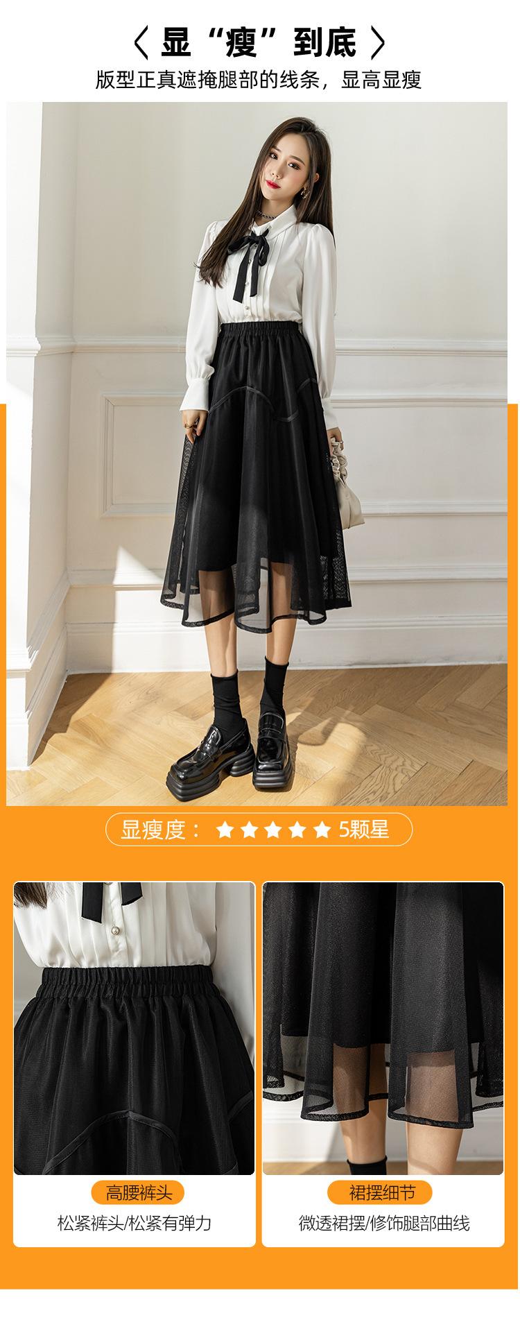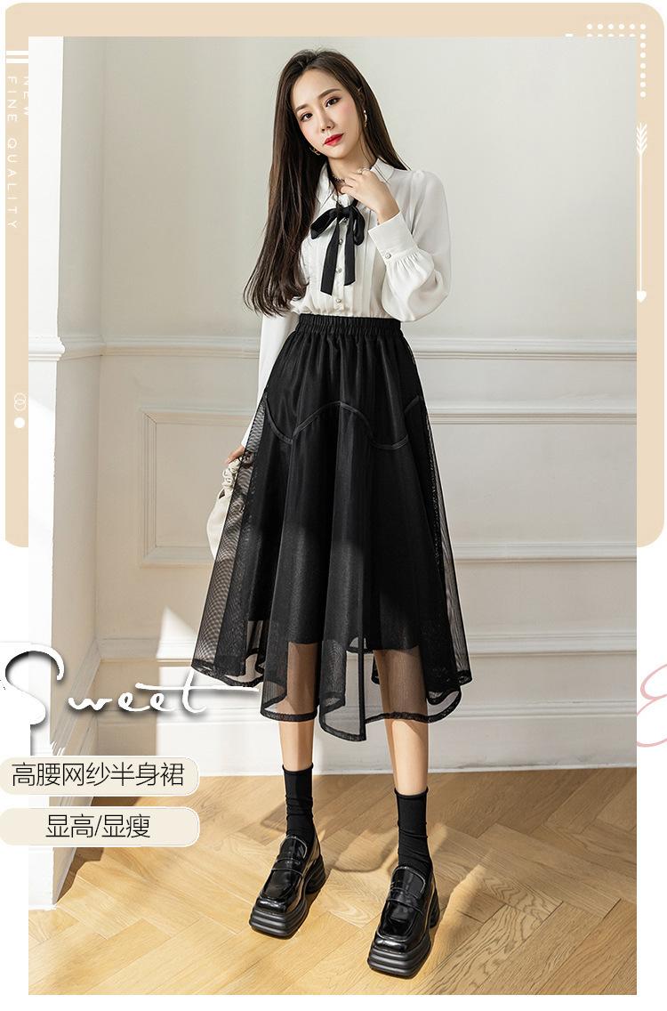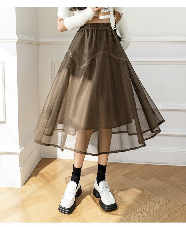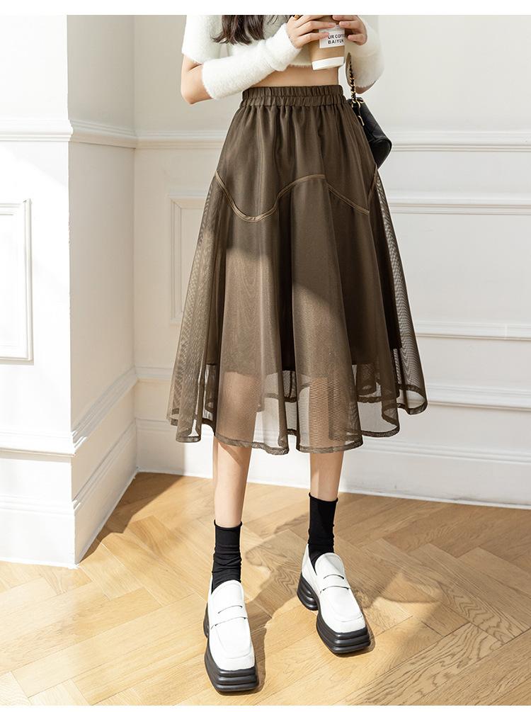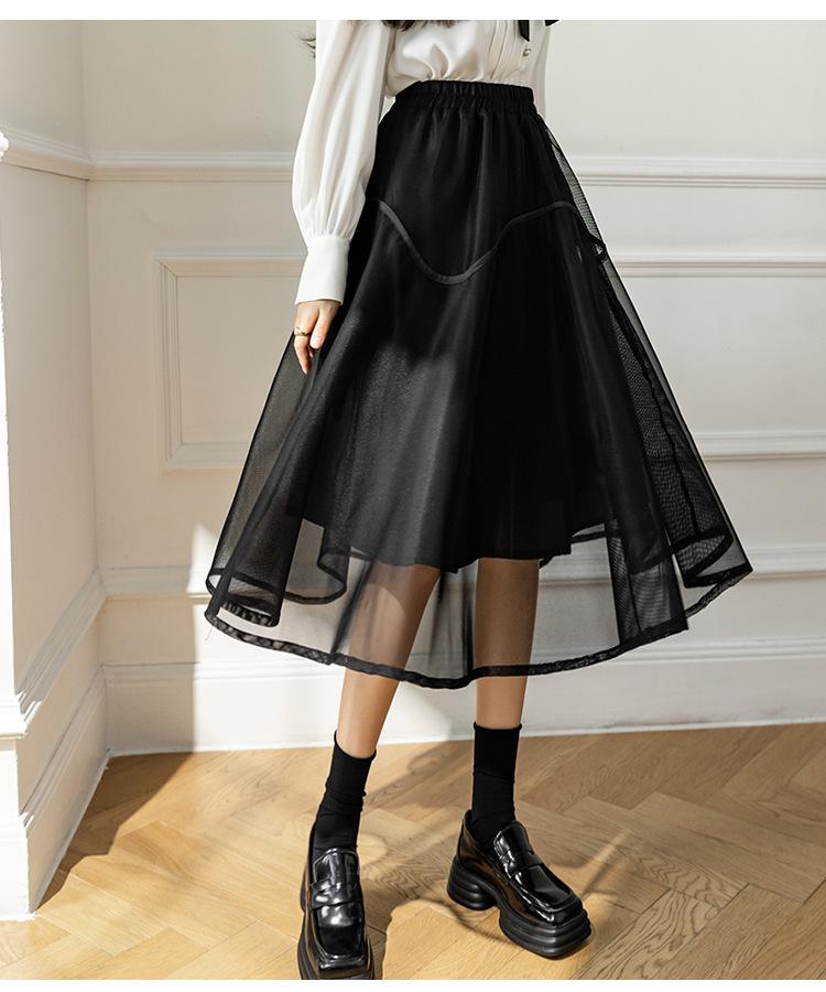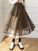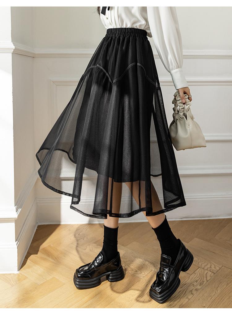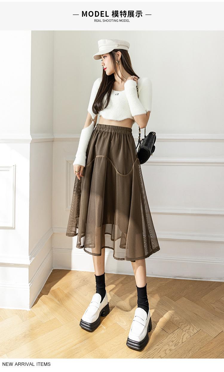 Falda de malla 2023 Verano y Otoño Nueva Falda de cintura alta con costuras adelgazantes Falda drapeada de línea A Falda de longitud media con vuelo grande