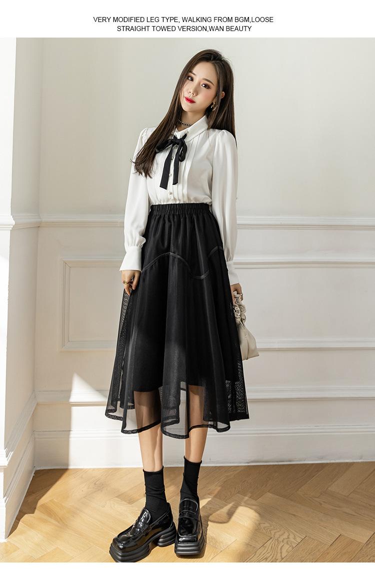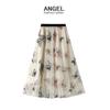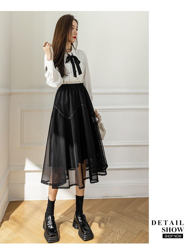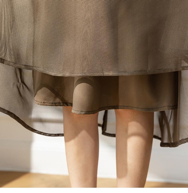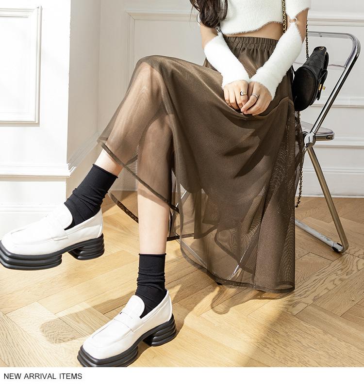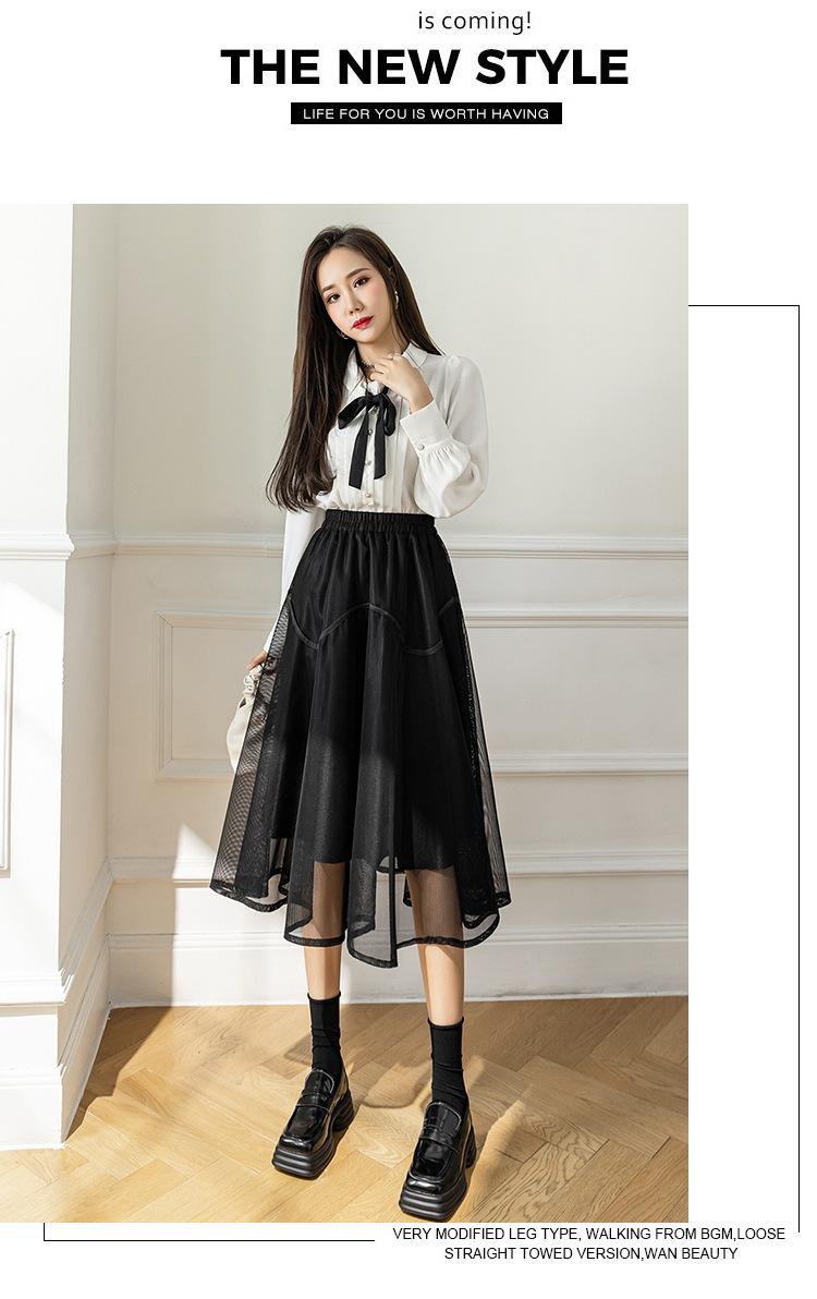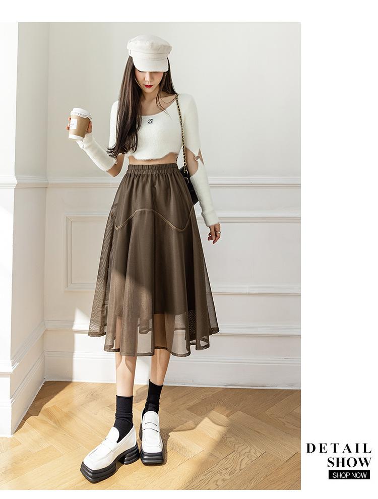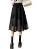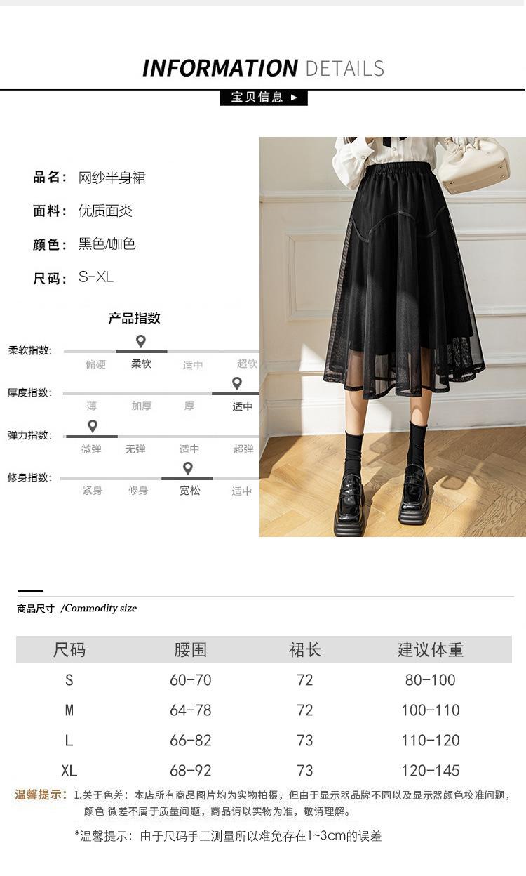 Falda de malla 2023 Verano y Otoño Nueva Falda de cintura alta con costuras adelgazantes Falda drapeada de línea A Falda de longitud media con vuelo grande