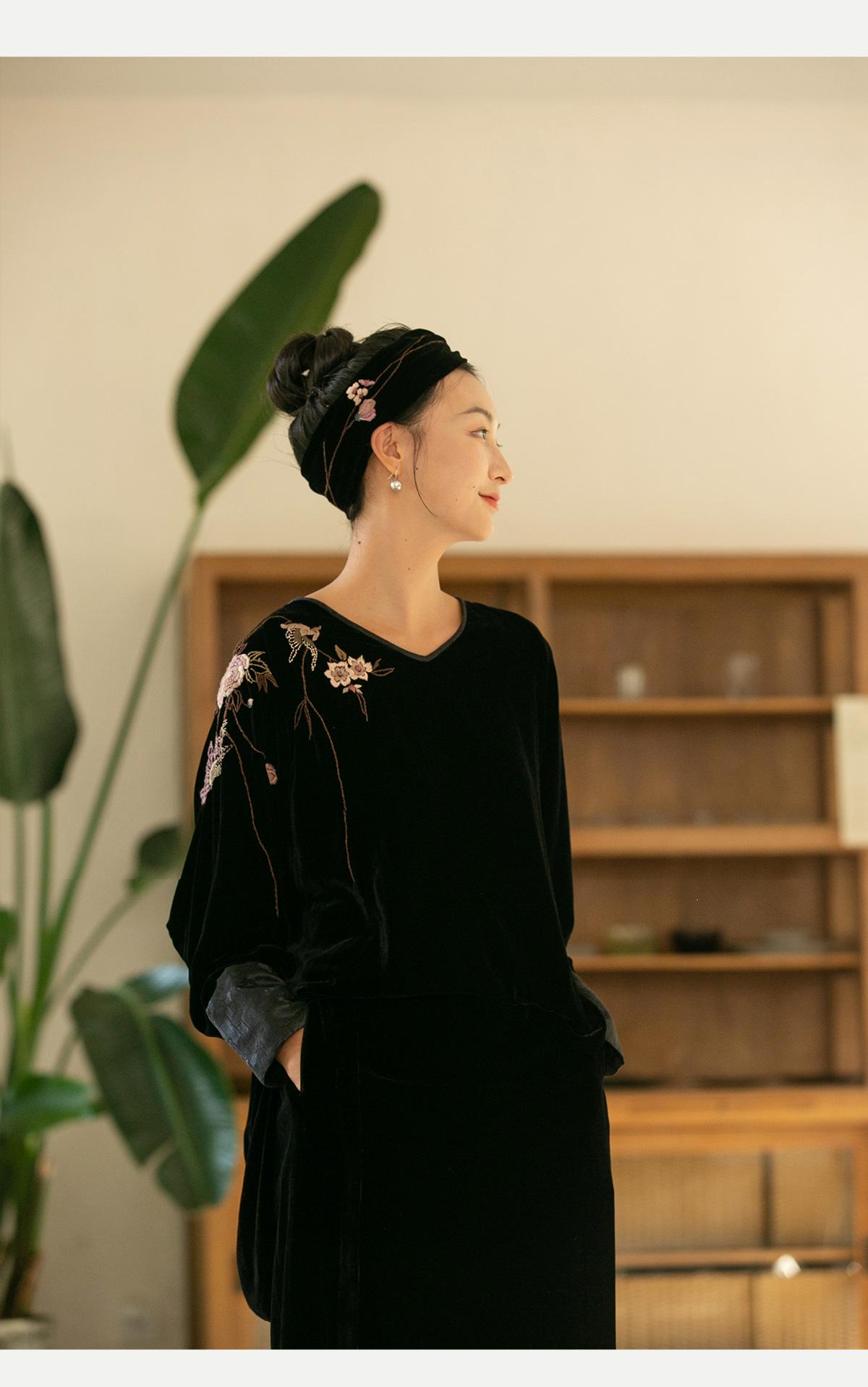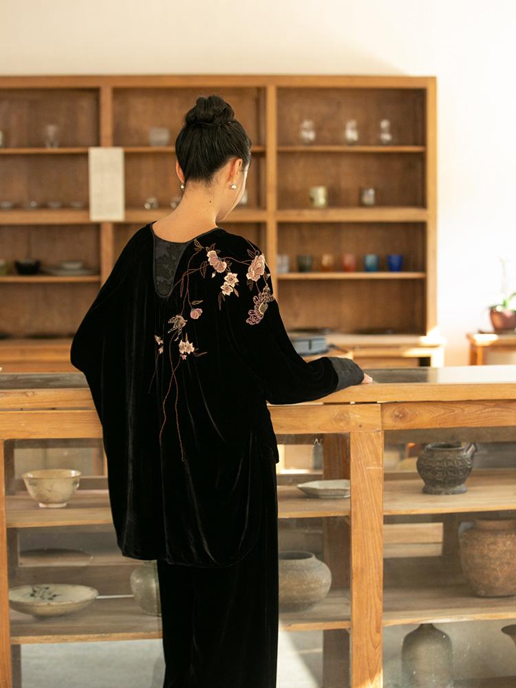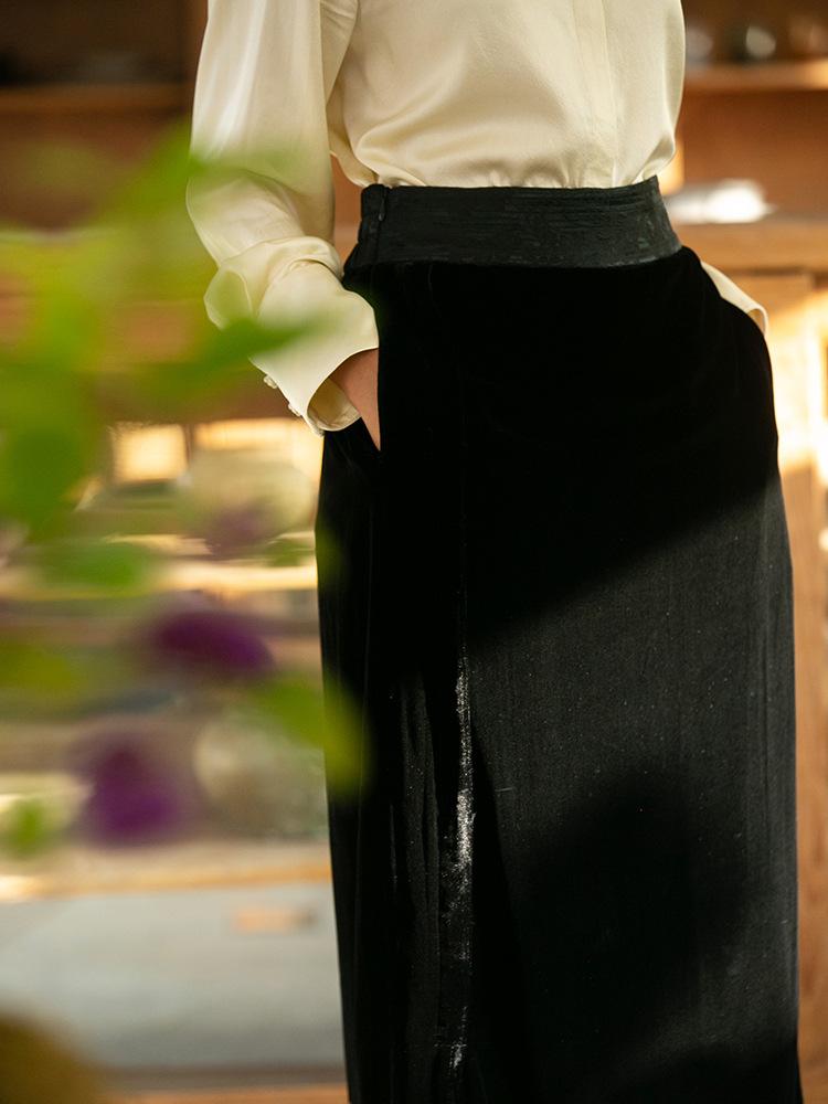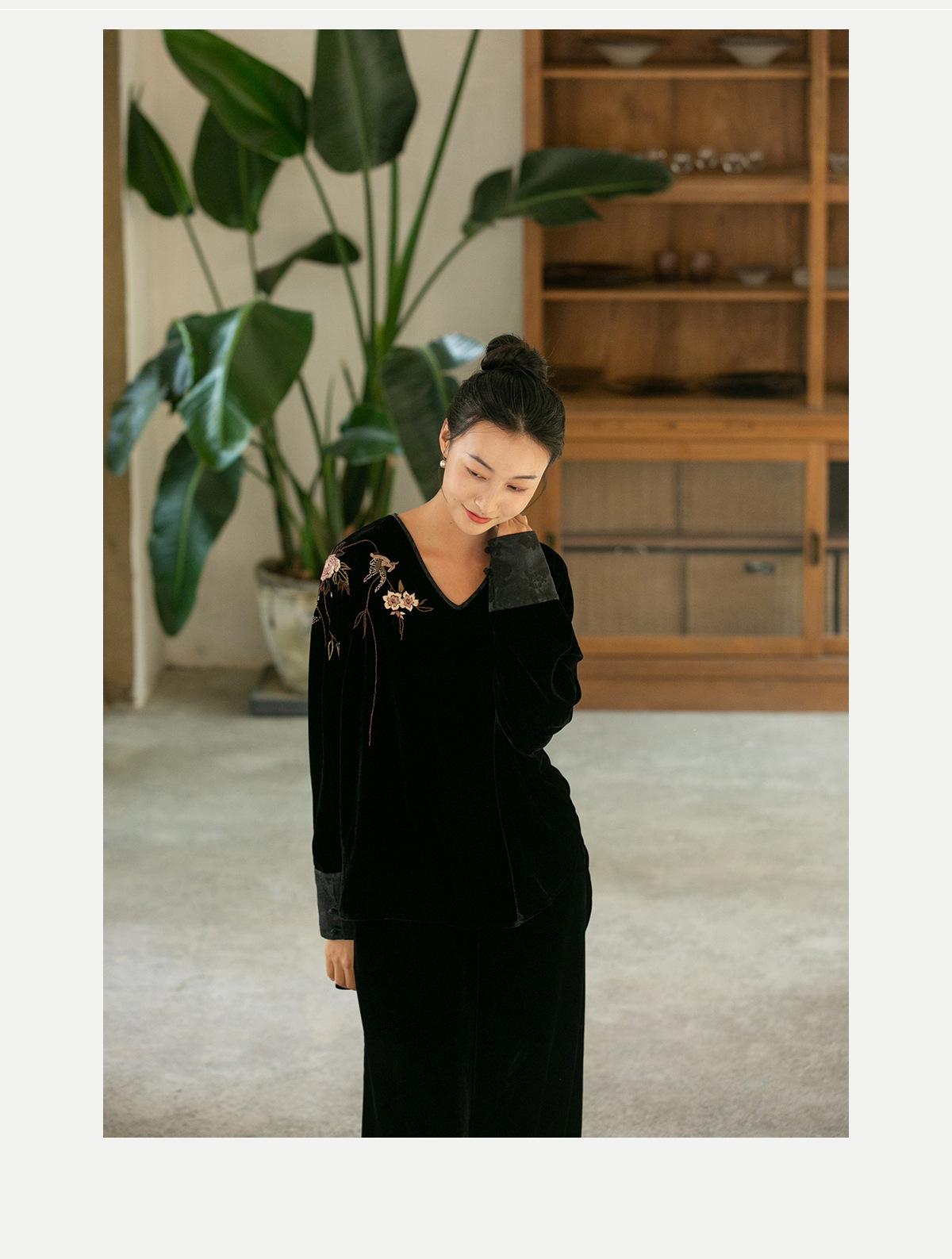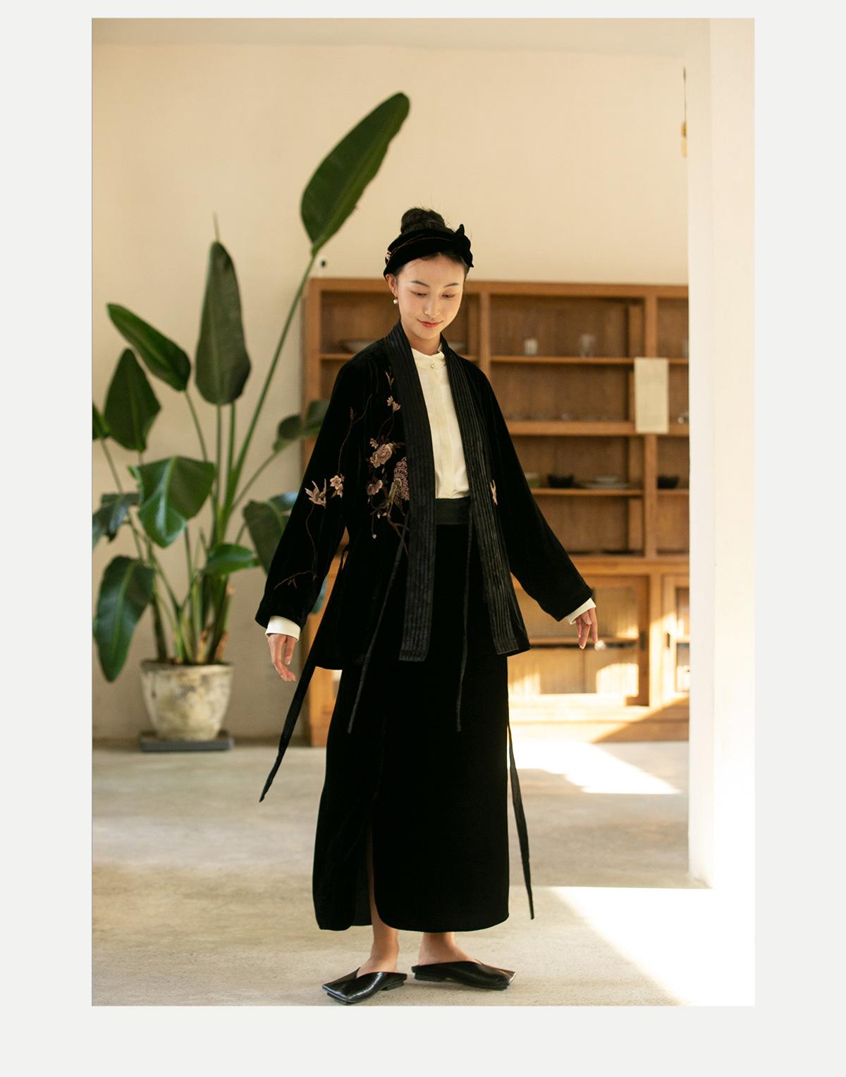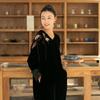 Traje de moda de primavera con bordado de terciopelo dorado, falda negra interior, nuevo conjunto de dos piezas de temperamento retro chino