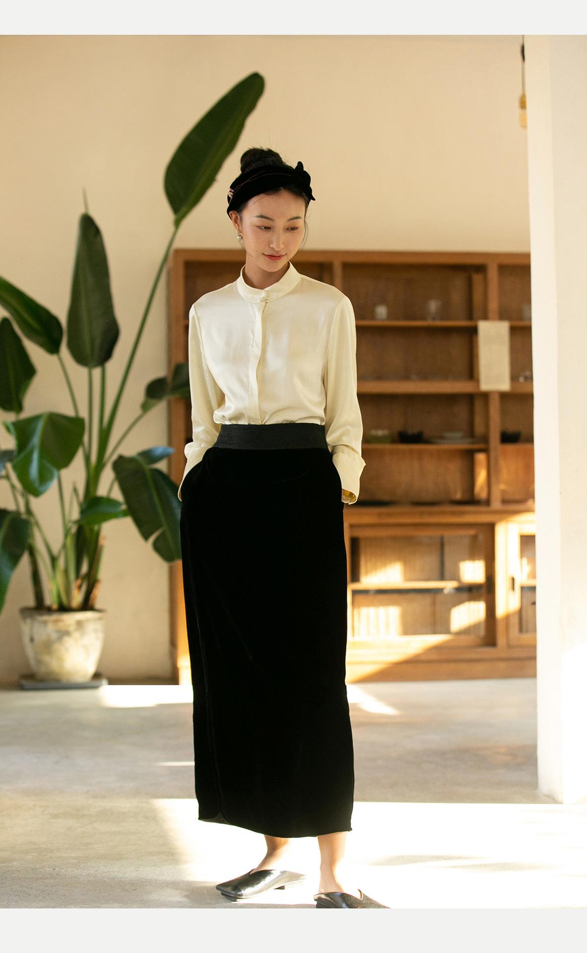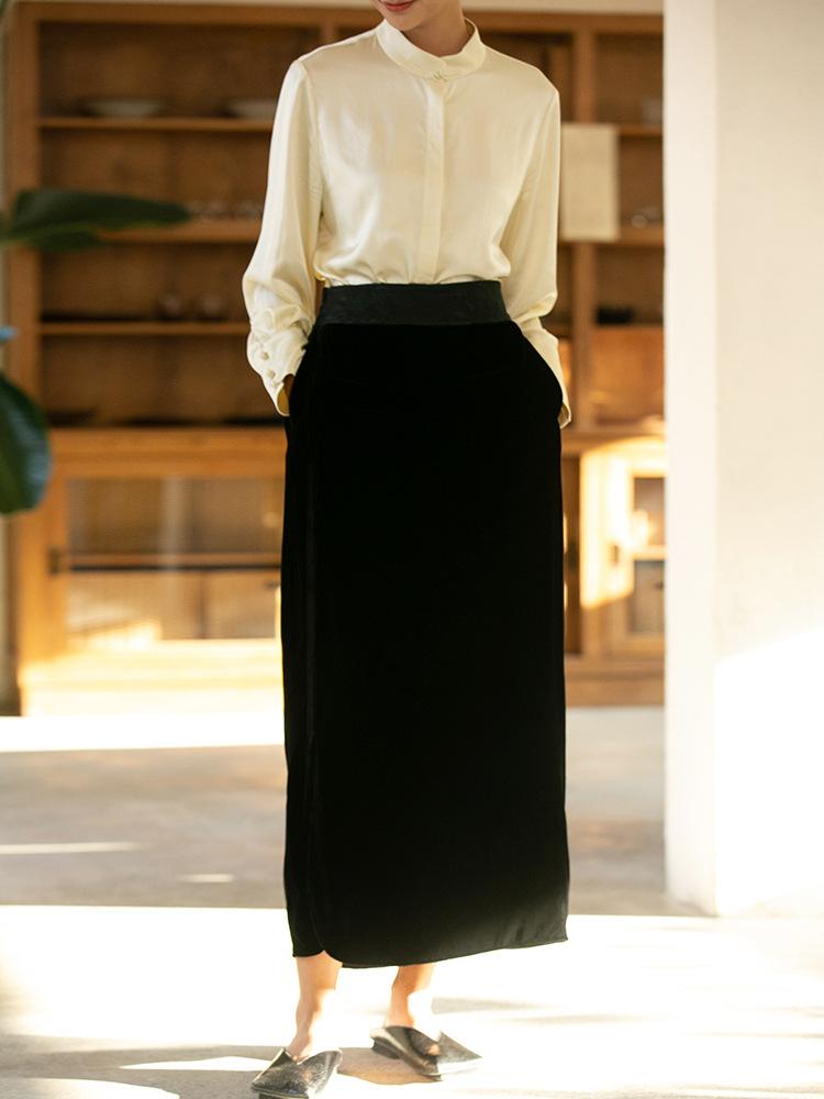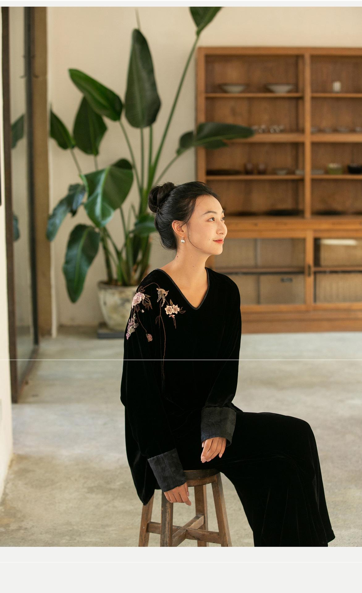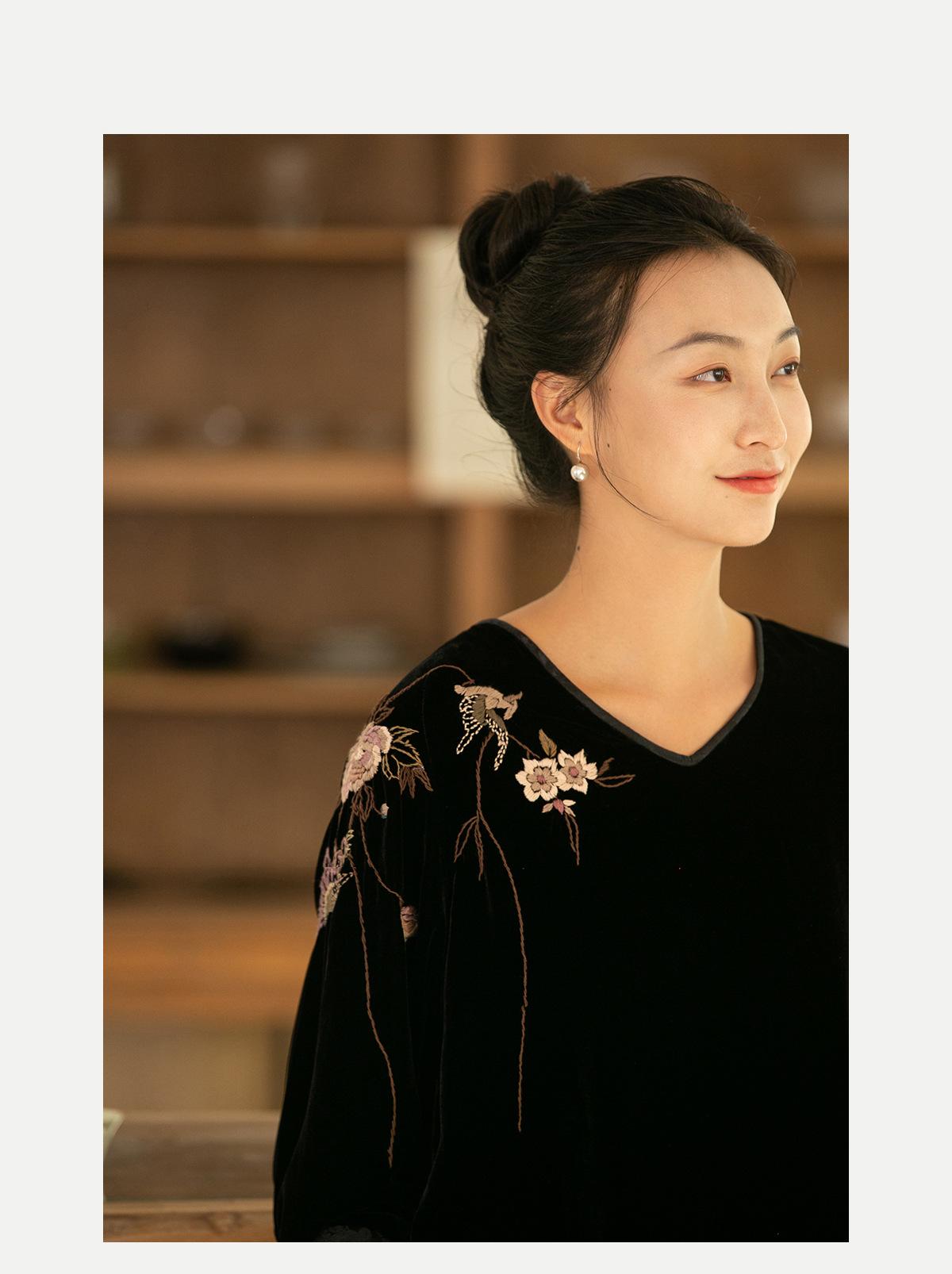 Traje de moda de primavera con bordado de terciopelo dorado, falda negra interior, nuevo conjunto de dos piezas de temperamento retro chino