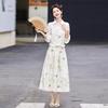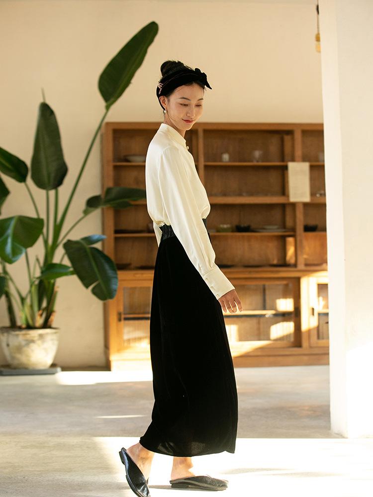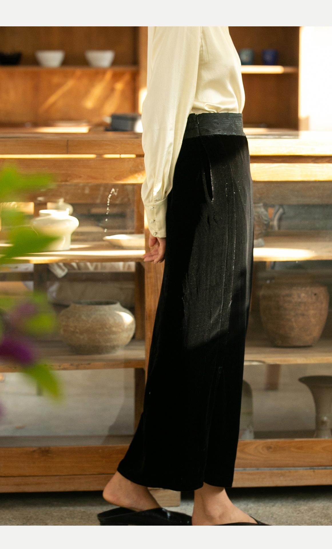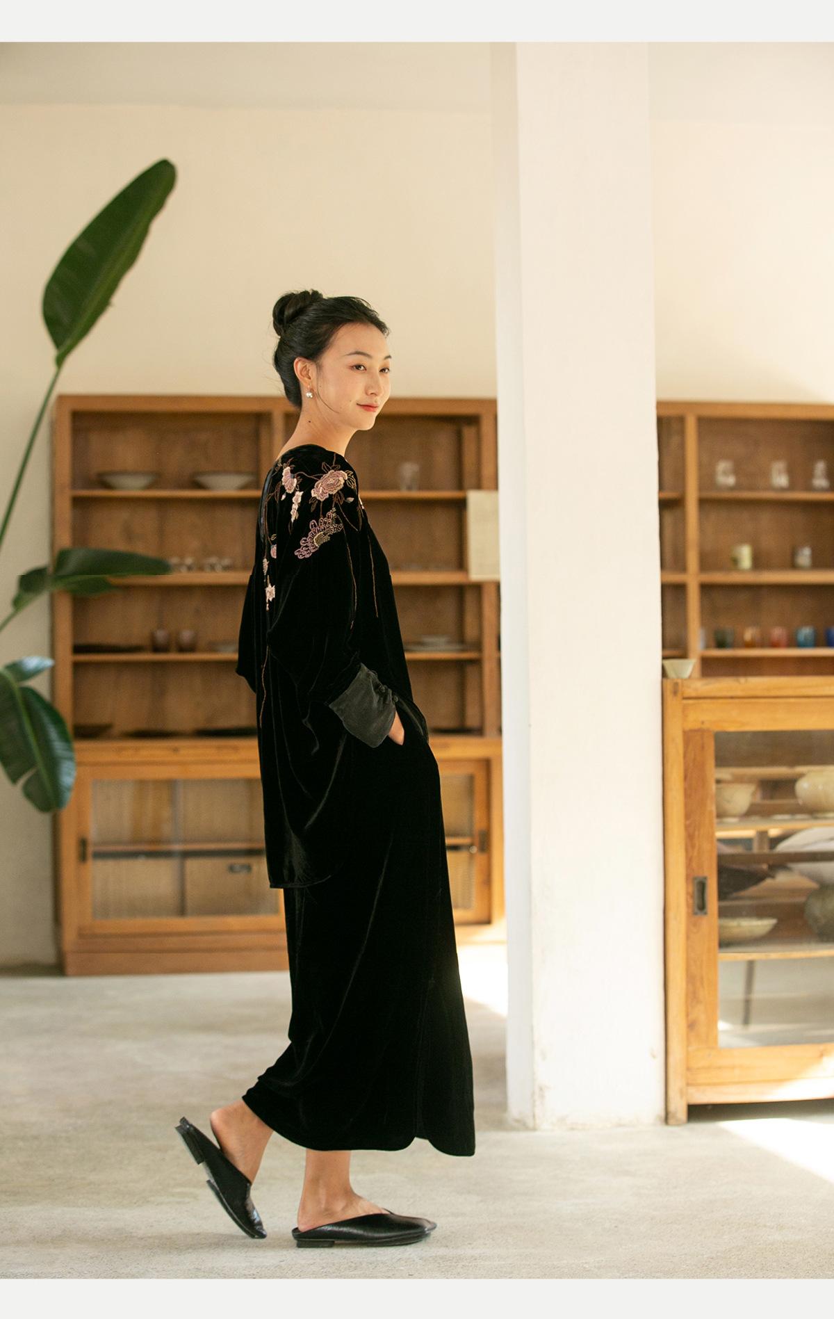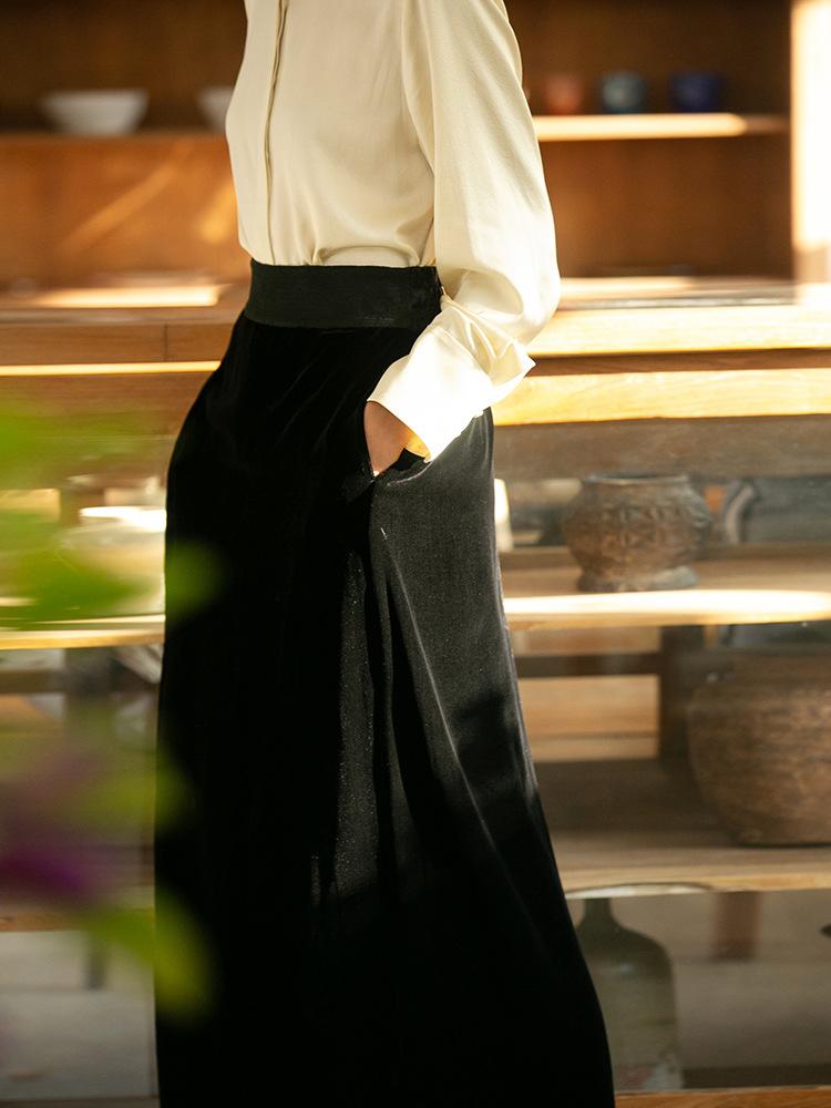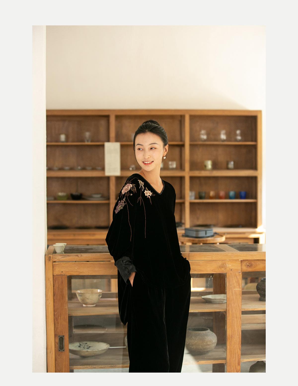 Traje de moda de primavera con bordado de terciopelo dorado, falda negra interior, nuevo conjunto de dos piezas de temperamento retro chino