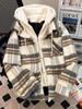 Abrigo de Algodón de Dos Piezas Falsas a Cuadros para Mujer 2024 Otoño e Invierno Nuevo Estilo Americano Retro Estilo Chanel Chaqueta con Capucha Trendy