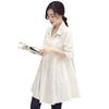 Camisa Blanca de Mujer de Largo Medio 2024 Primavera y Otoño Nueva Estilo Coreano Talla Grande Suelta Manga Larga Moda Versátil Camisa