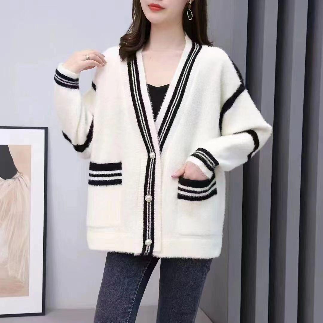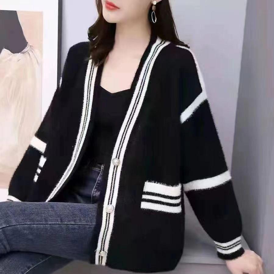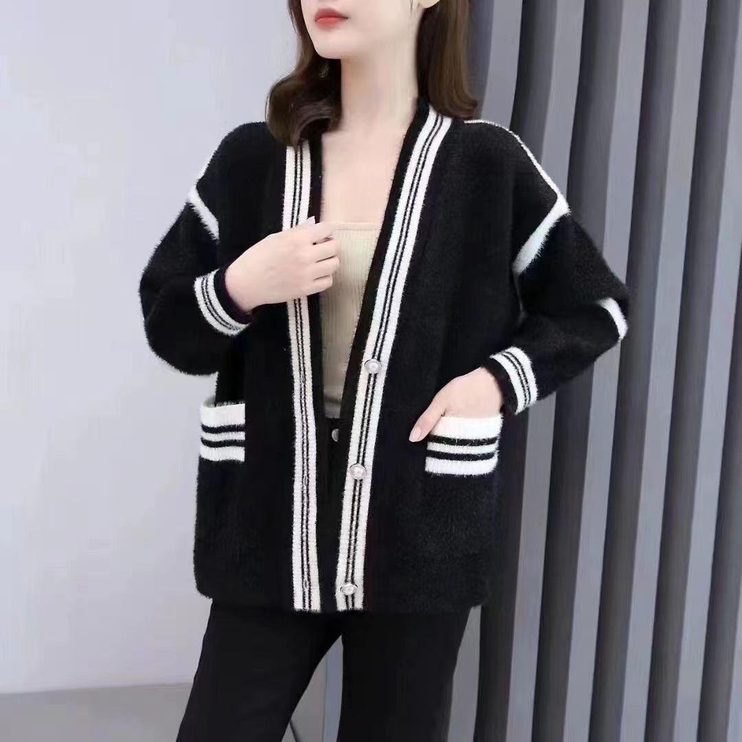 Nuevo suéter de moda de terciopelo de visón sintético estilo Chanel de otoño e invierno para mujer, cárdigan de punto sin pelusa, abrigo de terciopelo de doble cara
