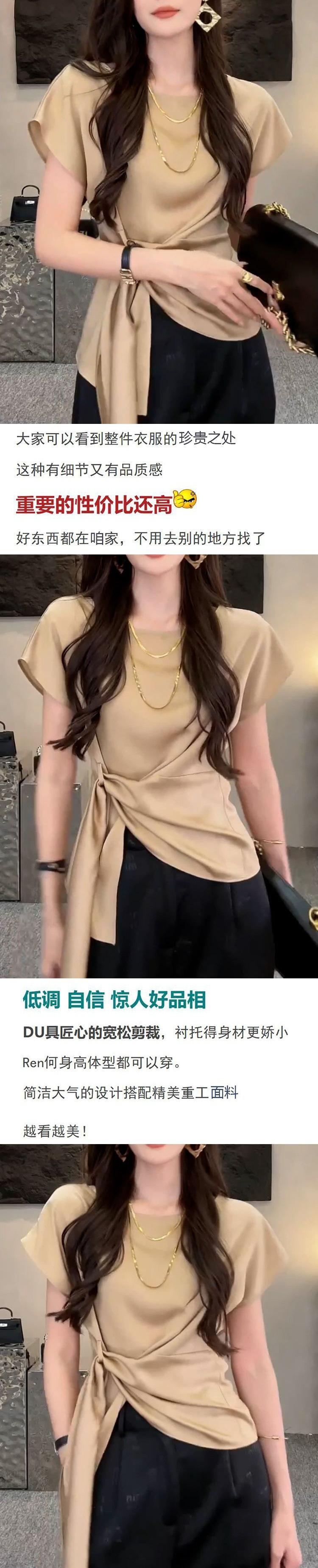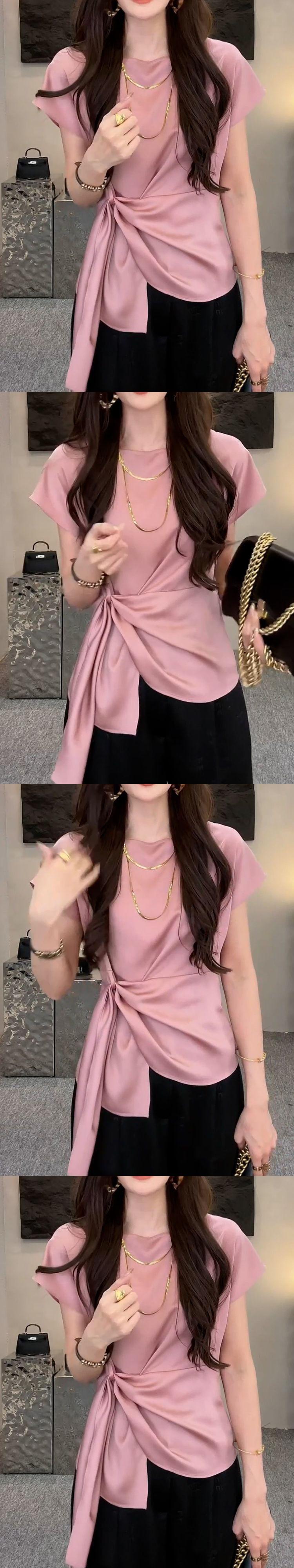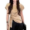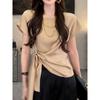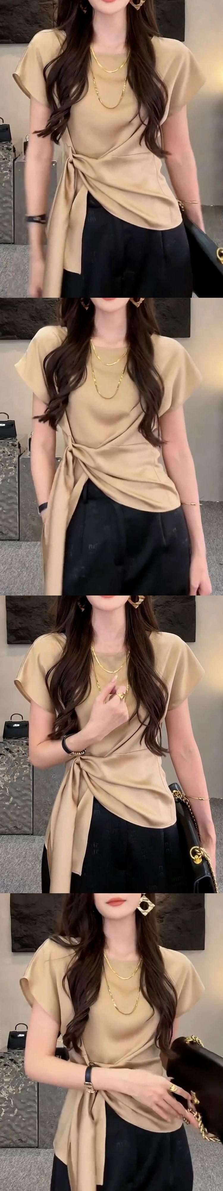 Camisa de Manga Corta con Correa de Diseño Sense para Mujer Verano Ligera Lujosa Moderna Elegante Irregular Top Trendy