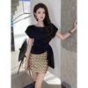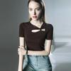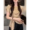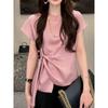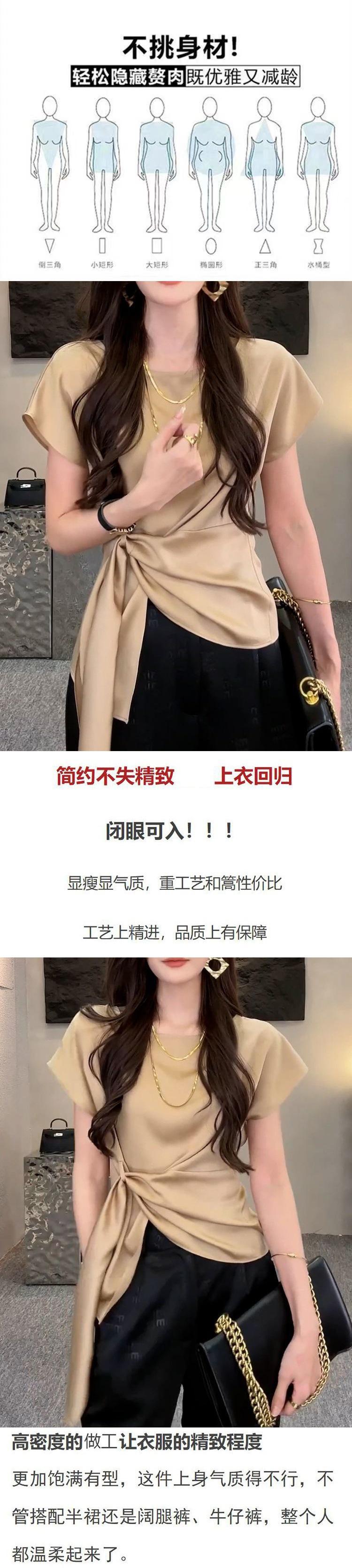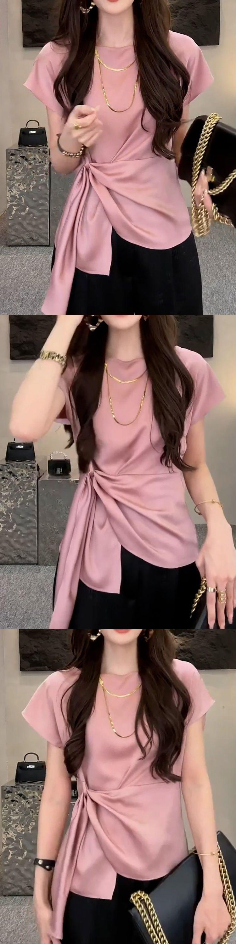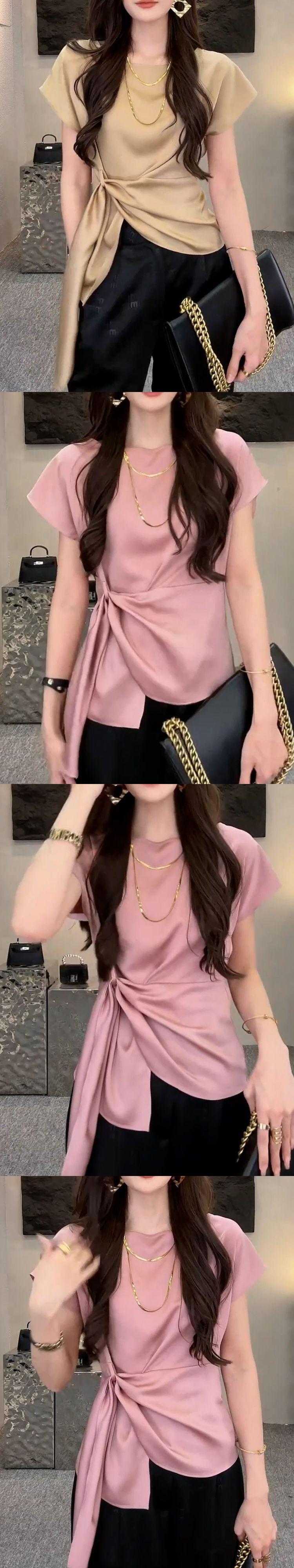 Camisa de Manga Corta con Correa de Diseño Sense para Mujer Verano Ligera Lujosa Moderna Elegante Irregular Top Trendy