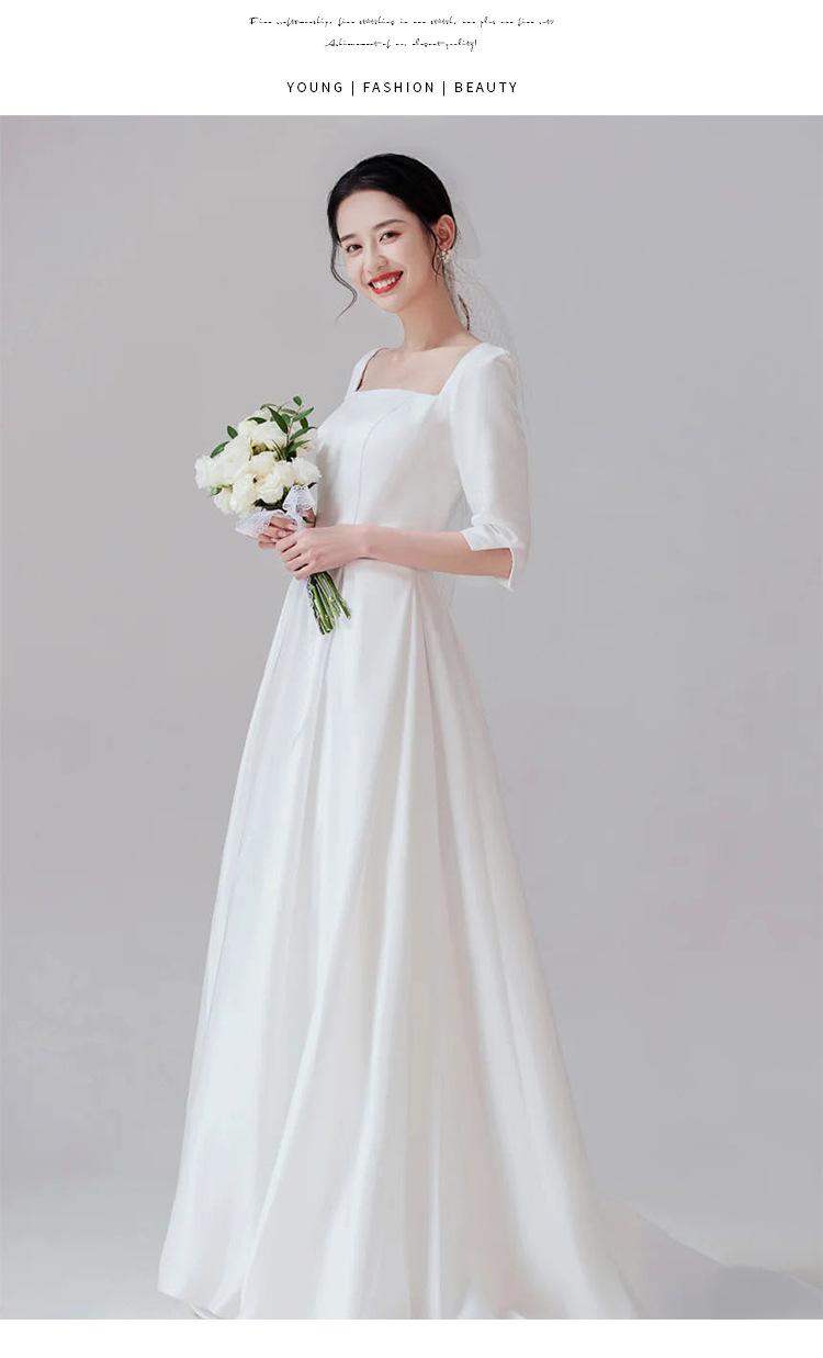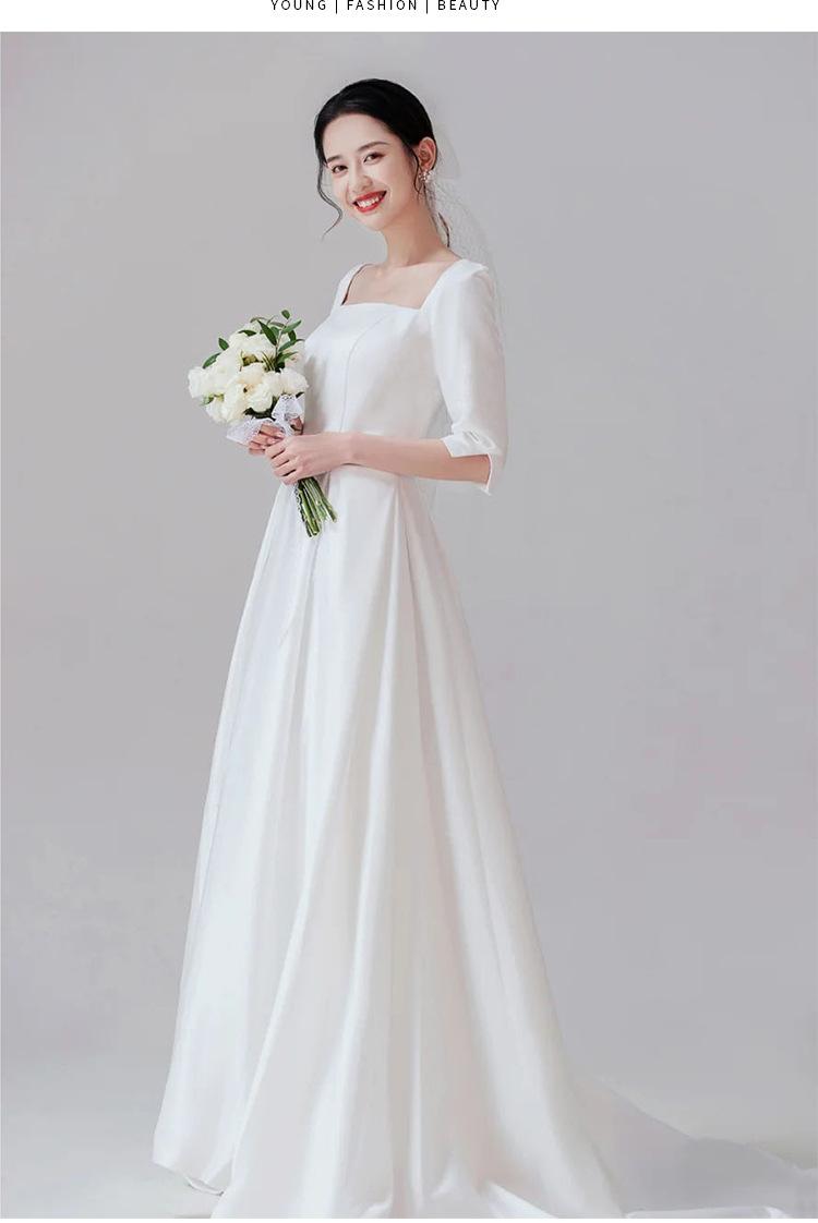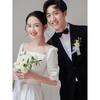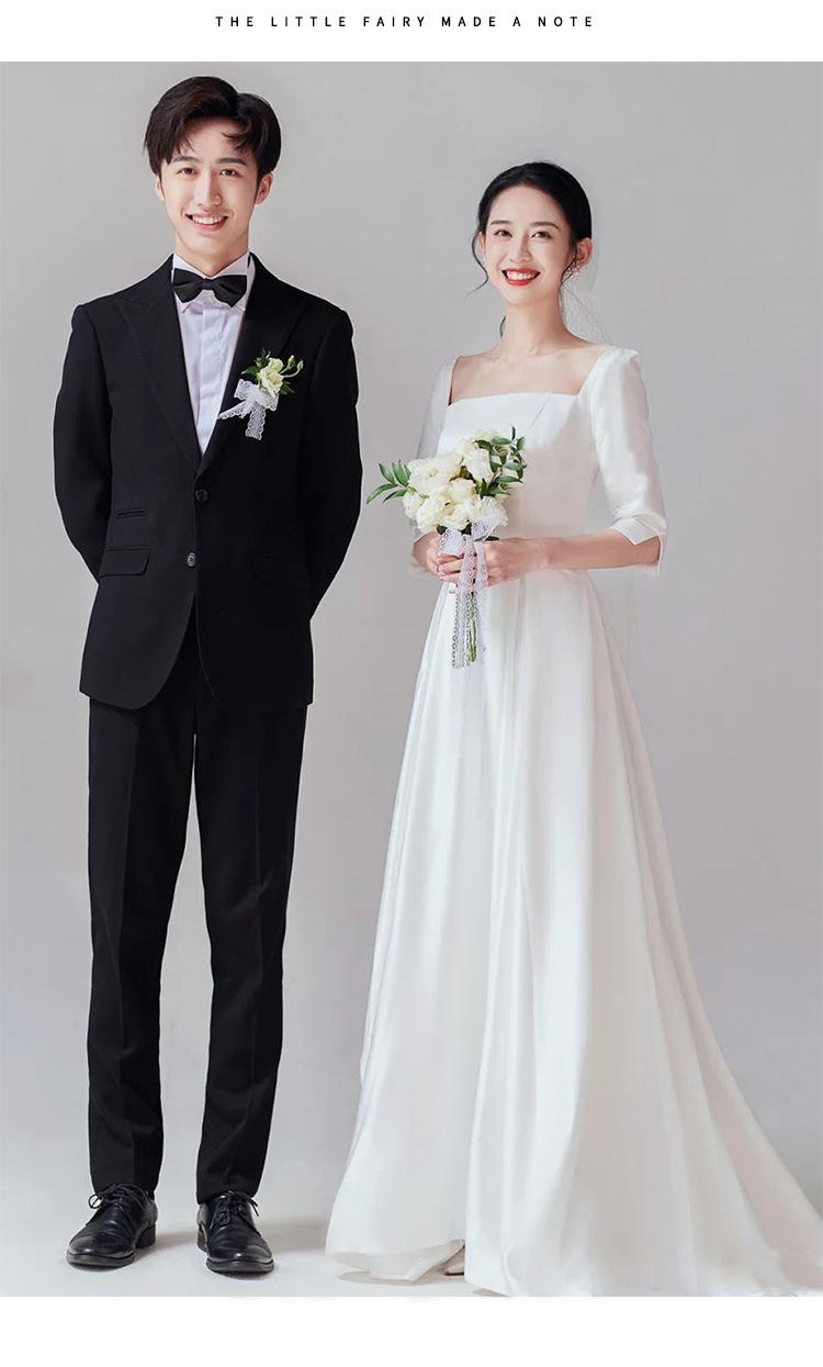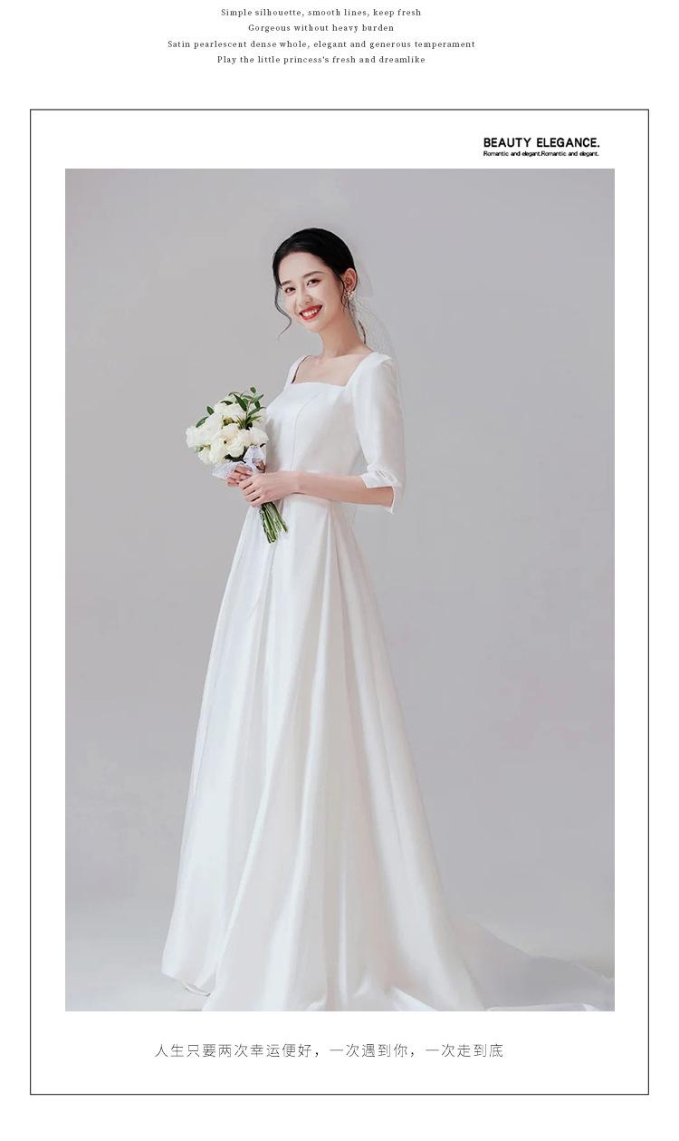 Vestido de Novia Francés Ligero 2025 Nuevo Manga Larga Satén Sencillo Elegante Fotografía de Viaje Sencillo Novia Salida Gasa Vestido Pequeño Falda