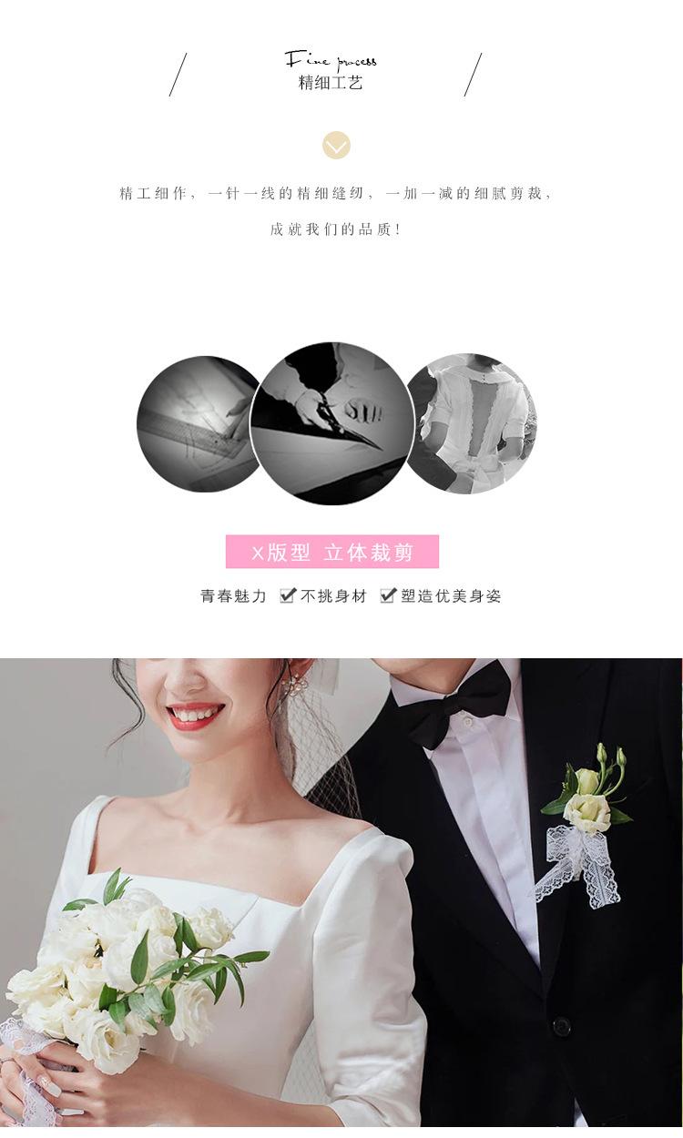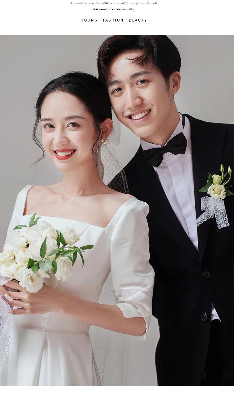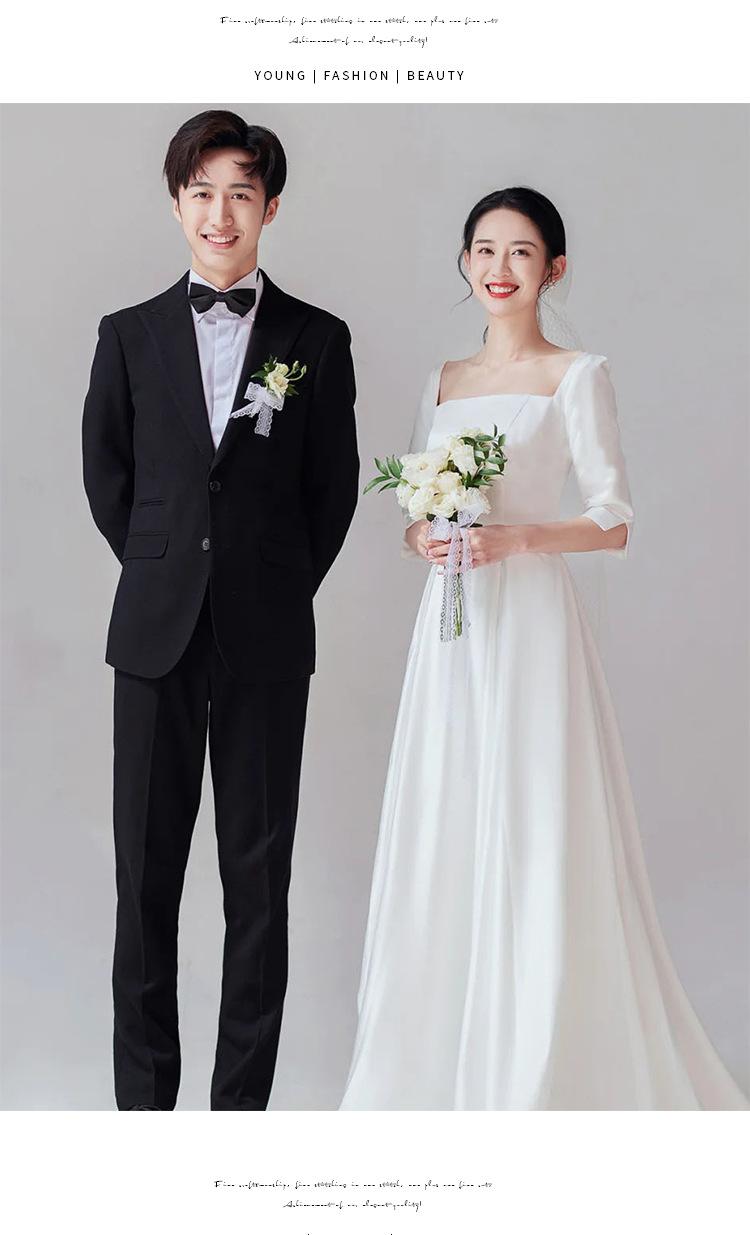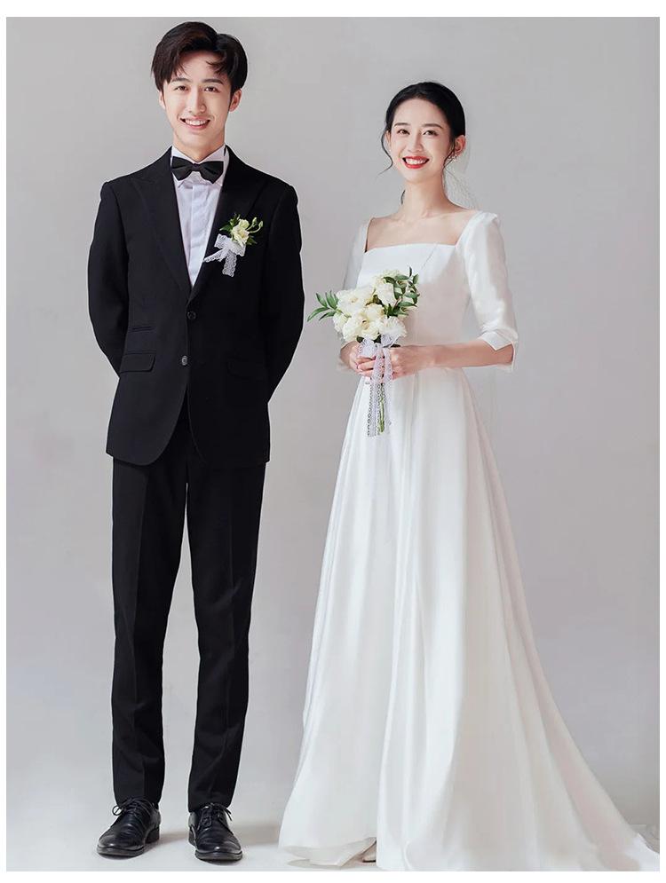 Vestido de Novia Francés Ligero 2025 Nuevo Manga Larga Satén Sencillo Elegante Fotografía de Viaje Sencillo Novia Salida Gasa Vestido Pequeño Falda