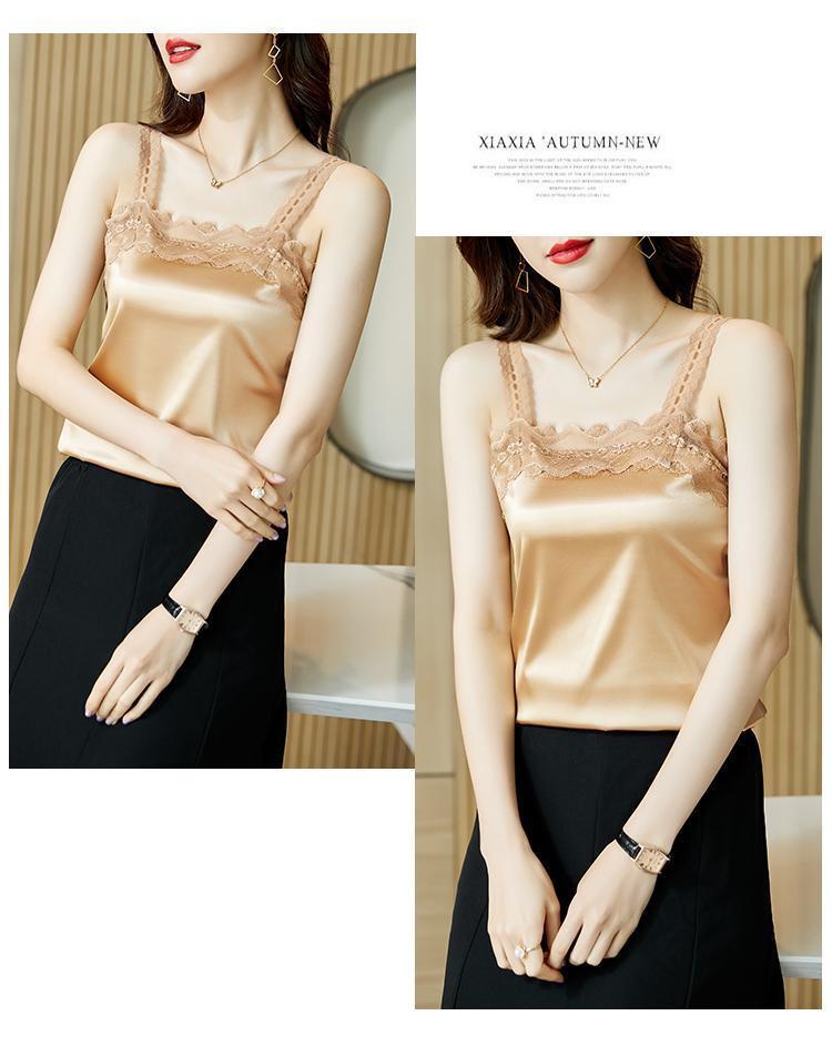 Camisola Chaleco Encaje Puntada Camisola Clavícula Nueva Ropa Interior para Mujer Chaleco Base Ajustado Ropa Exterior Hermosa Espalda Top Trendy