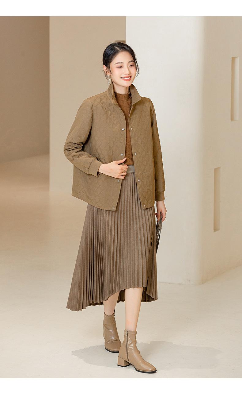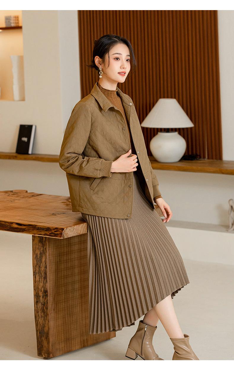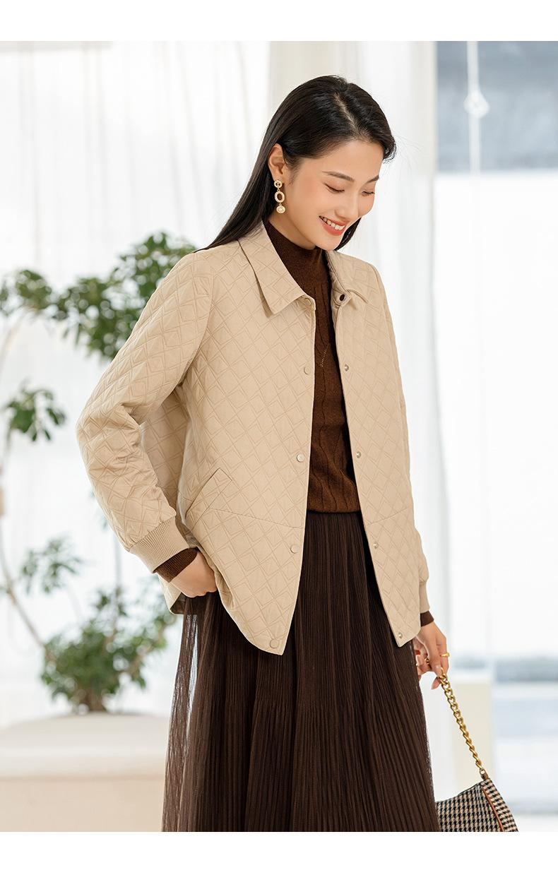 Abrigo Corto Texturizado a Cuadros Romboidales, Ropa de Trabajo que Reduce la Edad, Cortavientos Casual Elegante Nuevo de Otoño e Invierno 23, Moderno y Versátil