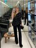 Camisa negra informal francesa de verano 2024, elegante camisa de gasa con lunares y ondas de estilo extranjero que combina con todo.