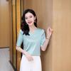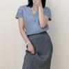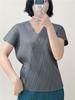 Verano Nuevo Miyake Camiseta Top Moda de Mujer Versátil Suelta Cuello en V Plisada Ajustada Camisa Ropa Plisada Ropa de Mujer