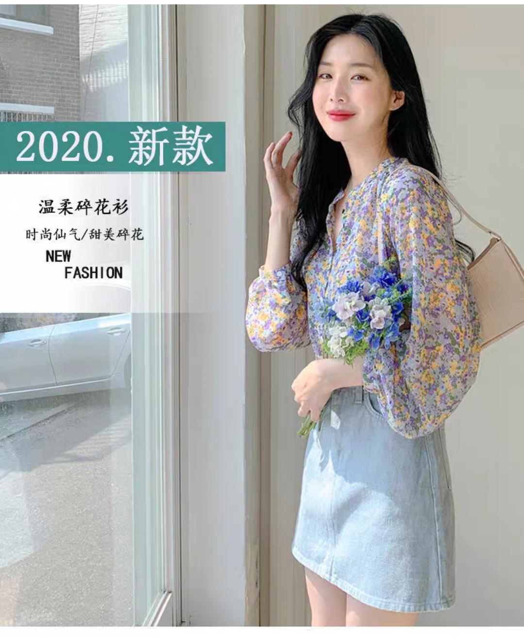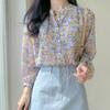 Camisa de gasa floral para mujer, diseño de hada súper primavera y verano, nuevo estilo, manga larga, cuello redondo, estampada, estilosa, blusa pequeña y dulce.