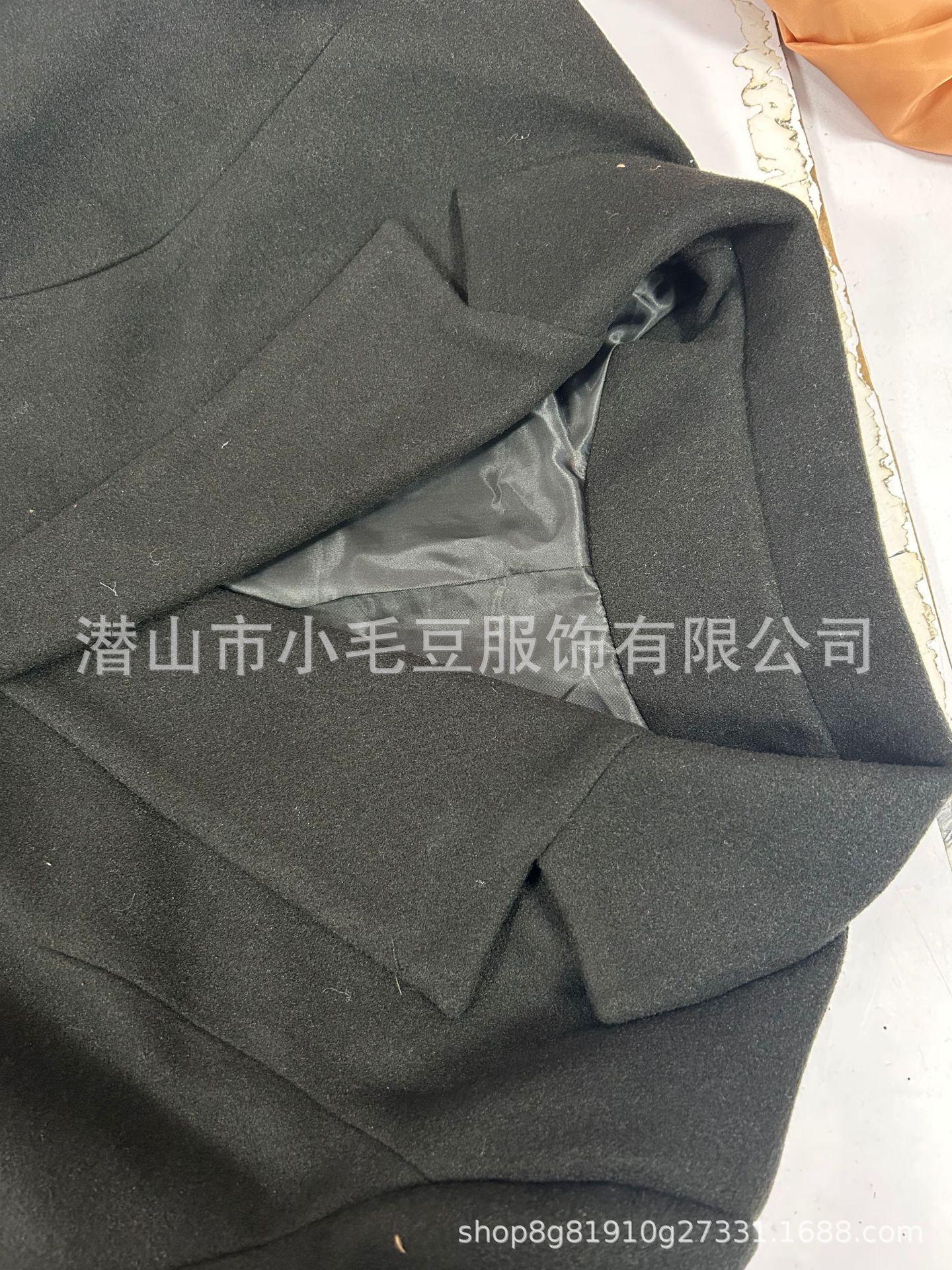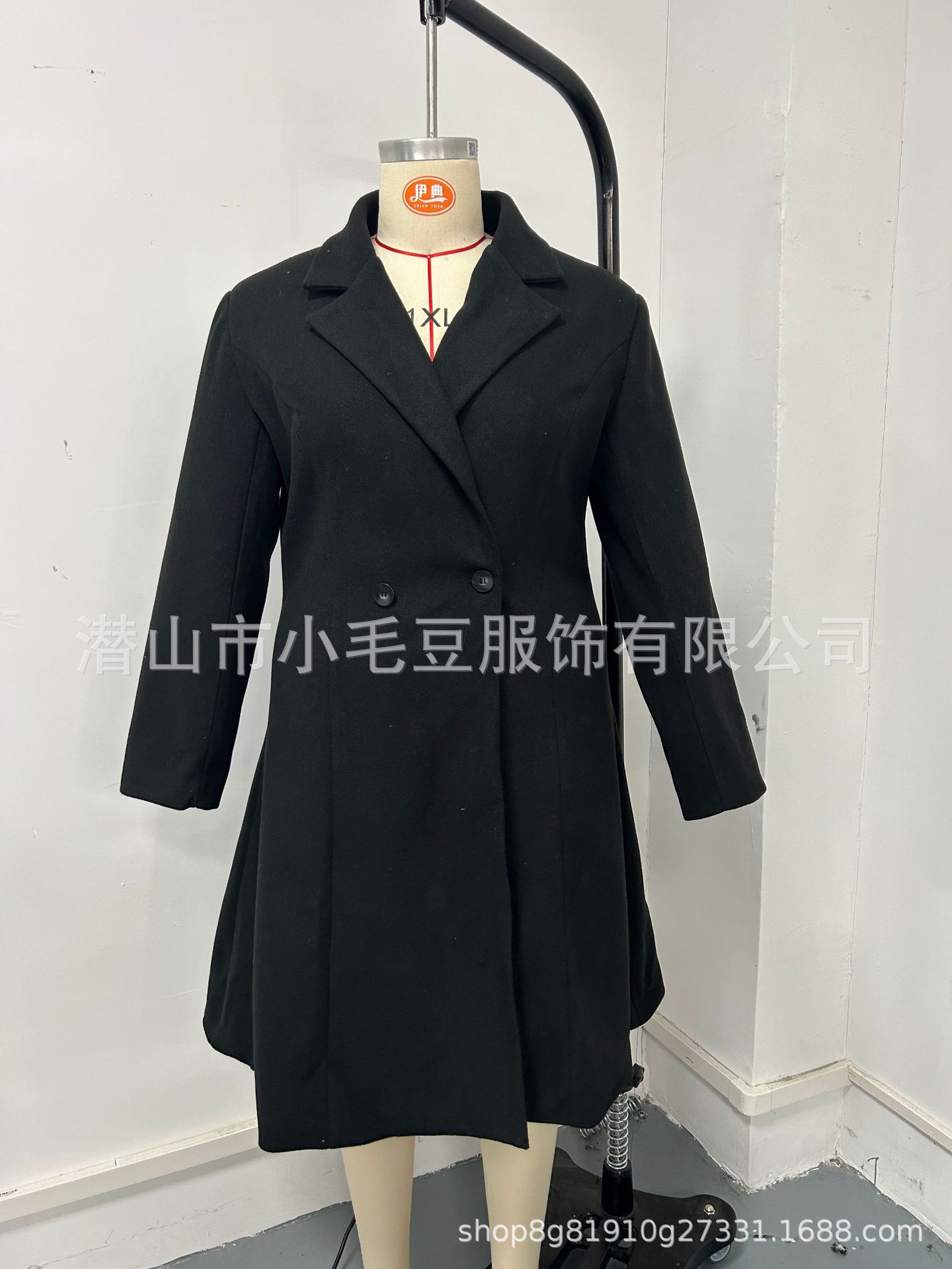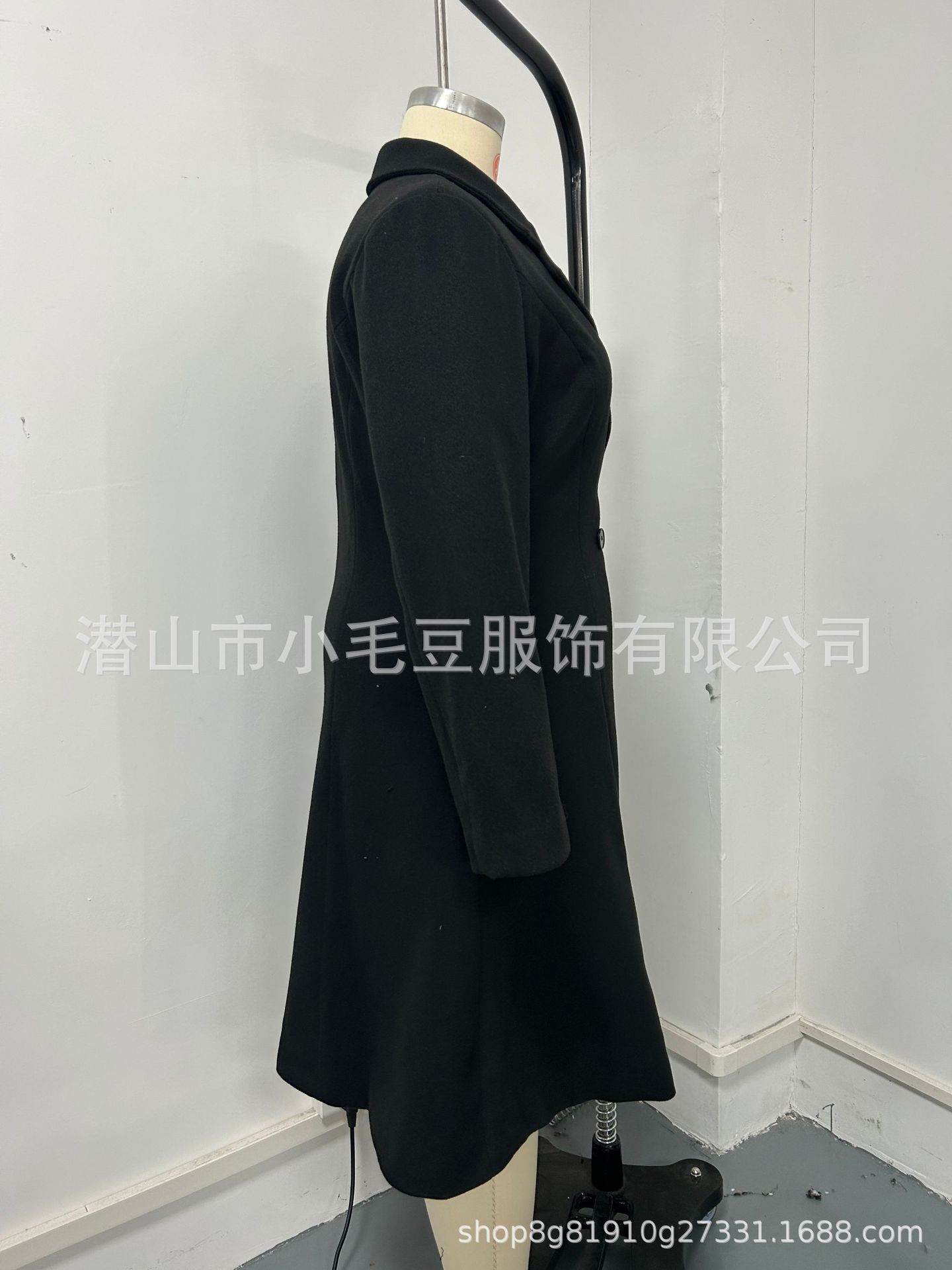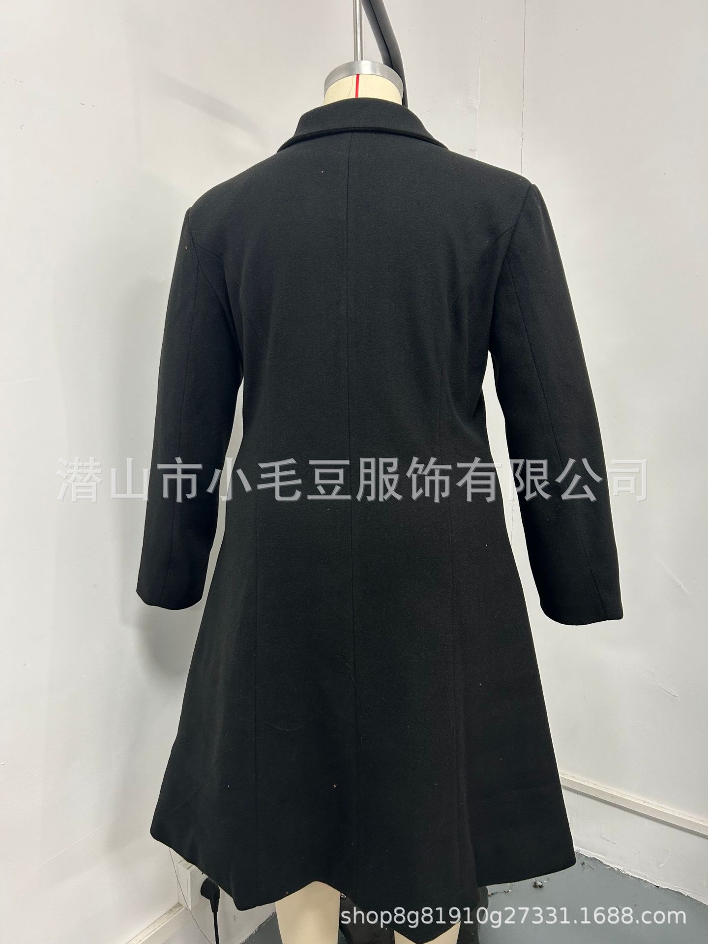 Ropa de Mujer Transfronteriza Moda Europea y Americana Otoño e Invierno Sencillo Abrigo de Lana de Manga Larga con Cintura y Largo Medio para Mujer