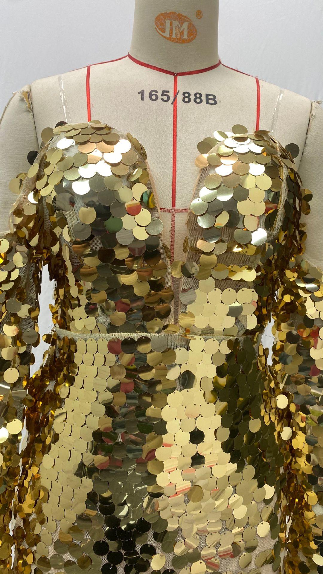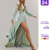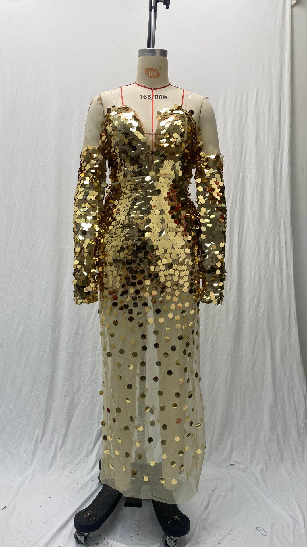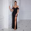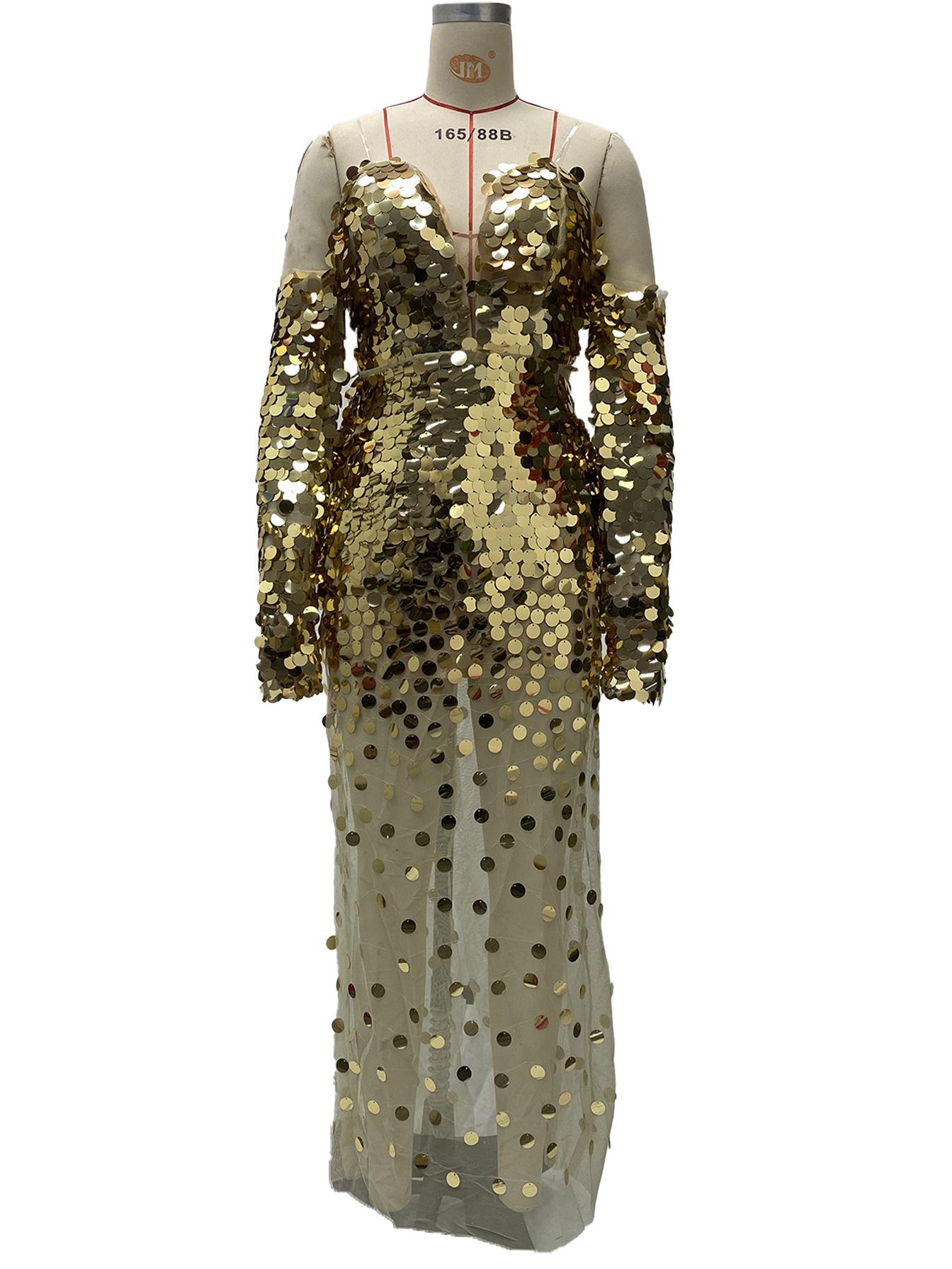 2025 Nuevo Verano Ropa Transfronteriza Europea y Americana Vestido Lentejuelado Un Hombro Sexy Malla Transparente Vestido Largo de Noche