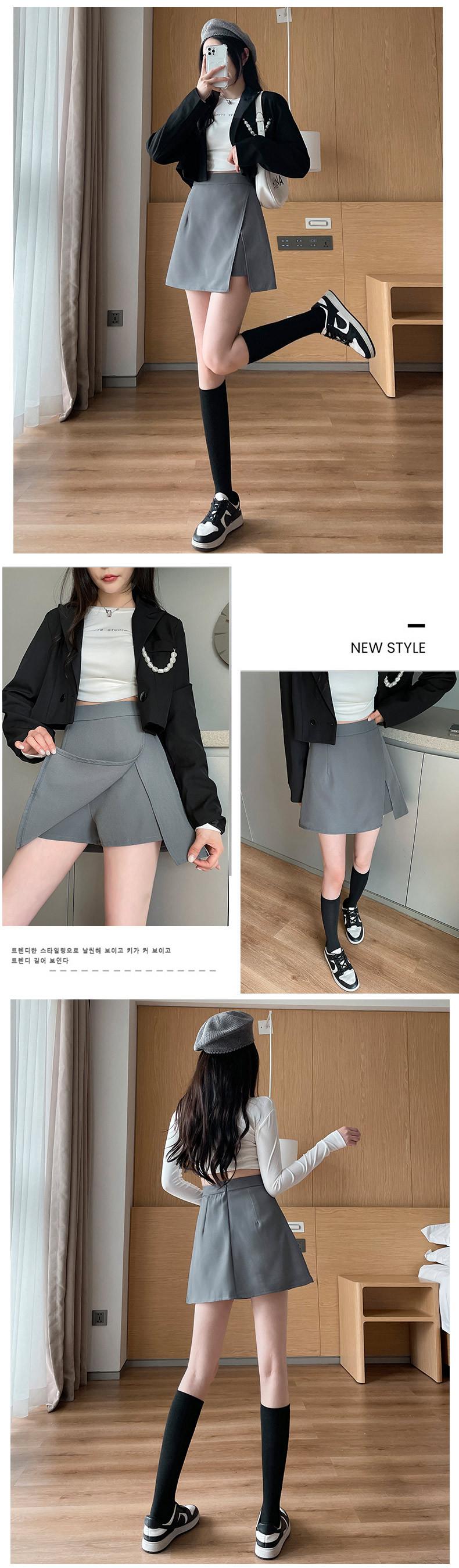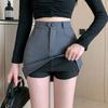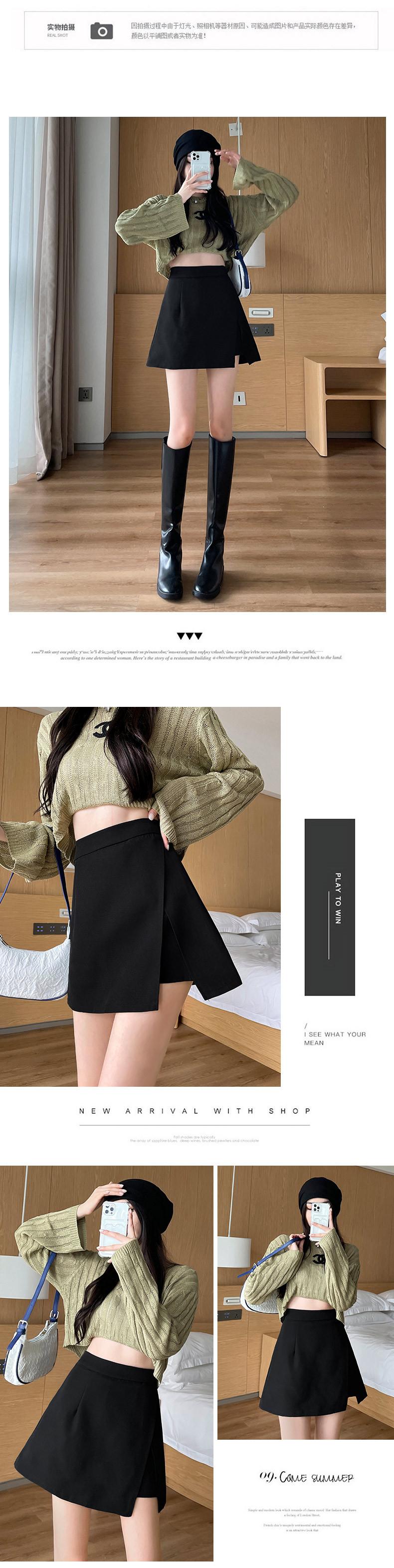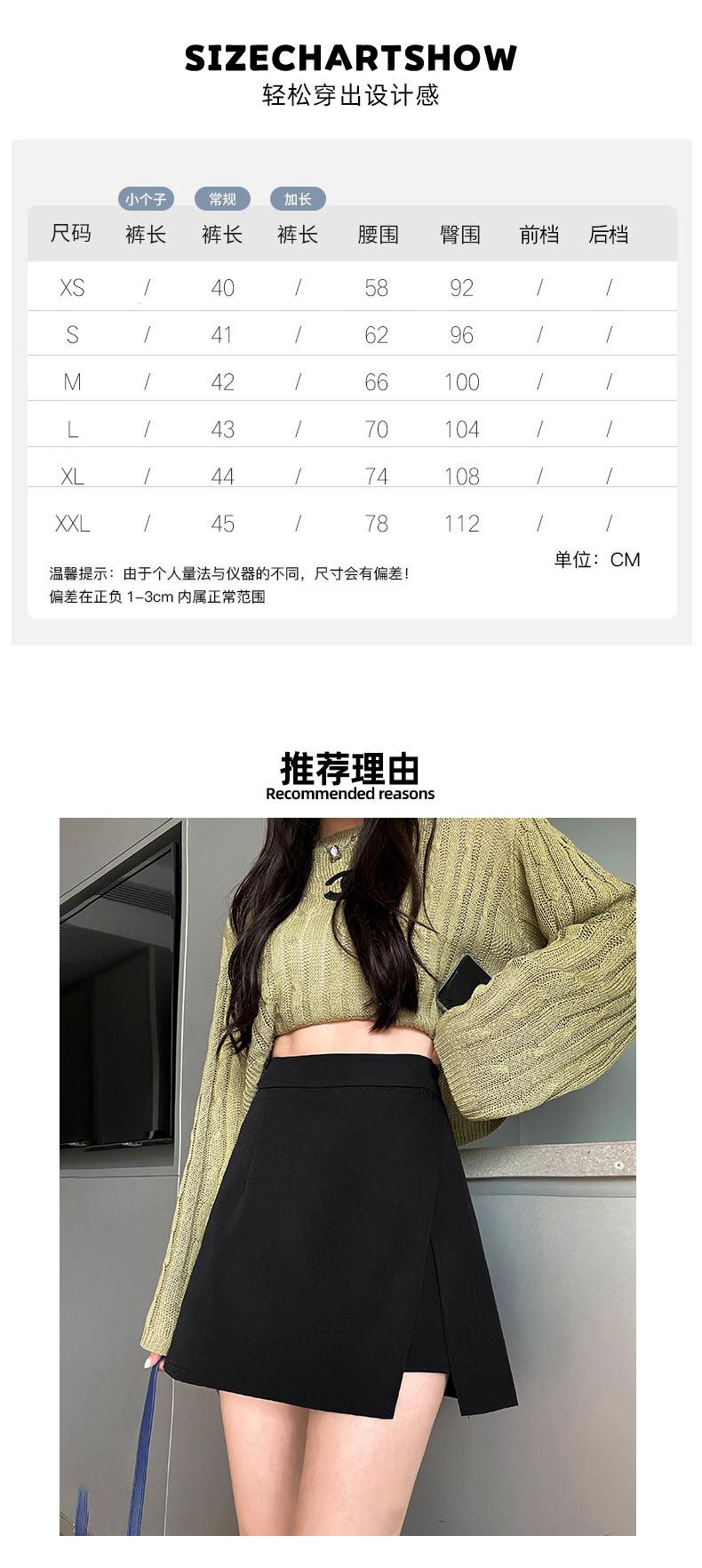 Falda Negra con Abertura Falda Corta de Primavera y Verano para Mujer Diseño Nicho Cintura Alta Look Adelgazante Línea A Pantalones Cortos Anti-Exposición