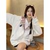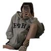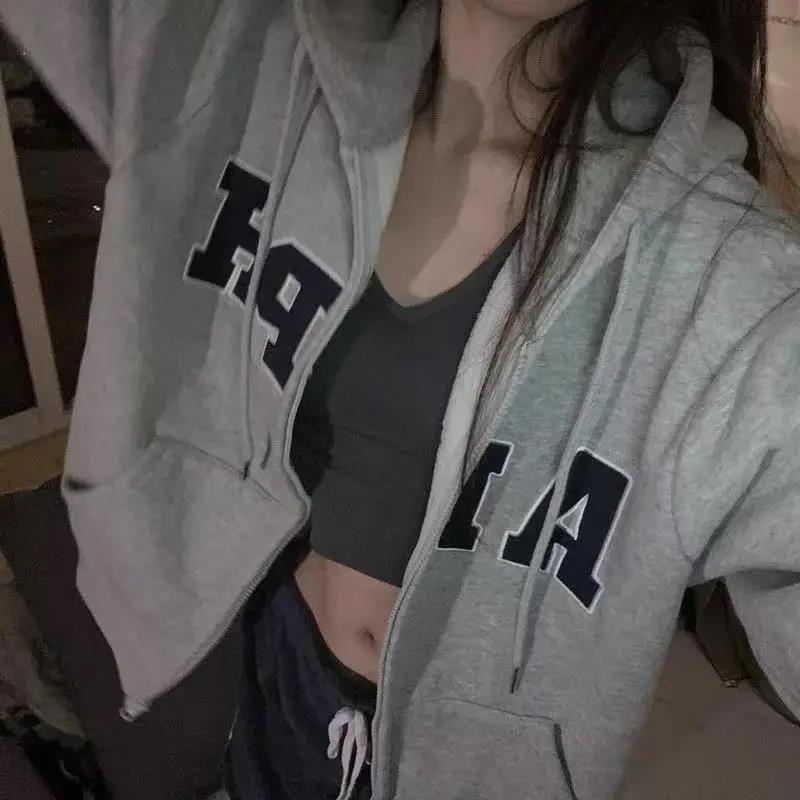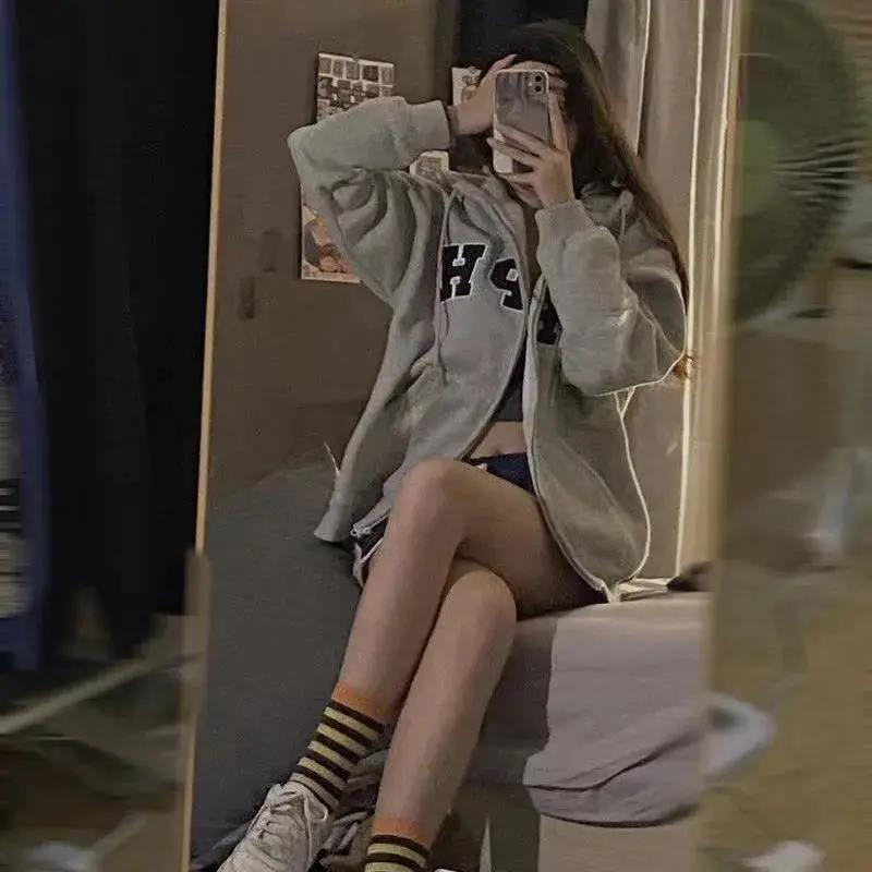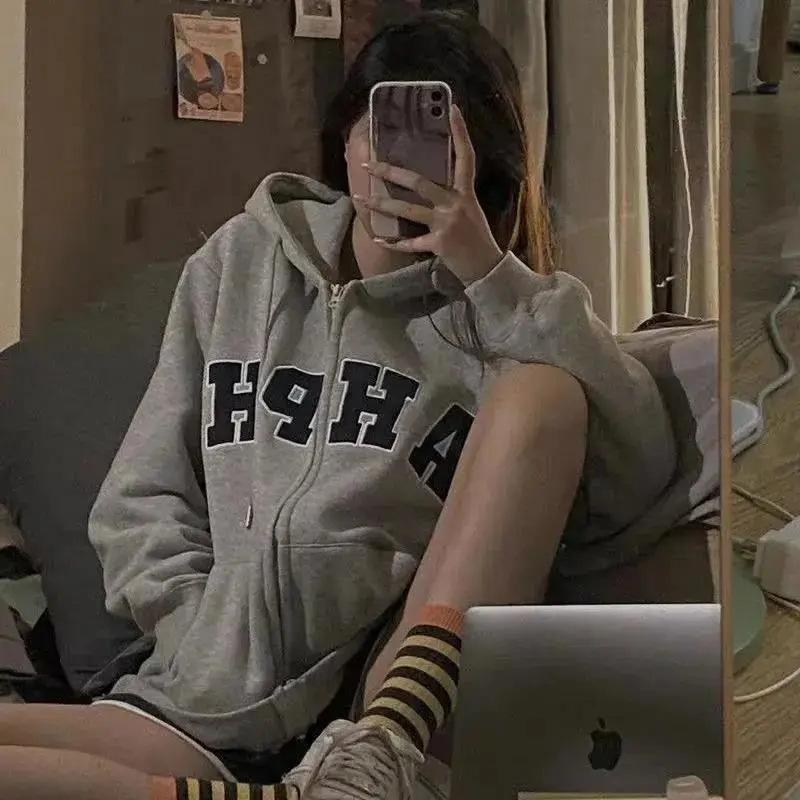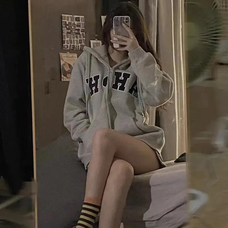 Sudadera con capucha extragrande de estilo americano para mujer, estilo informal, holgado, de manga larga, con forro polar, para otoño e invierno.