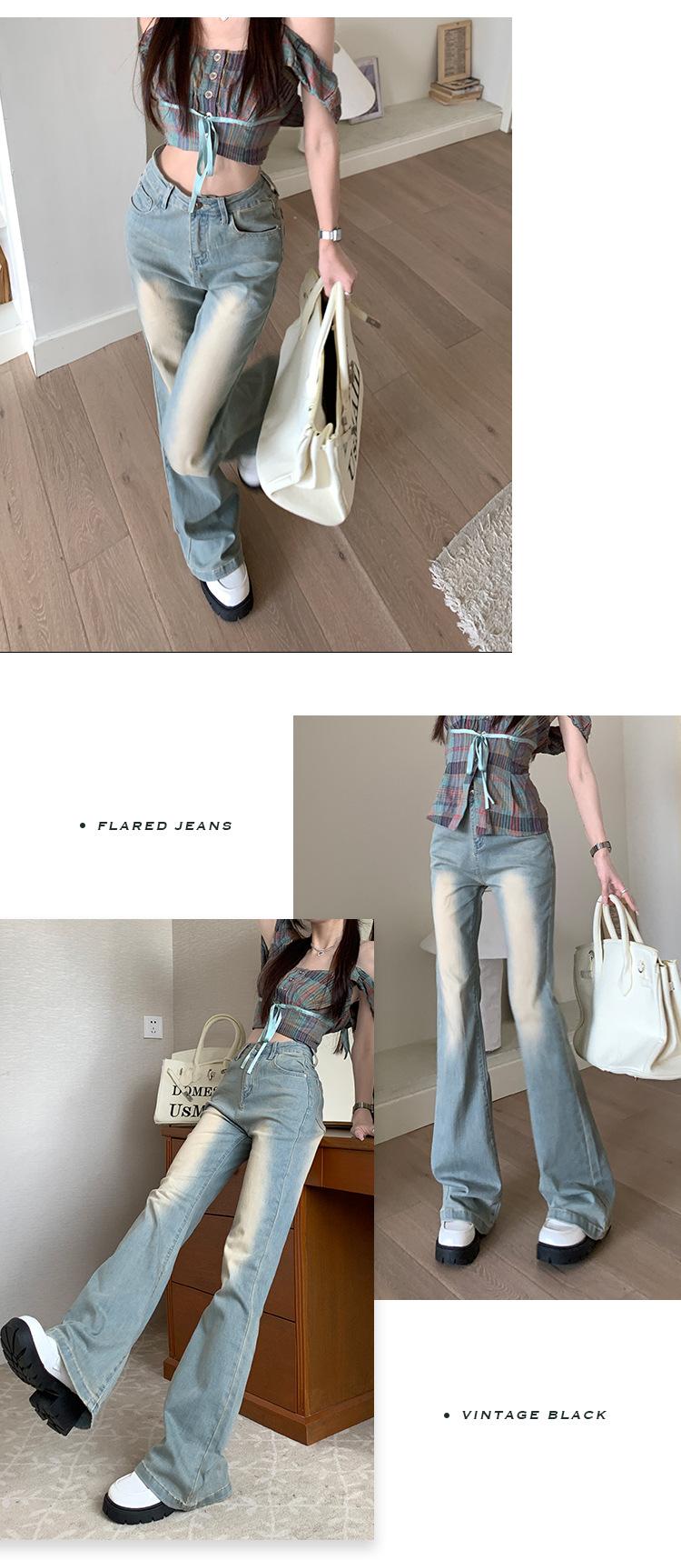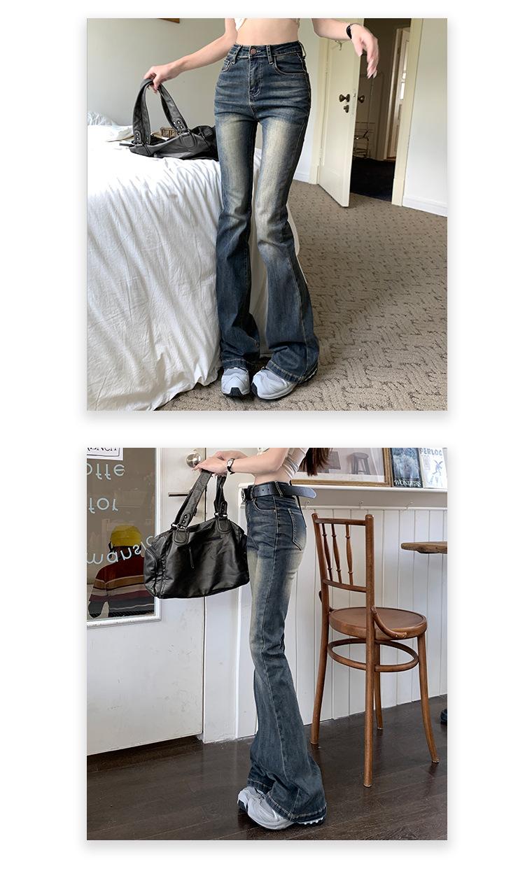 Pantalones vaqueros de estilo americano retro para mujer, de cintura alta, ajustados y elásticos, de primavera y otoño de 2024
