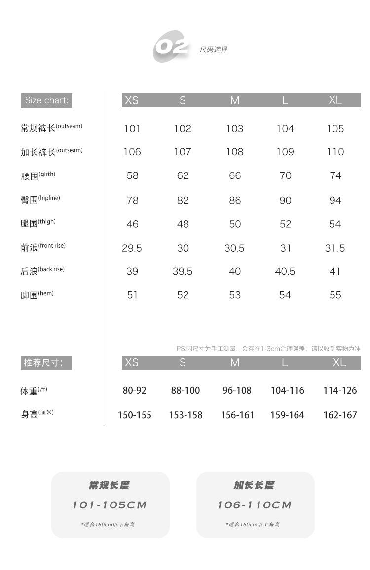 XS, S, M, L, XL