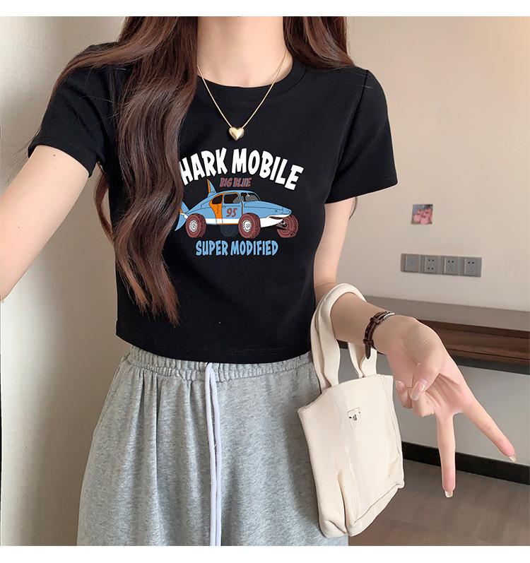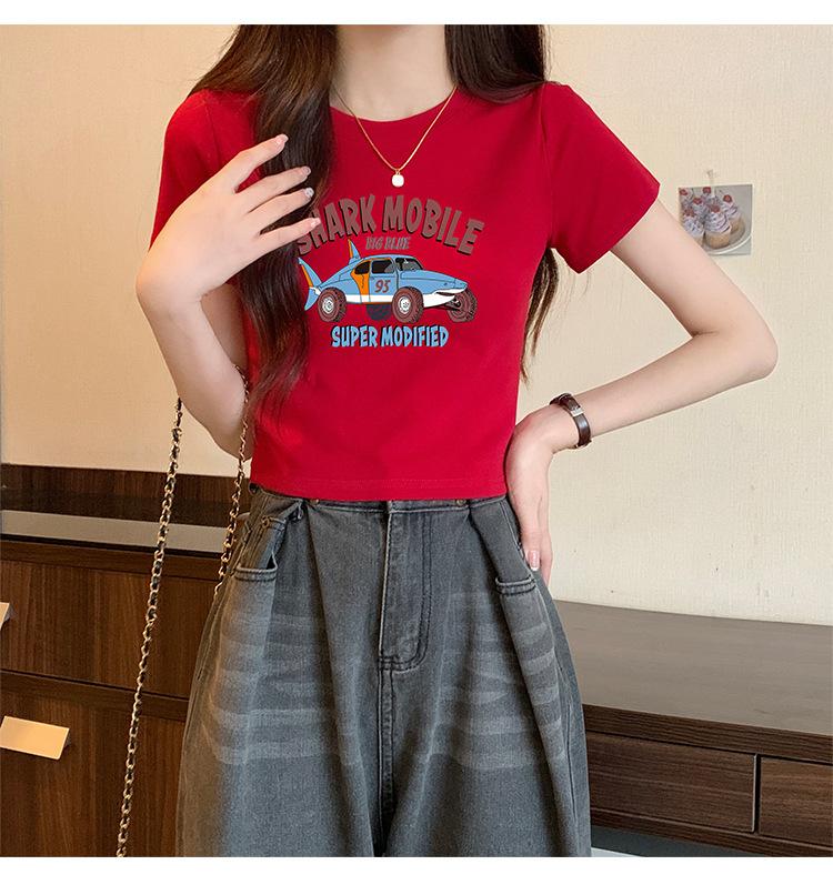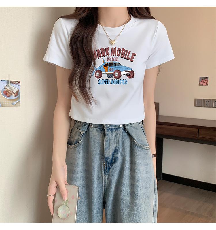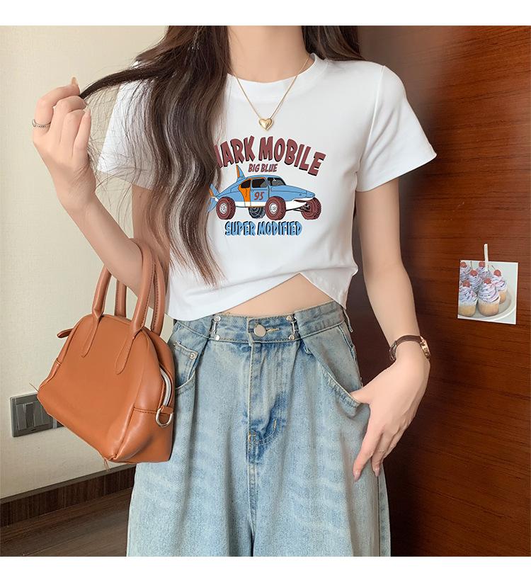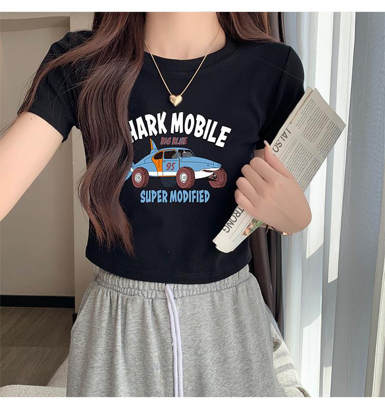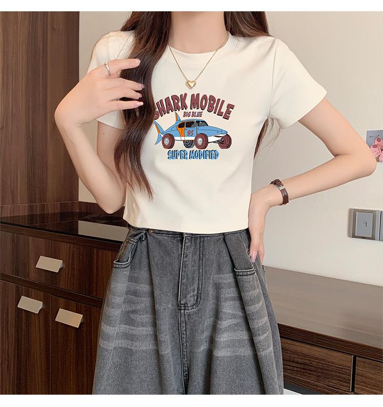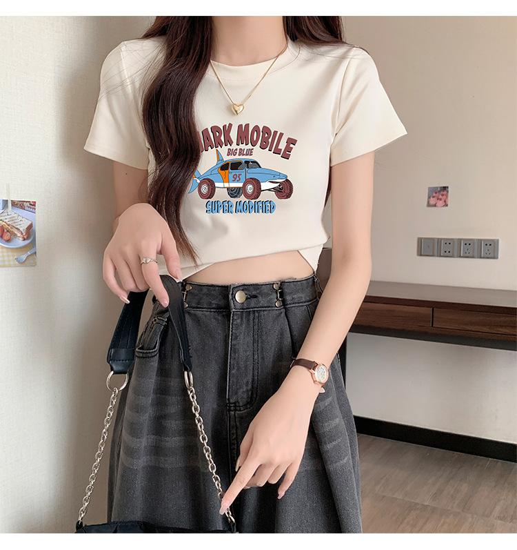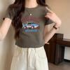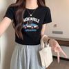 Camiseta de manga corta con hombros descubiertos para mujer, diseño de verano, estampado Sense, camiseta pequeña, top corto ajustado para verano