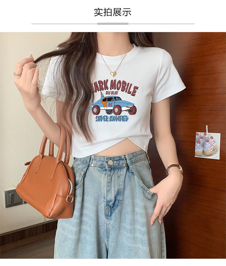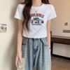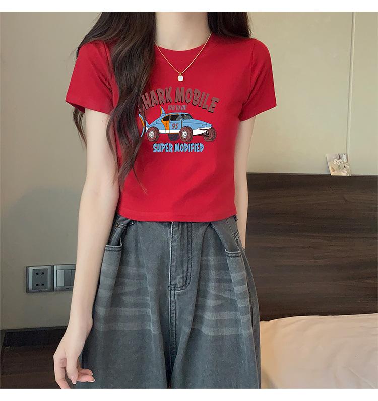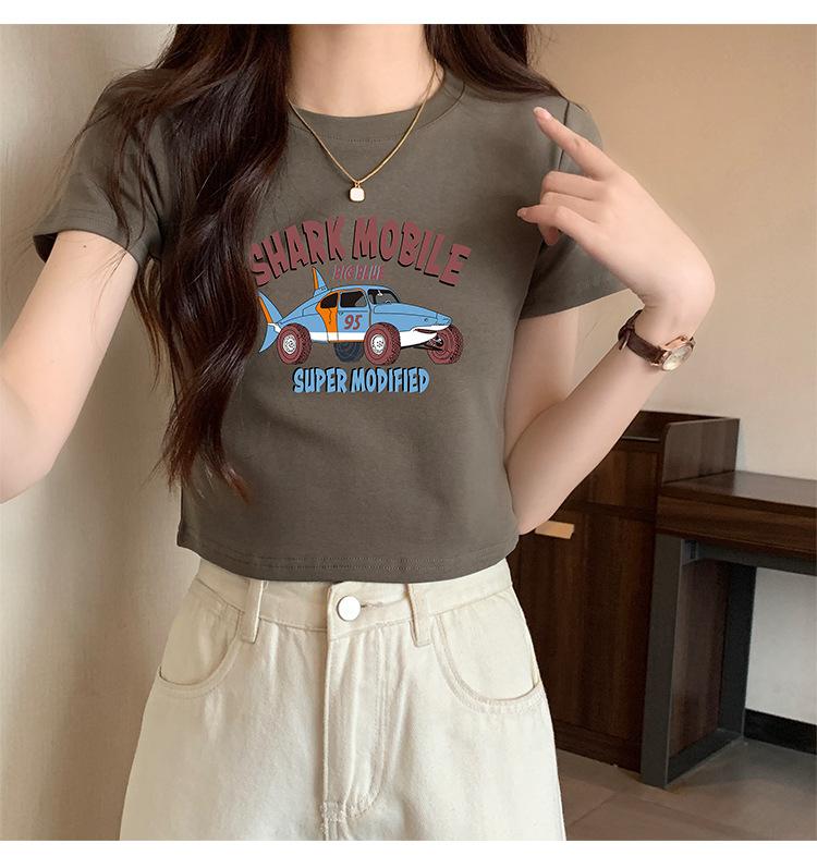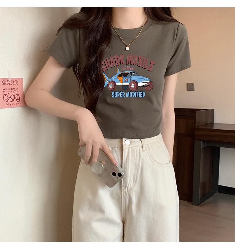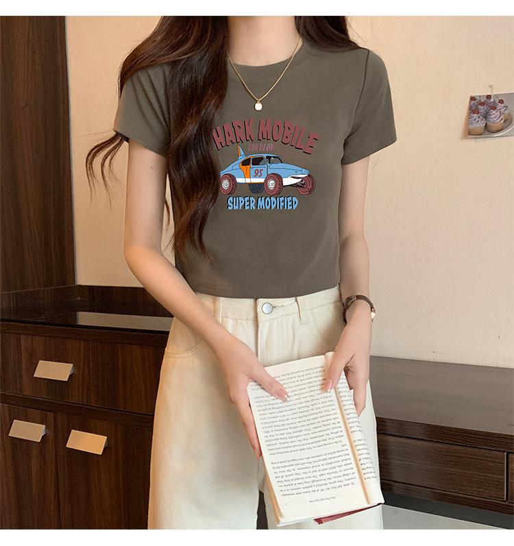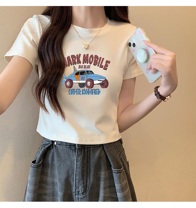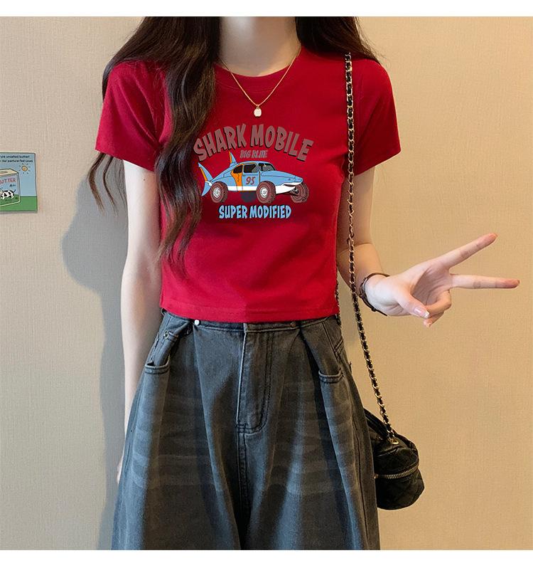 Camiseta de manga corta con hombros descubiertos para mujer, diseño de verano, estampado Sense, camiseta pequeña, top corto ajustado para verano