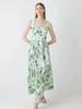 Vestido mono de verano 2023 con estampado verde, sin mangas, con cordones y cintura alta para mujer europea y americana