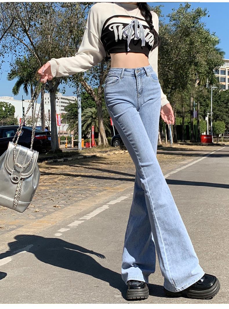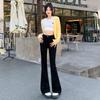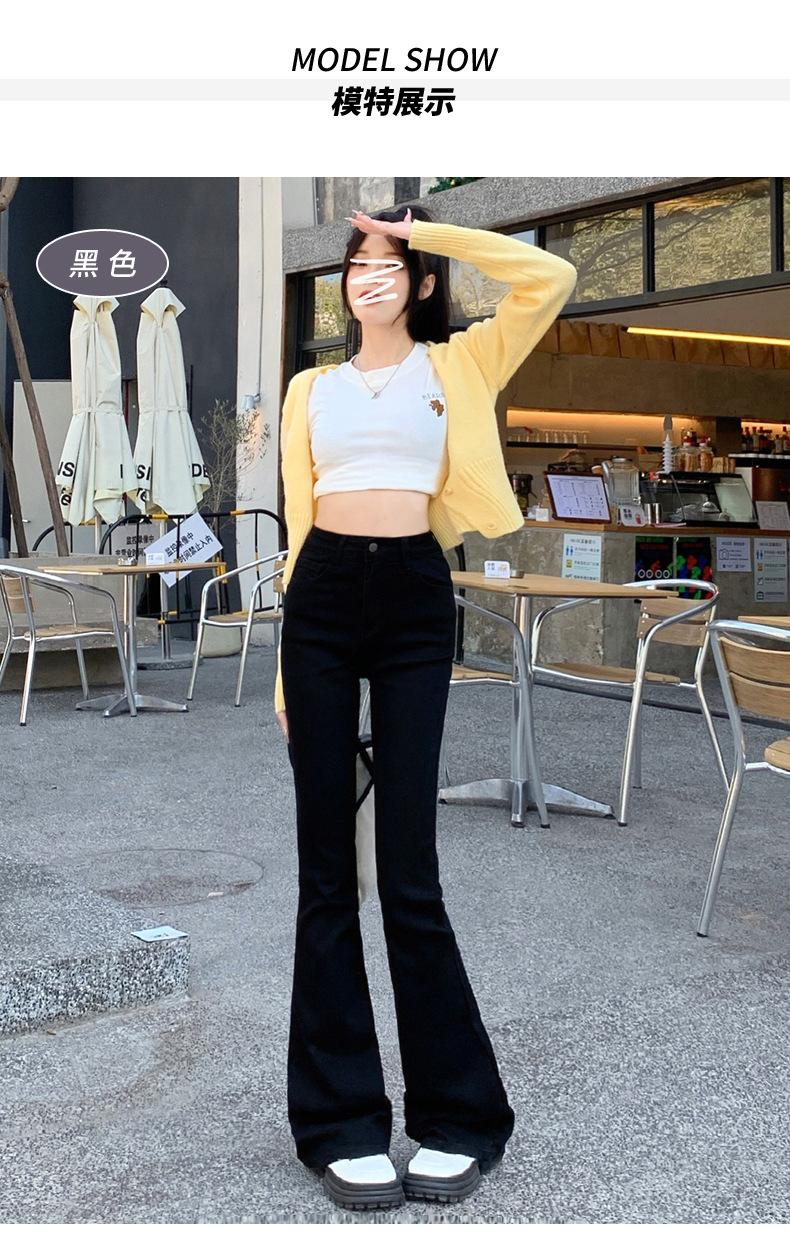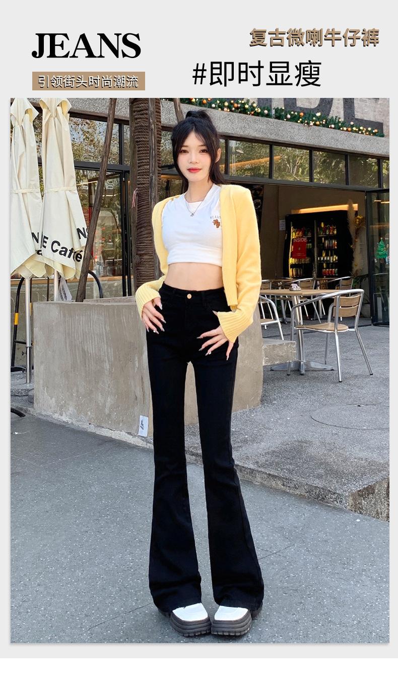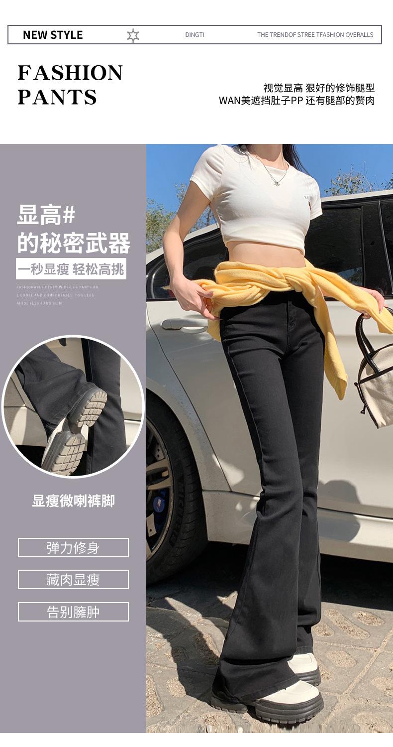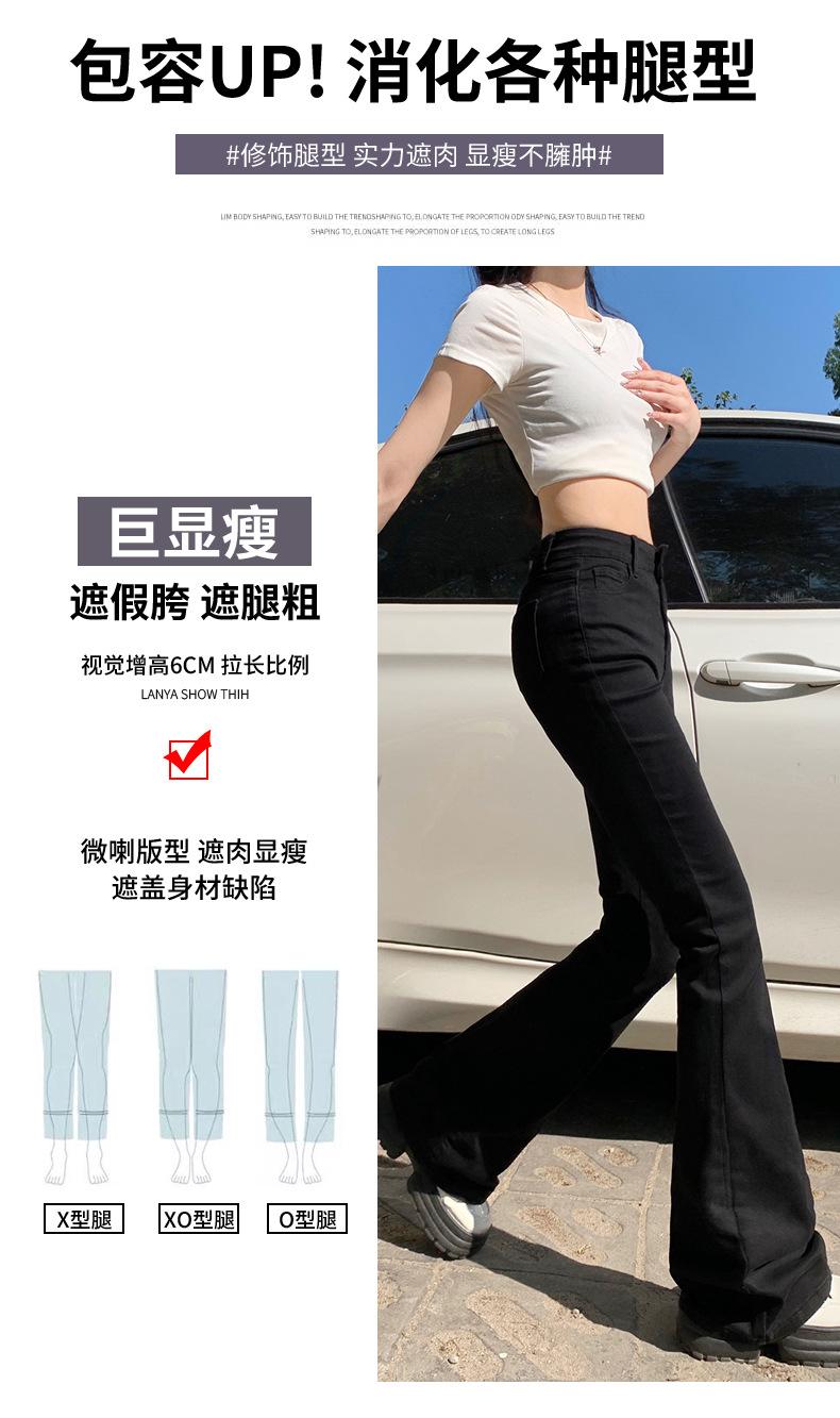 Pantalones y Jeans Negros de Cintura Alta para Mujer 2024 Nueva Primavera Elásticos Slim Micro Acampanados para Mujer