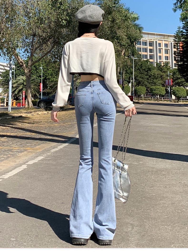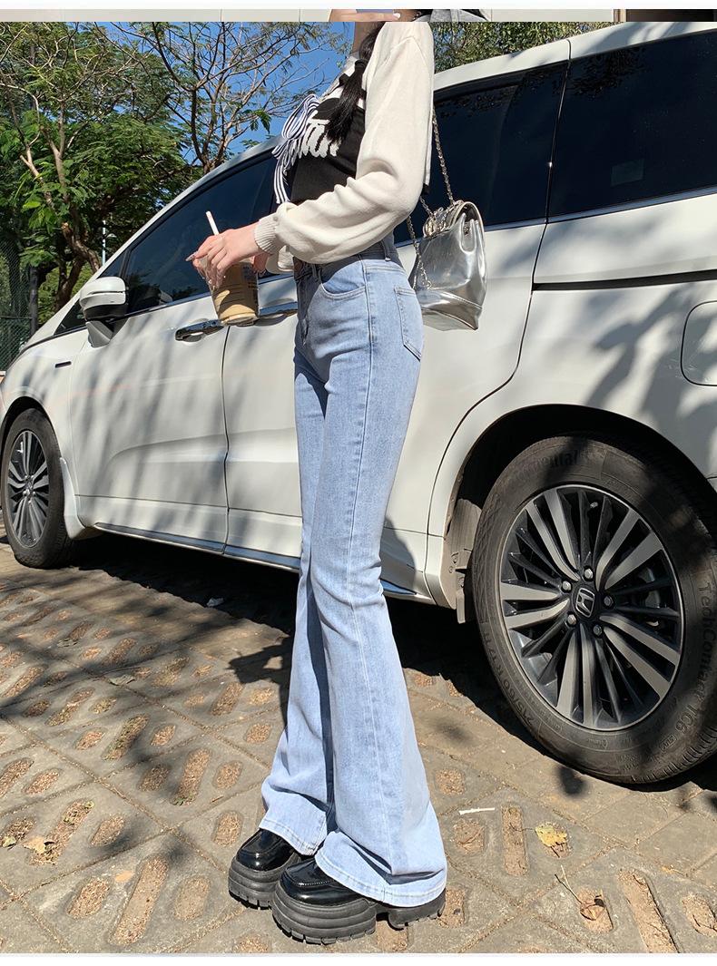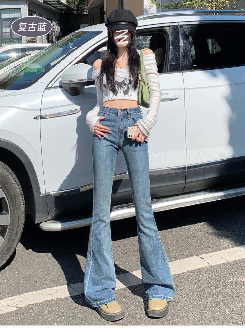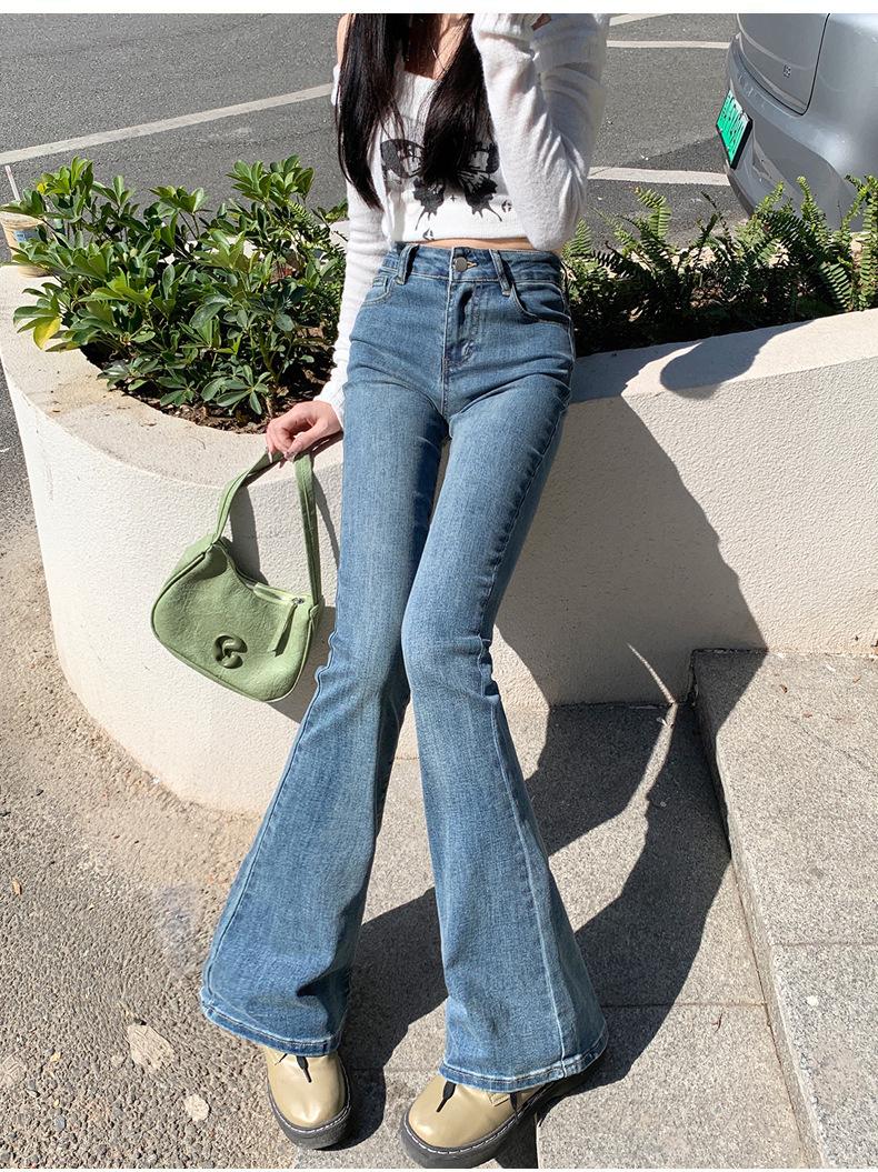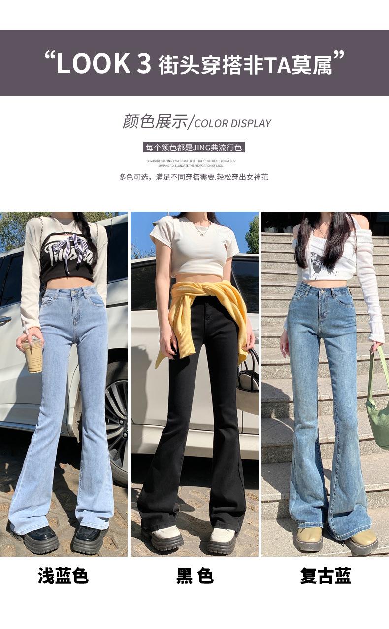 Pantalones y Jeans Negros de Cintura Alta para Mujer 2024 Nueva Primavera Elásticos Slim Micro Acampanados para Mujer