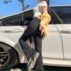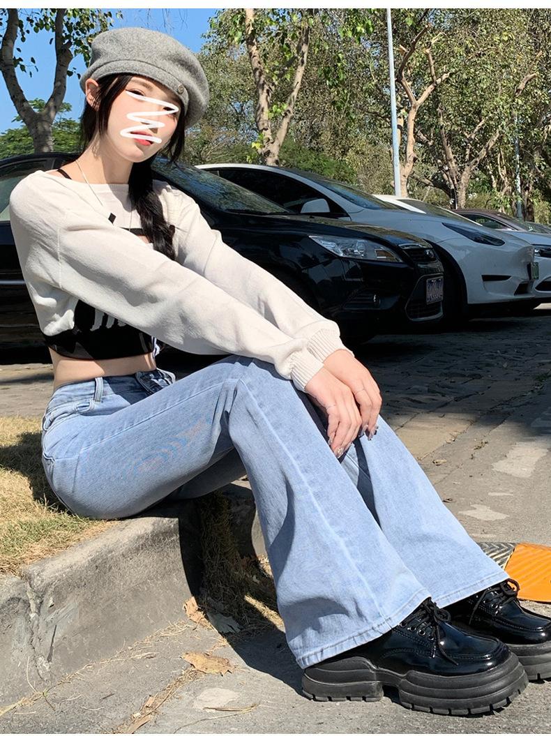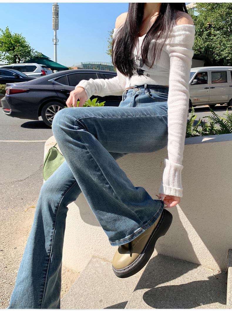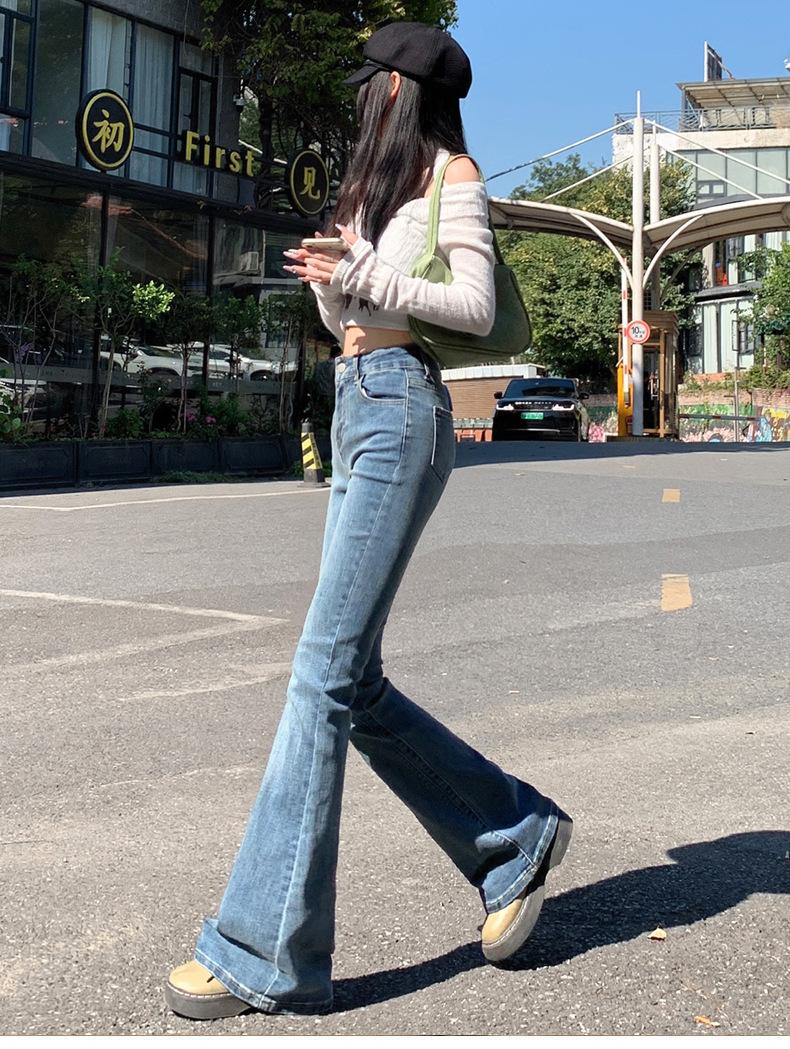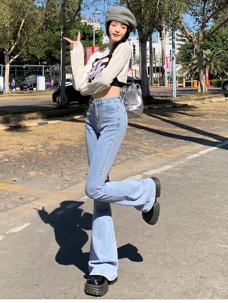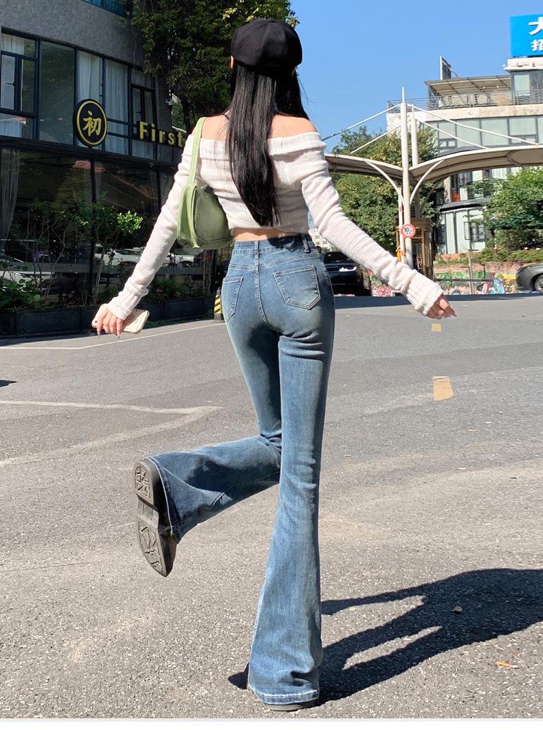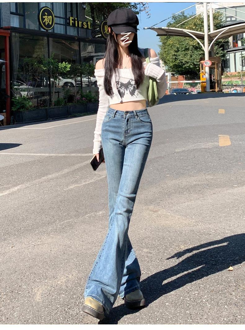 Pantalones y Jeans Negros de Cintura Alta para Mujer 2024 Nueva Primavera Elásticos Slim Micro Acampanados para Mujer